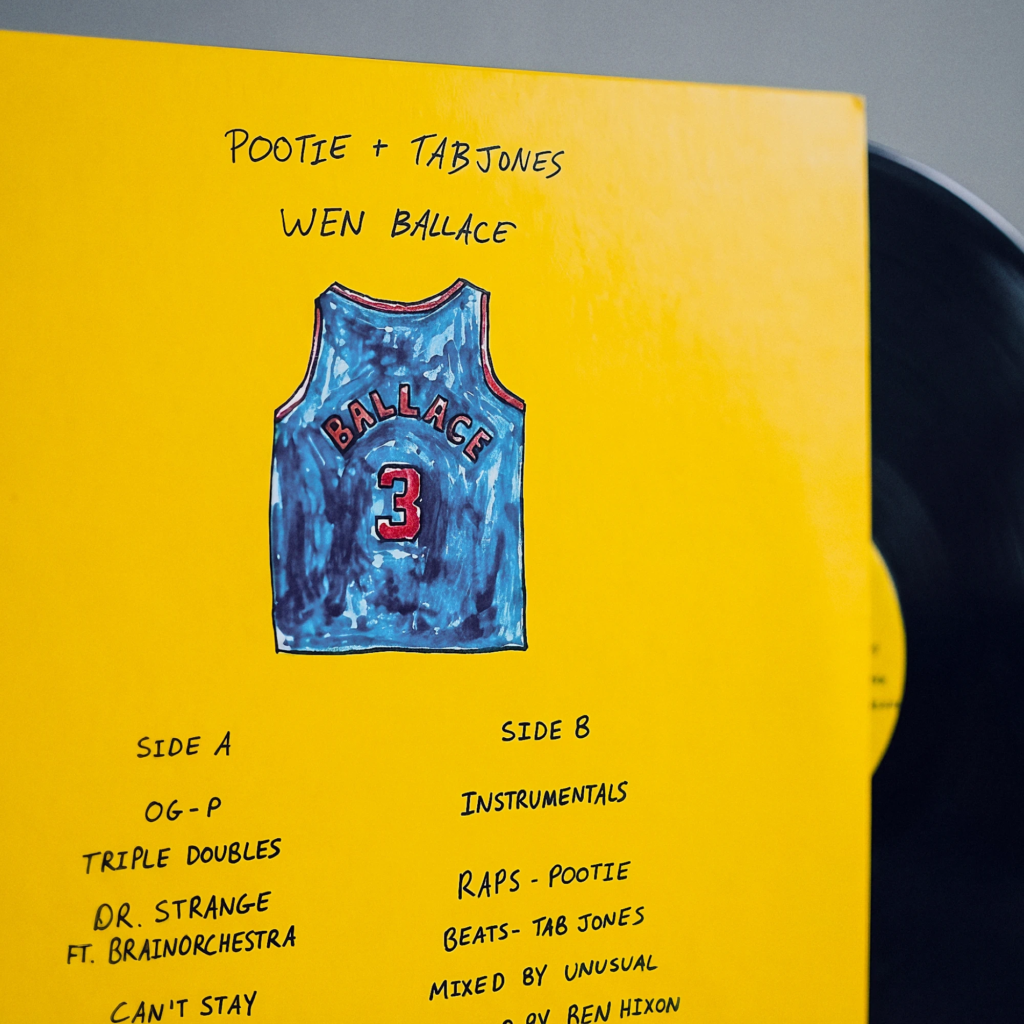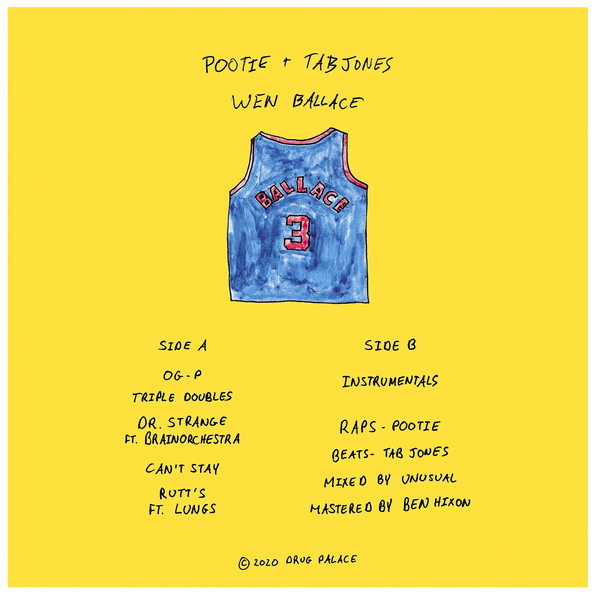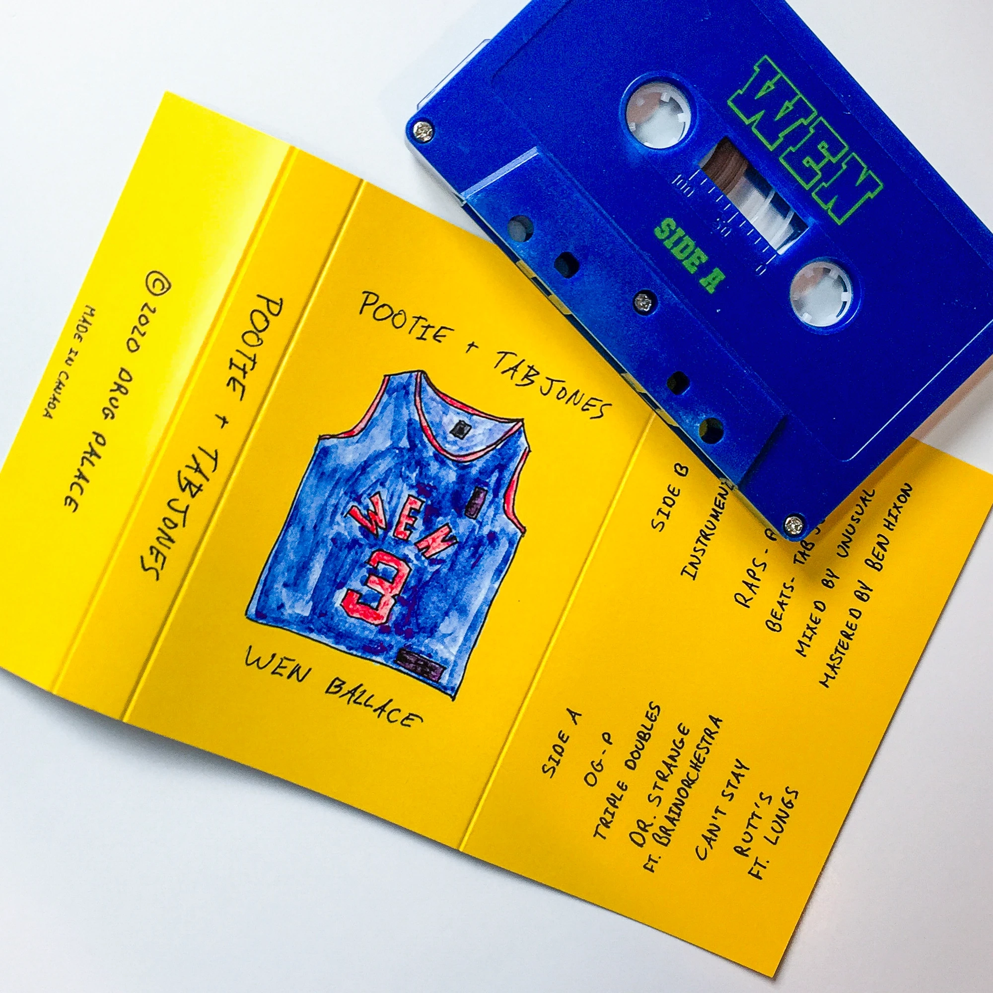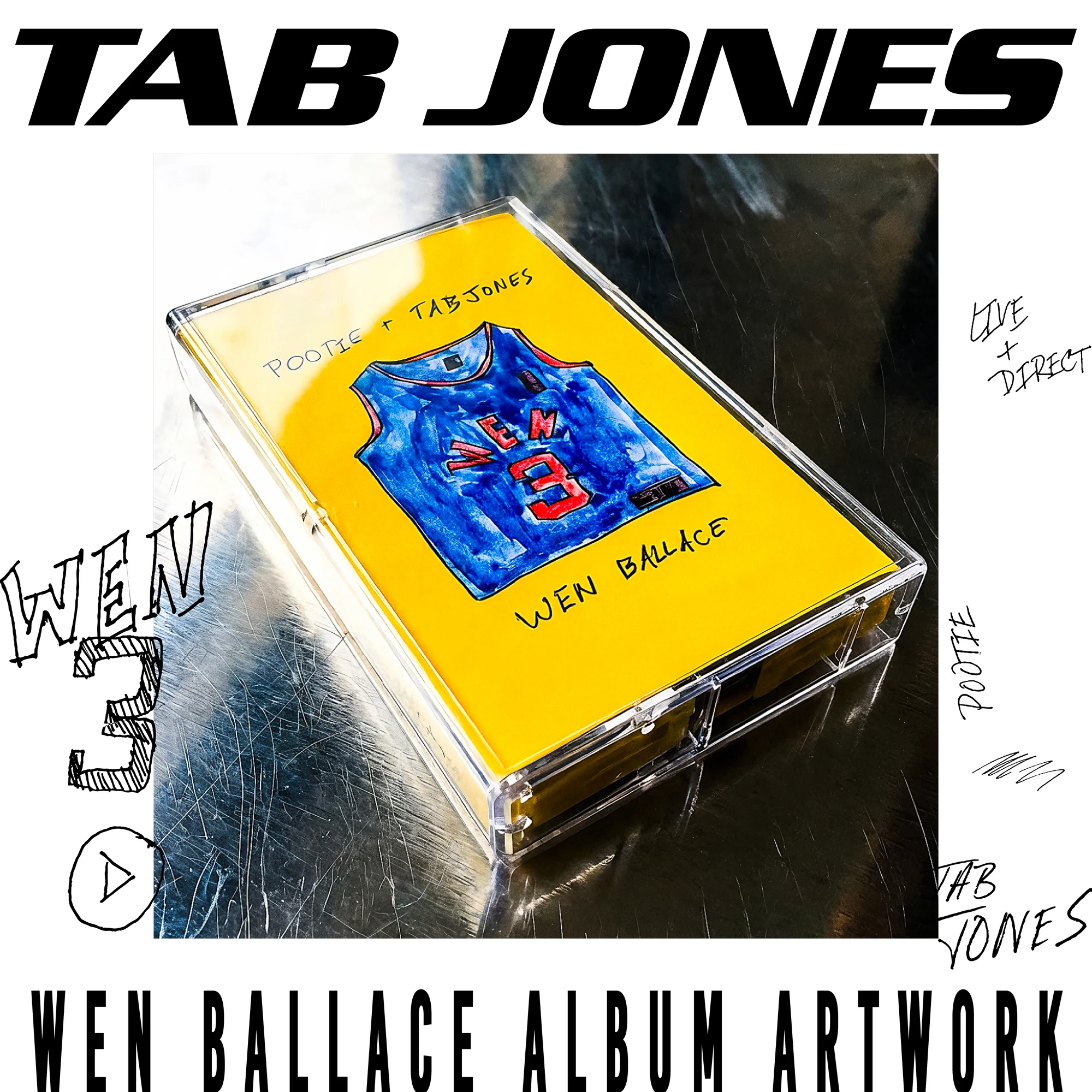 A display of album artwork for Tab Jone's joint EP with Pootie: WEN BALLACE. This is visual direction and packaging designs for both cassette and vinyl records.