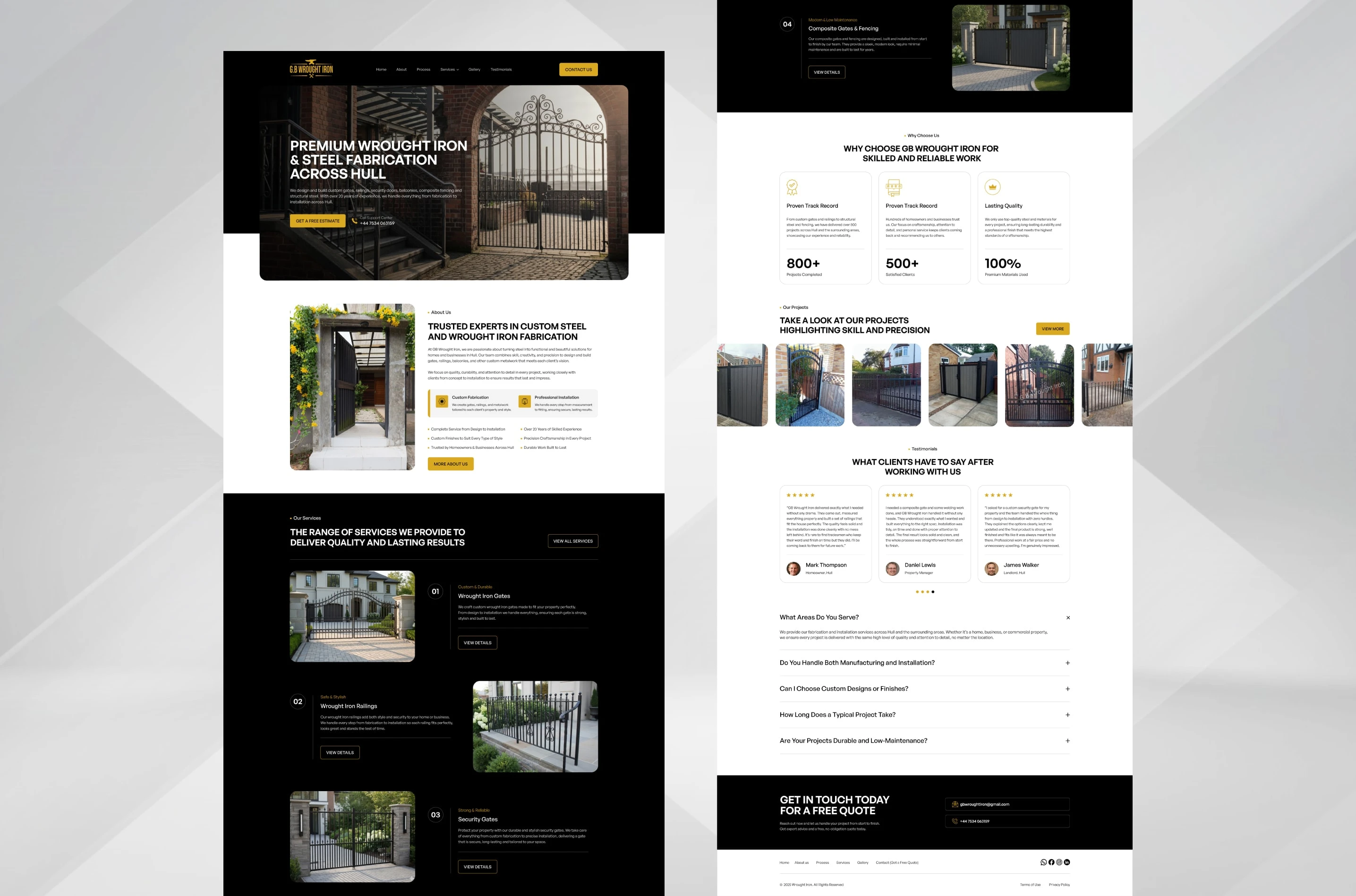 The completed website successfully repositioned GB Wrought Iron as the premier wrought iron and steel specialist in Hull. The premium aesthetic instantly communicated the brand’s value proposition, helping them attract a higher caliber of client looking for custom, reliable installations. The professional, conversion-optimized design has led to a noticeable increase in qualified leads for bespoke projects, ensuring their online presence now perfectly complements their reputation for excellence in fabrication.