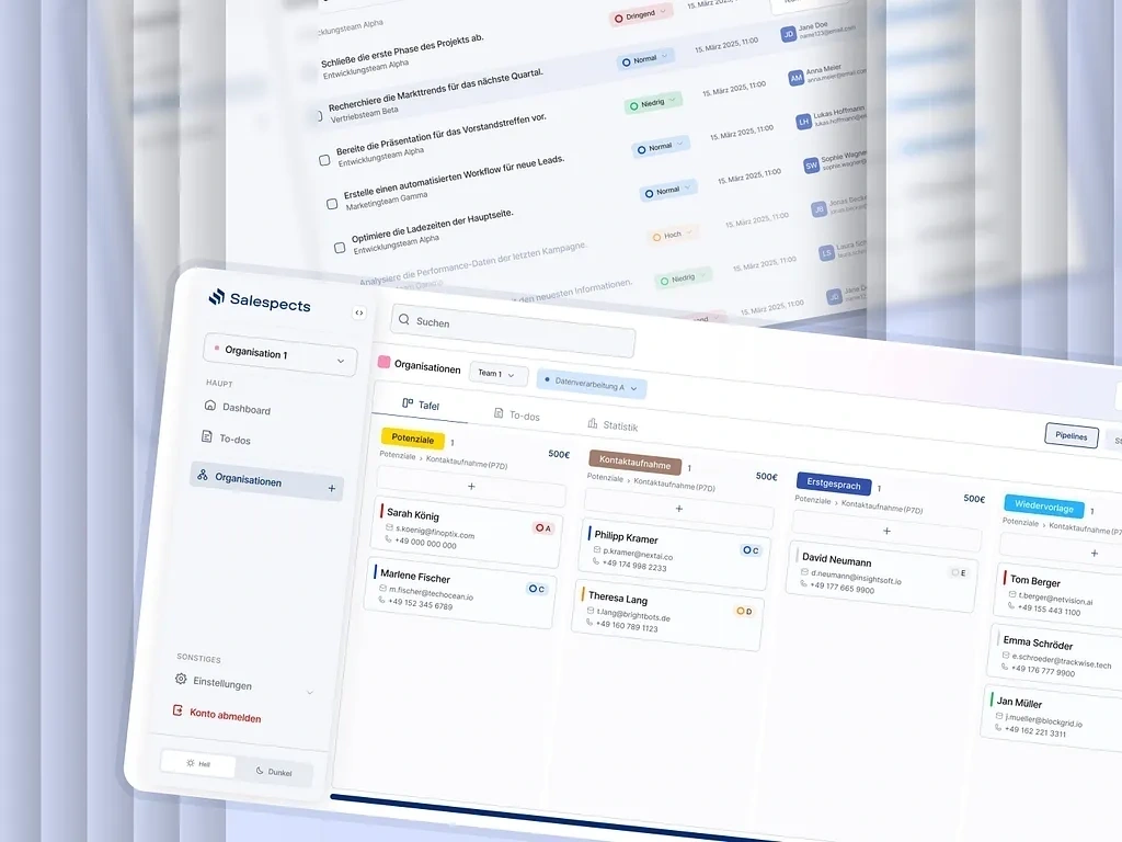 The primary challenge was designing a complex B2B interface that remained clean, user-friendly, and efficient, despite handling a large volume of data and team-based workflows. It was crucial to maintain clarity across multiple modules, such as pipelines, to-do lists, and dashboards, without overwhelming the user. Key considerations included ensuring consistent UX across both desktop and mobile views, supporting multi-team filtering, and clearly visualizing priority and status indicators. Additionally, the design needed to be adaptable to scale with organizational growth and accommodate future analytics or automation features.