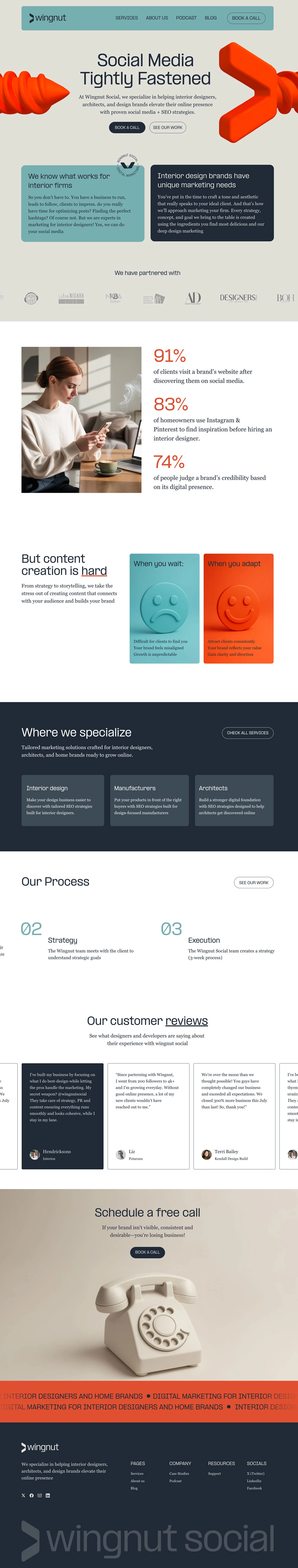 The result is a strategic, easy-to-manage website that strengthens Wingnut Social’s online presence and makes it easier for interior design clients to understand their value, explore services, and book a call.