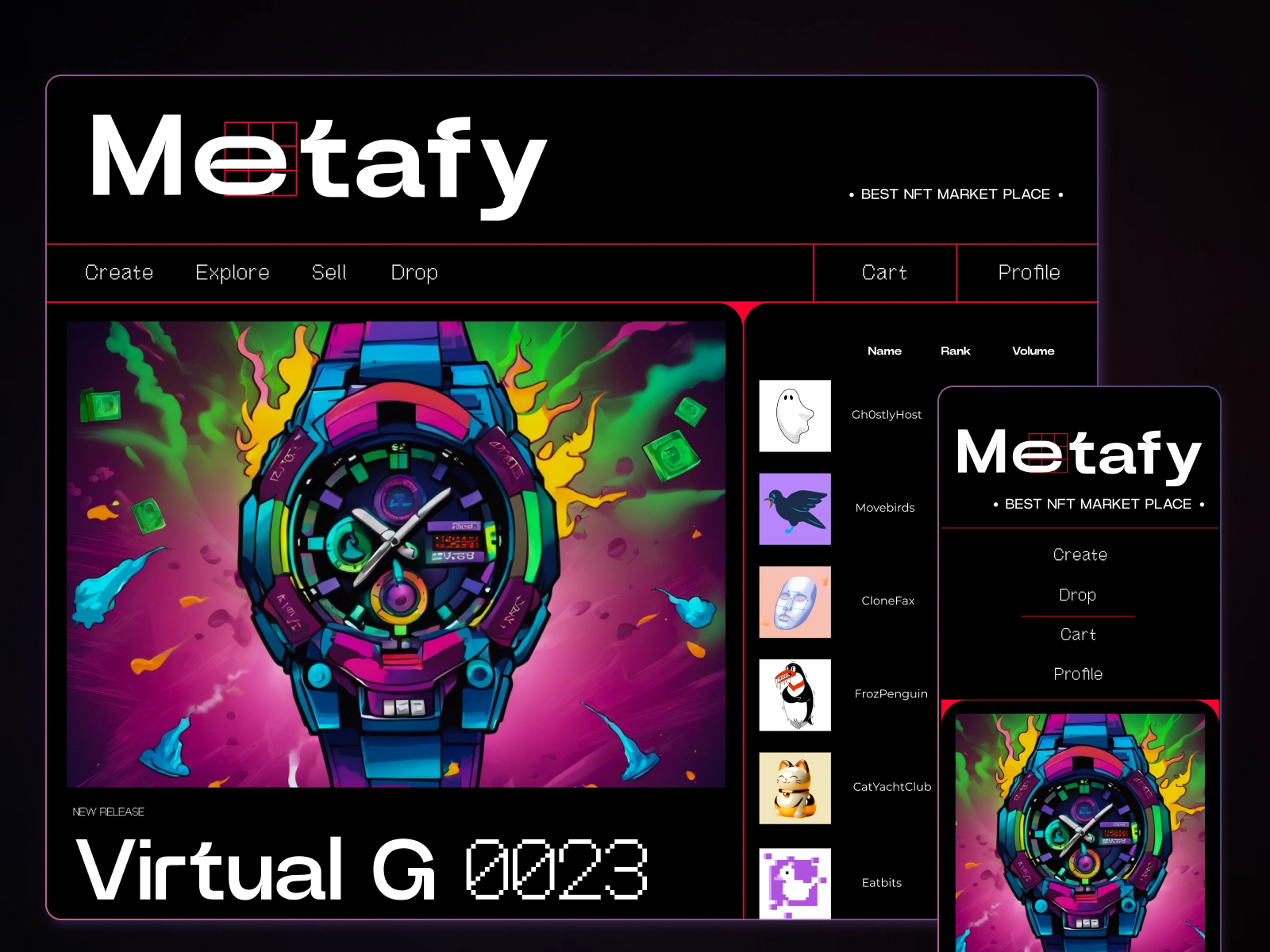 I spearheaded the design of Metafy's website, crafting a modern and accessible platform that serves as a dynamic marketplace for NFTs, artwork and FPFS.