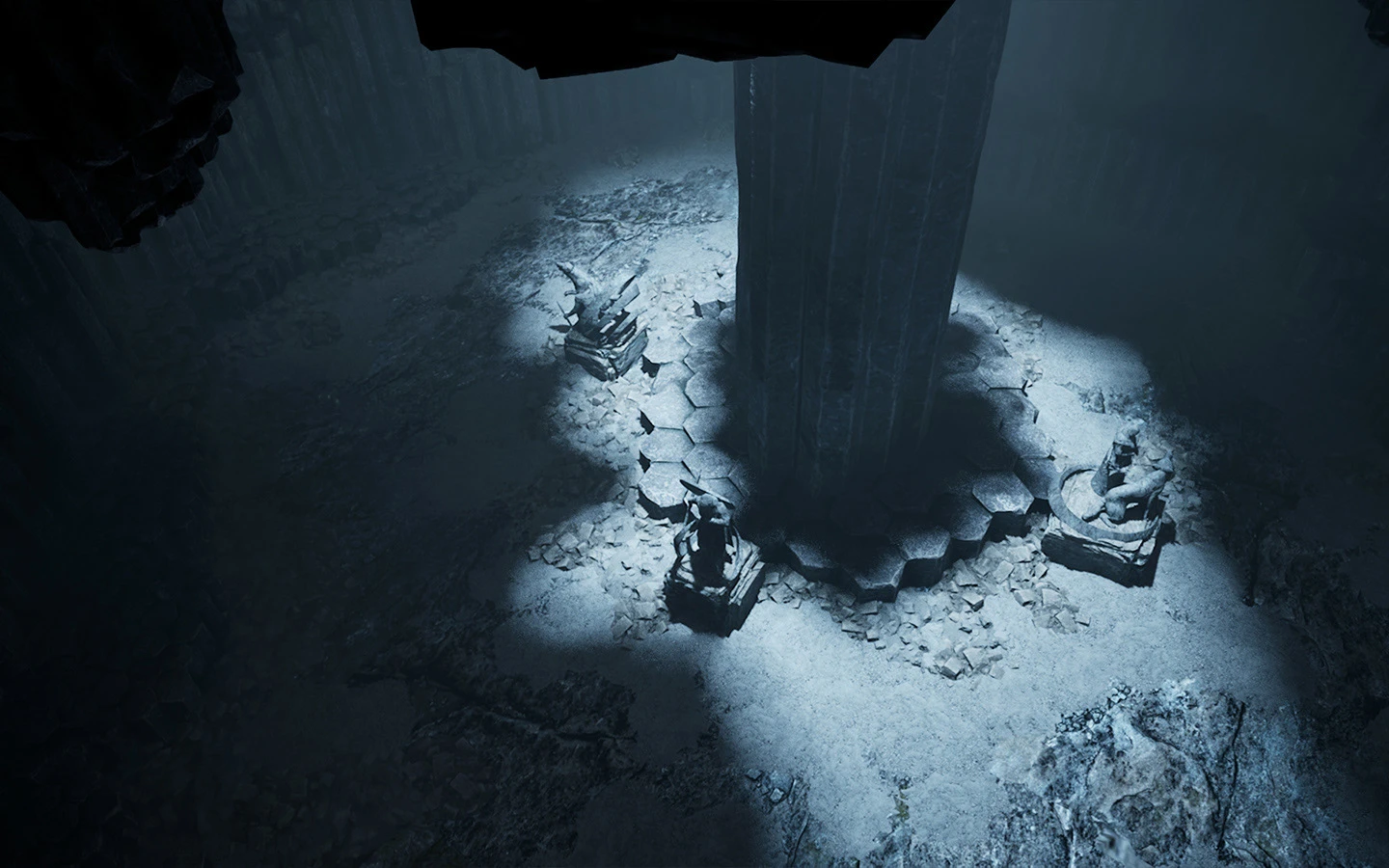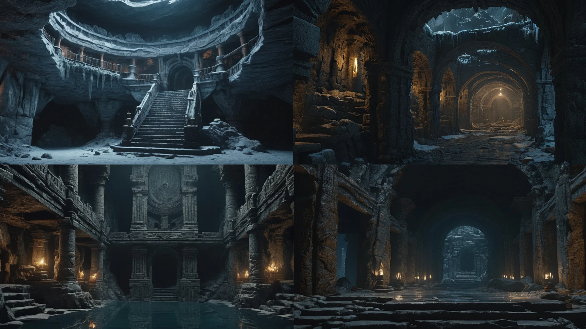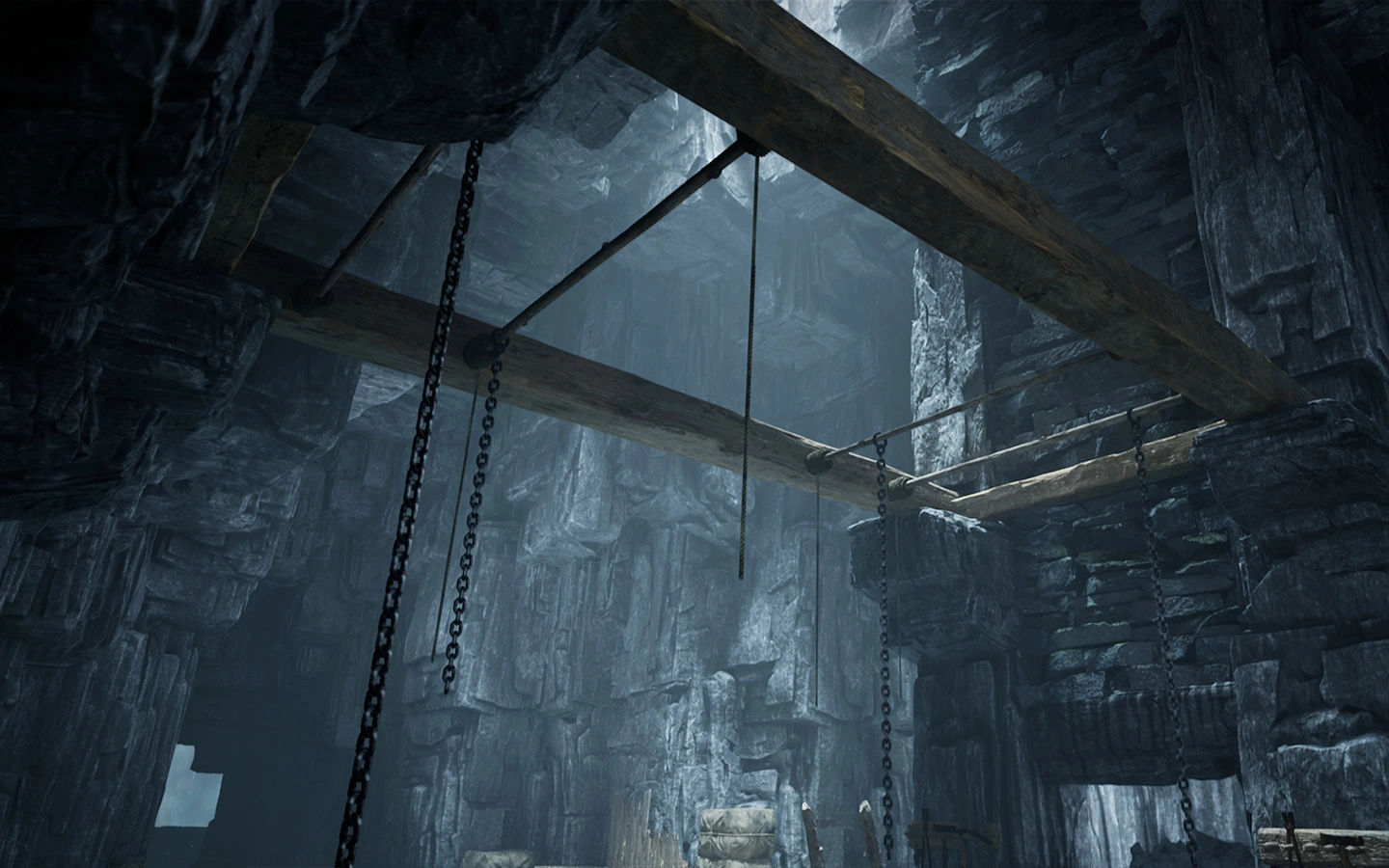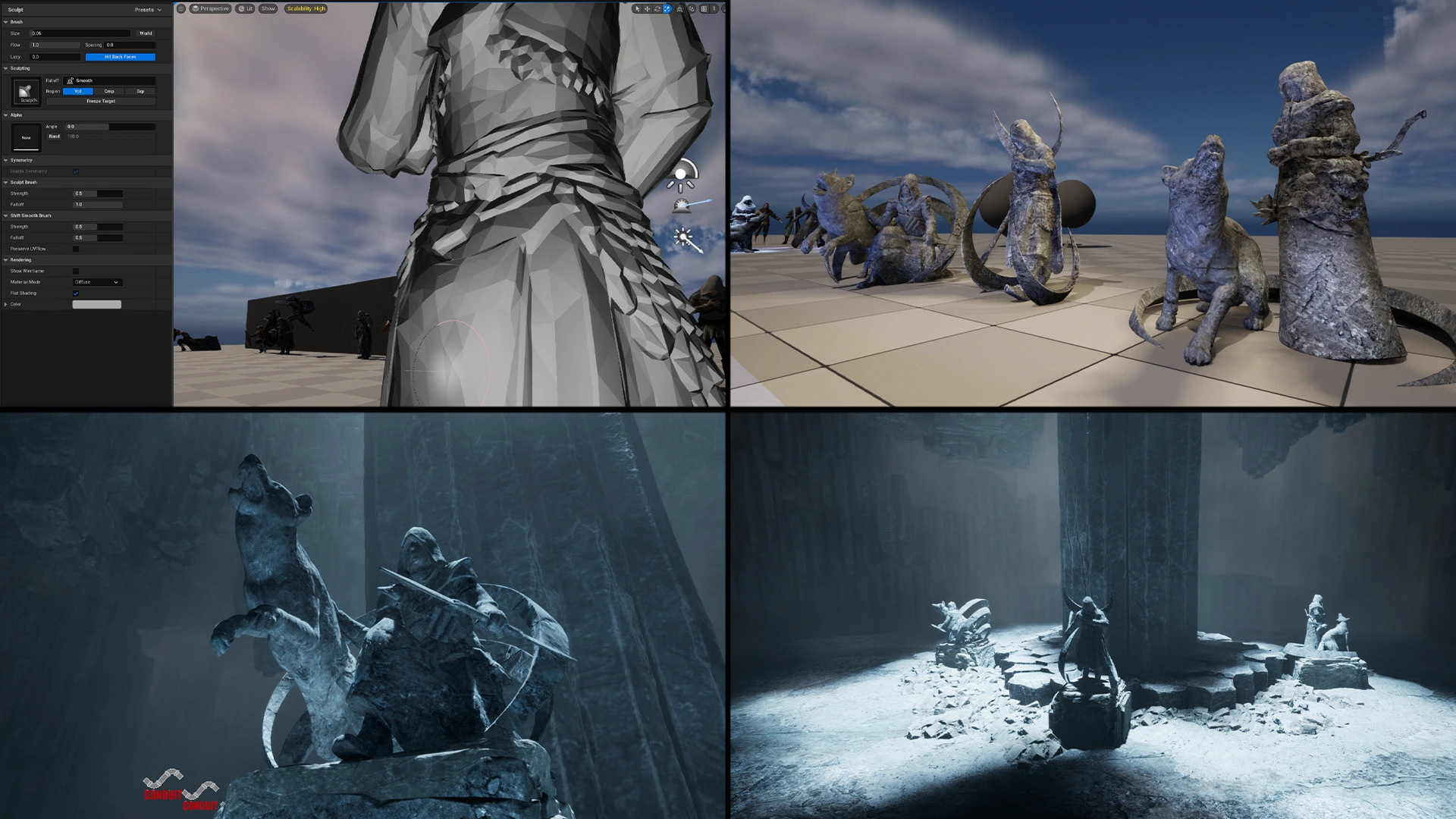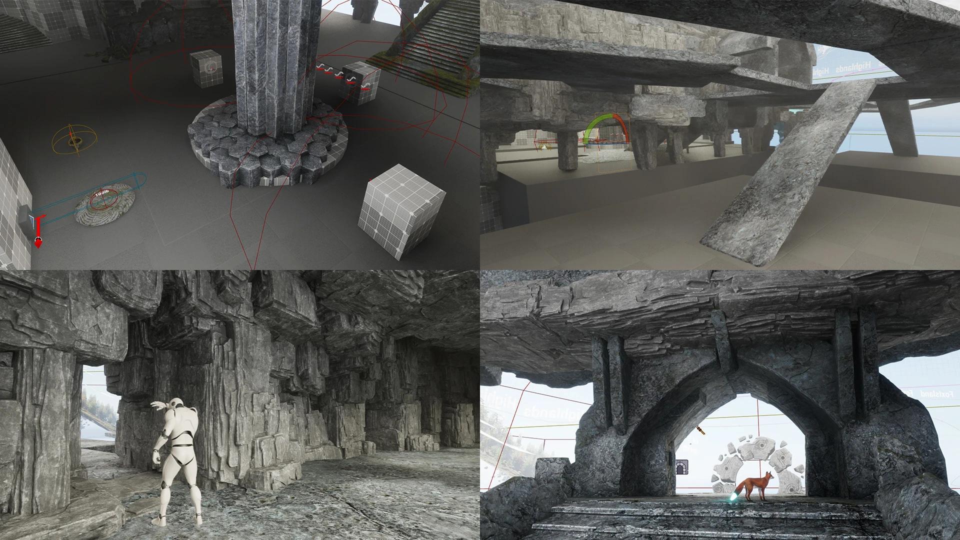 This project involved combining raw environmental elements (ice/rock) with elements of constructed civilization (shelter/tribal life). The layout was designed around the tribe's needs, creating distinct areas such as a blacksmith, living quarters, and sacred spaces, each detailed with appropriate assets to convey its function and narrative importance.