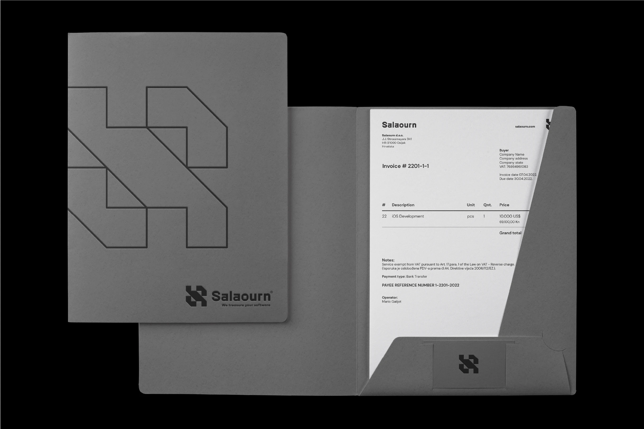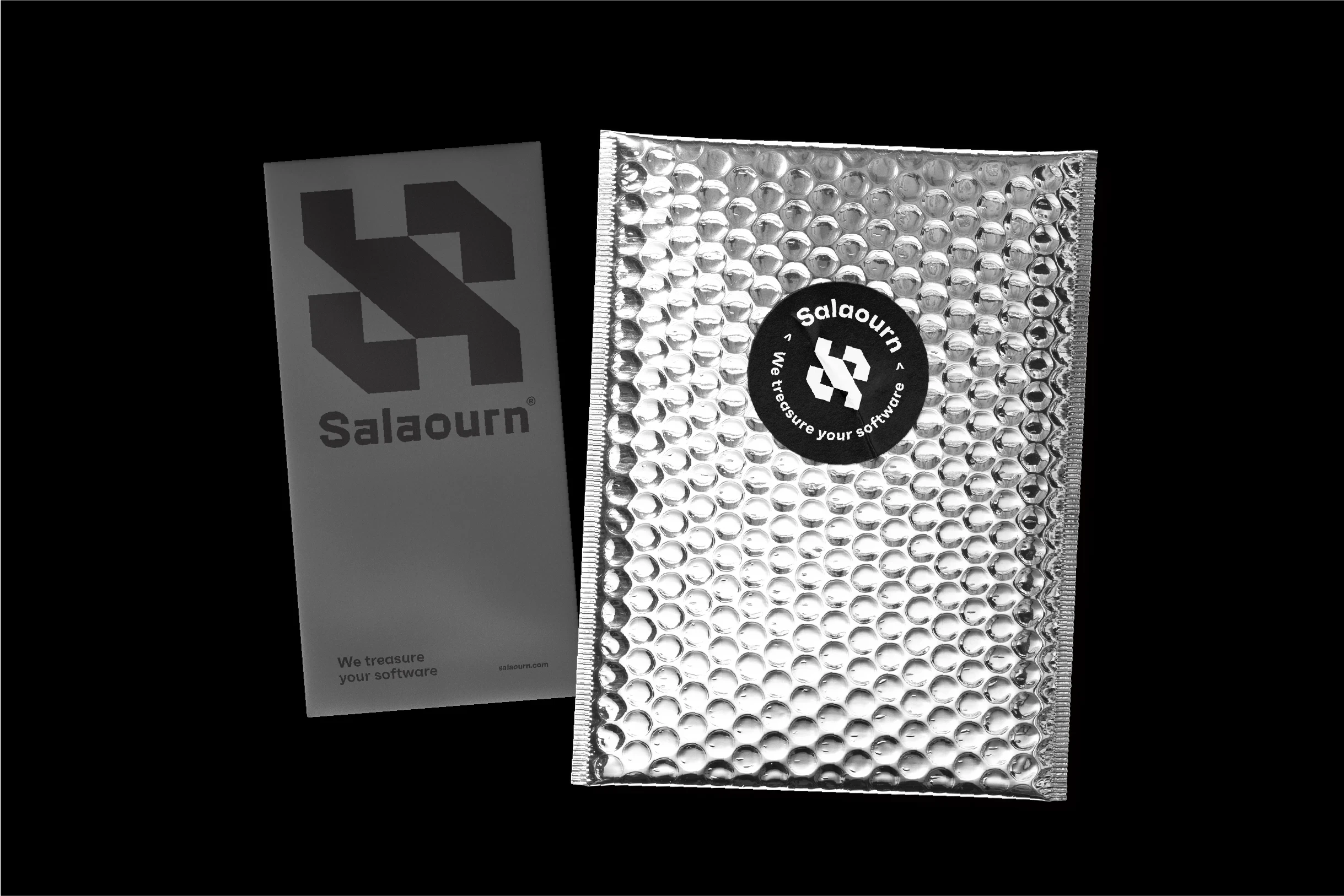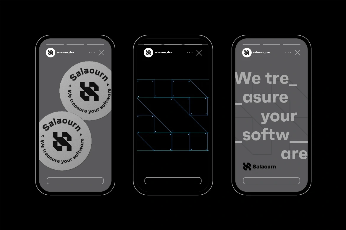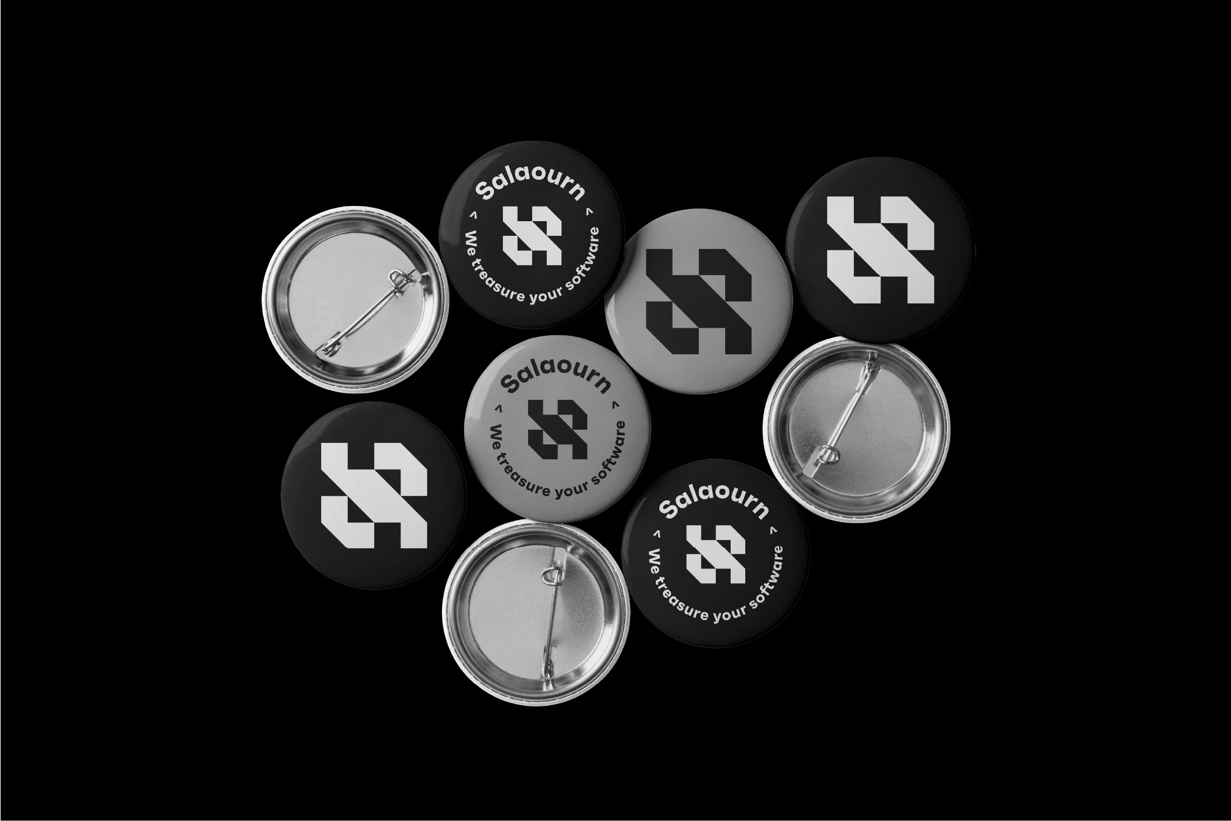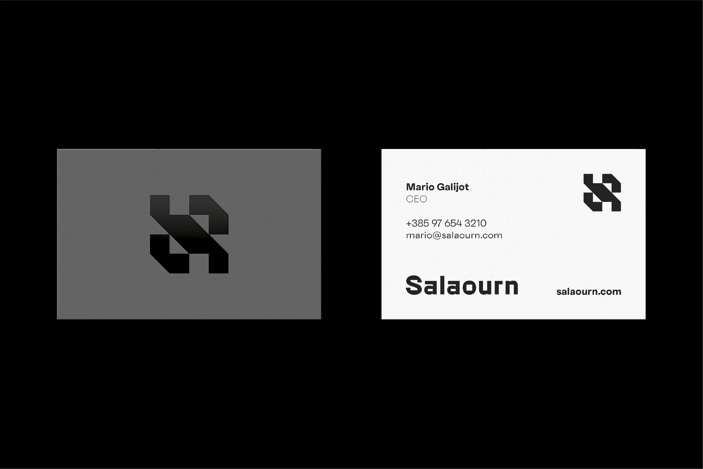 Salaourn company logo was constructed from the base of a square with the use of an identical element, and contains several characteristic symbolic meanings. A bracket as one of the frequent elements of the code that indicates the programming language and function calling, a square that represents pixels or a digital product, and the initials of the company S - Salaourn. The logo is simple, recognizable, applicable, and offers the possibility of independent use of the sign and logo, which will ensure the recognition and differentiation of the company on the market.