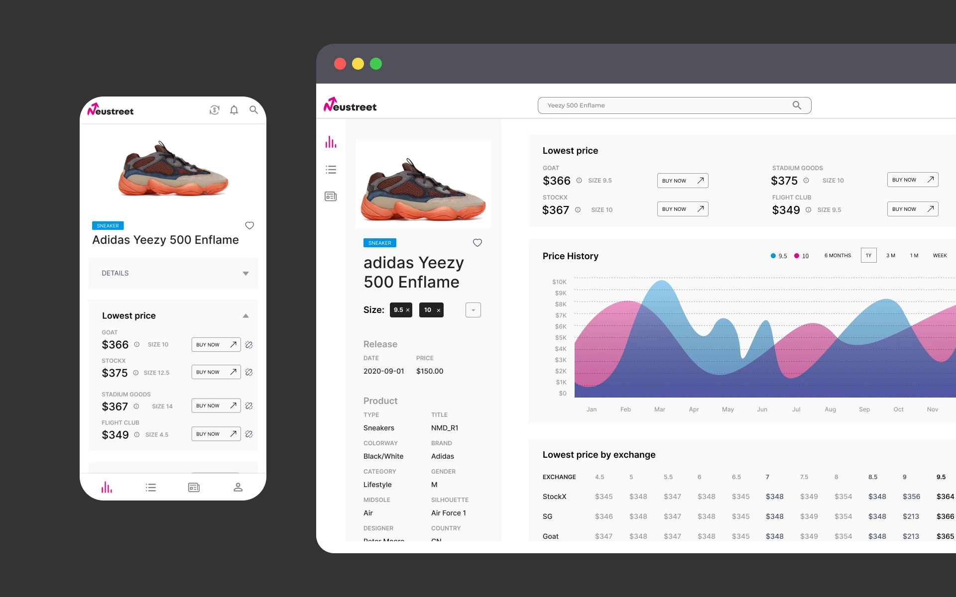 Designed Neustreet’s web and mobile apps to simplify research and comparison in the collectibles space for sneakers, trading cards, NFTs and more.