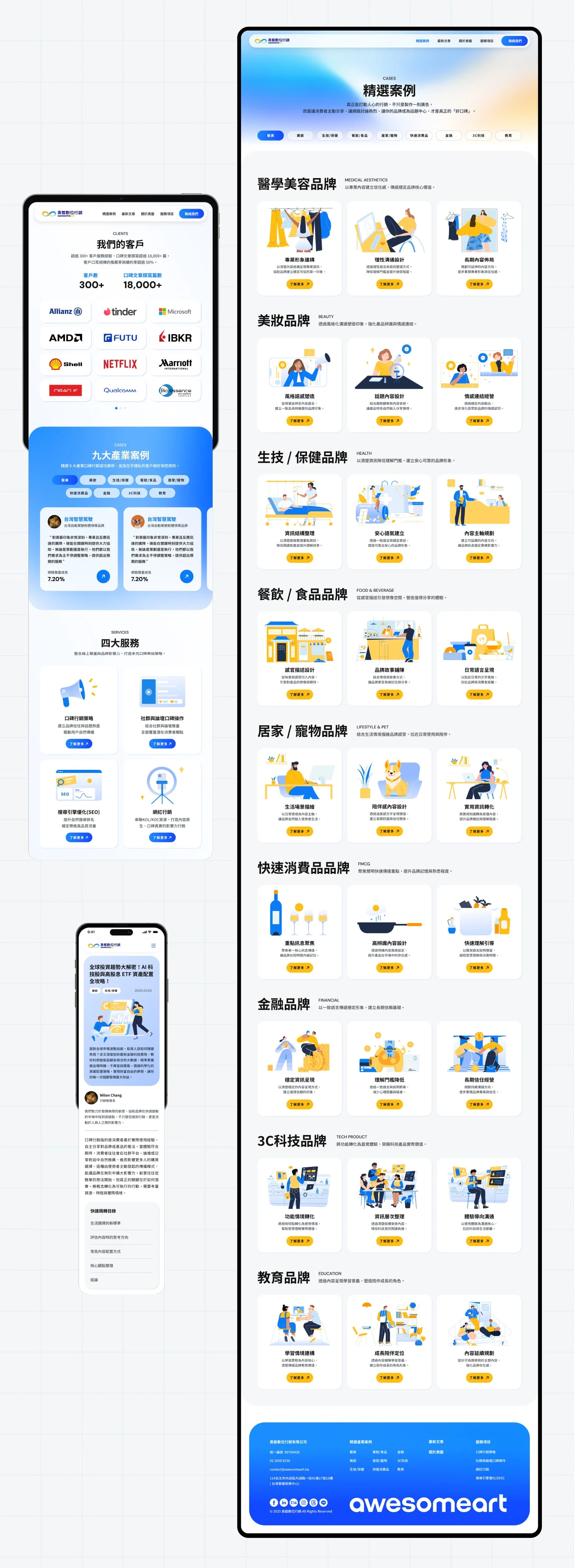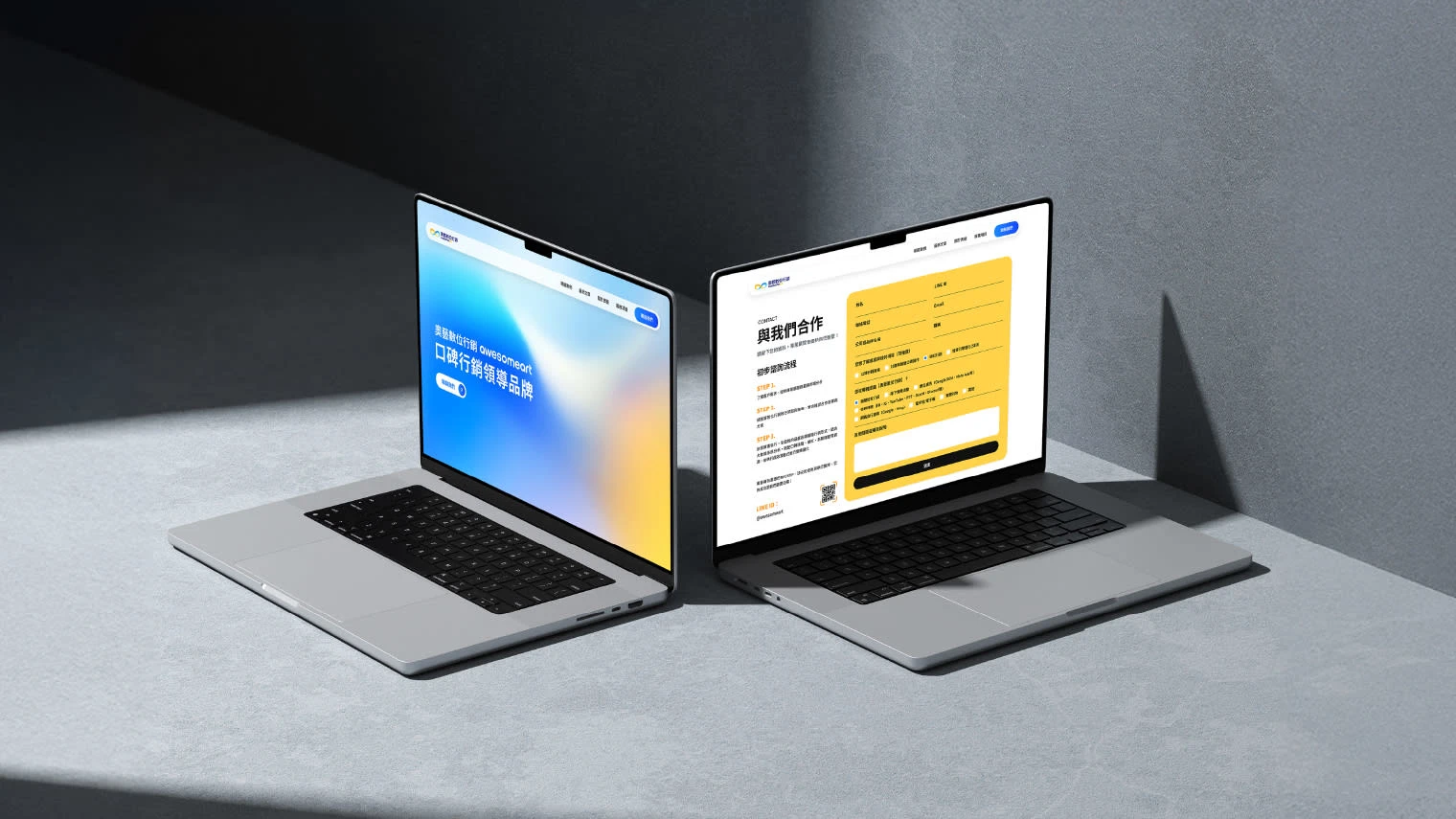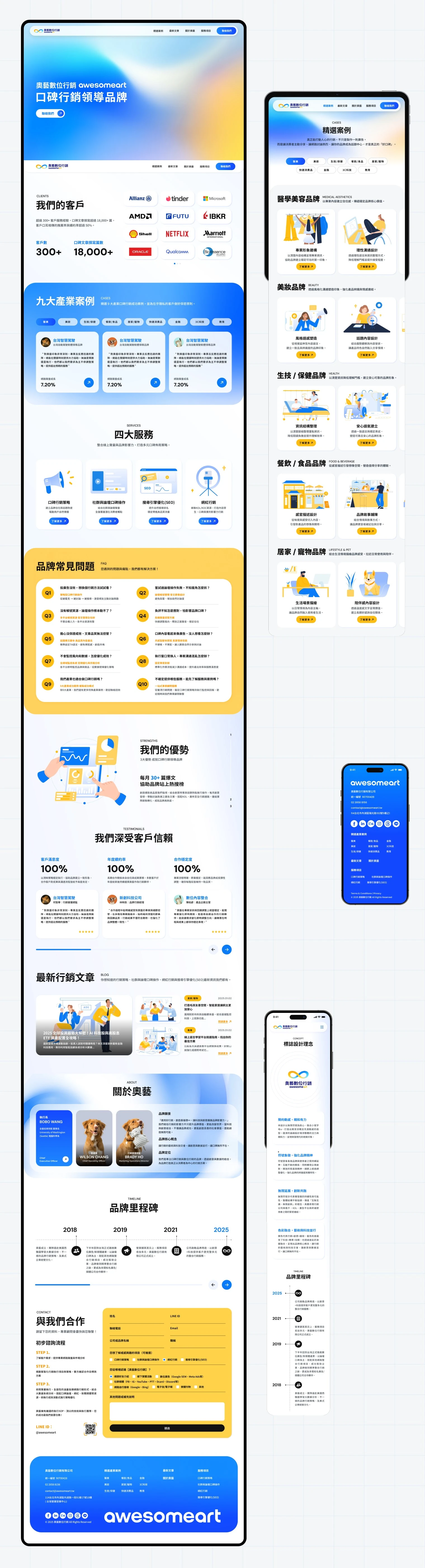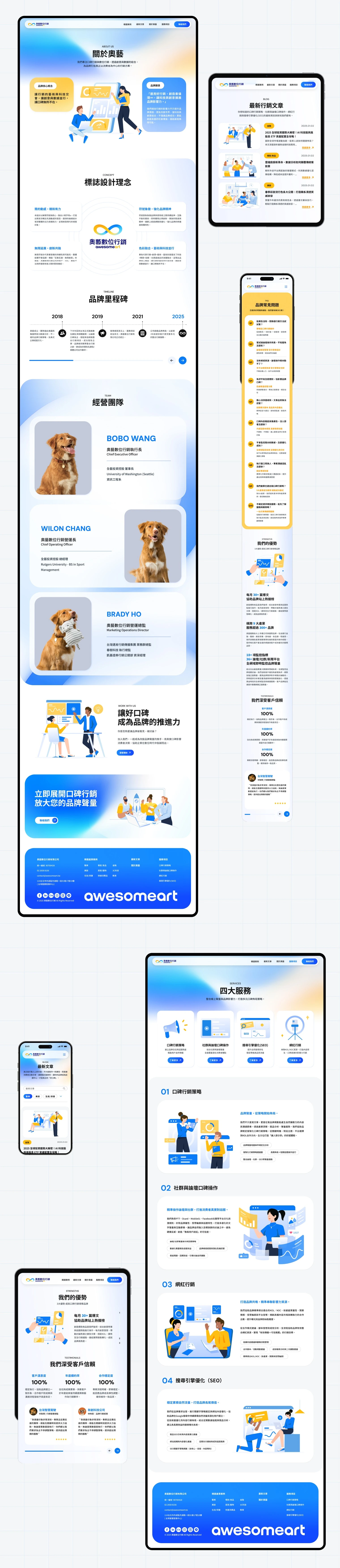 The website extends the new visual identity, translating the logo's curves and colors into a modern interface language.