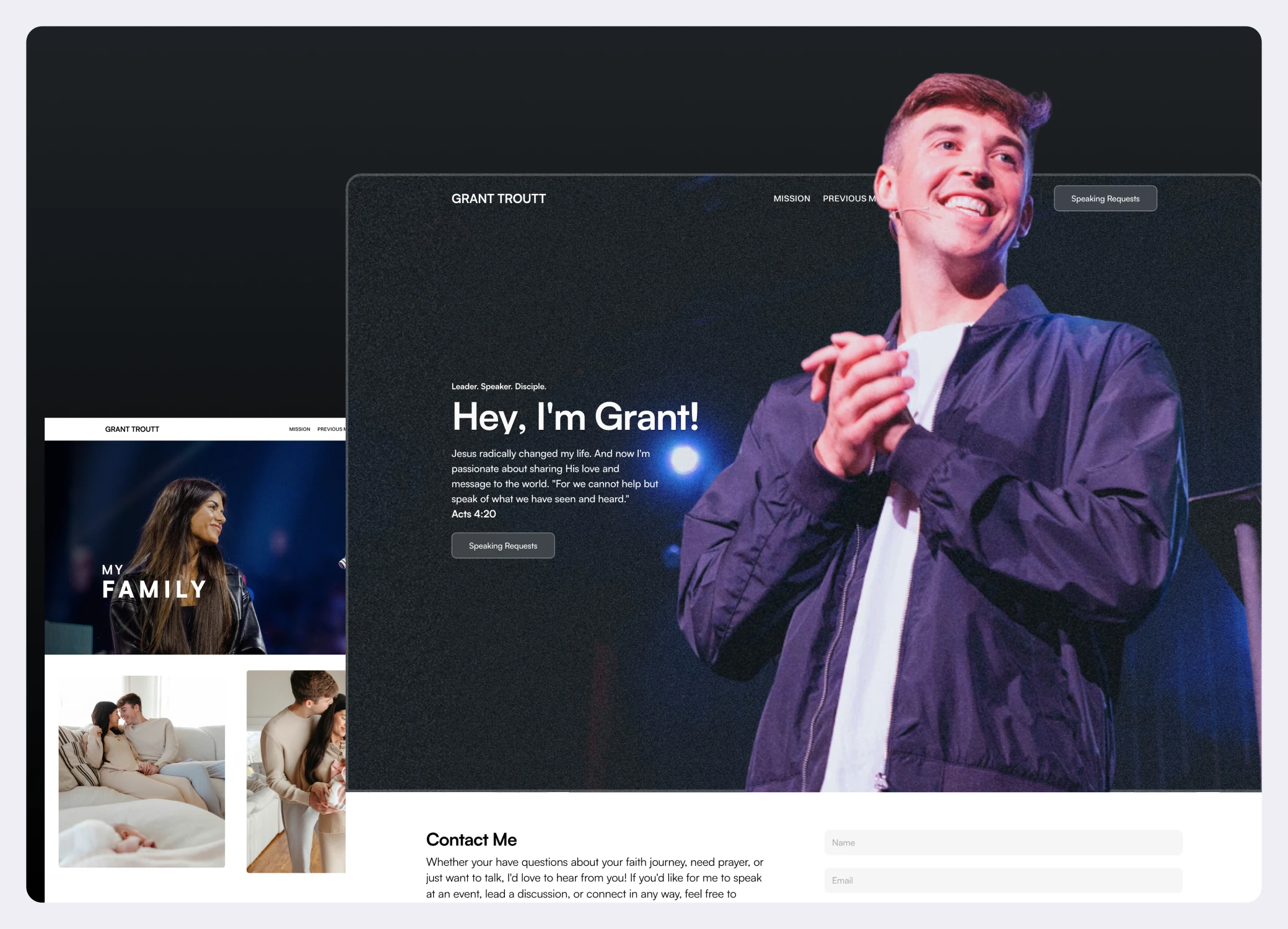 When Grant Troutt wanted to build a personal website, the goal was to create a space that reflects his passion for faith, community, and emotional connection. The site needed to be a welcoming hub for youth ministry resources, personal reflections, and speaking engagements — all wrapped in a style that felt authentic, approachable, and spiritually grounded.