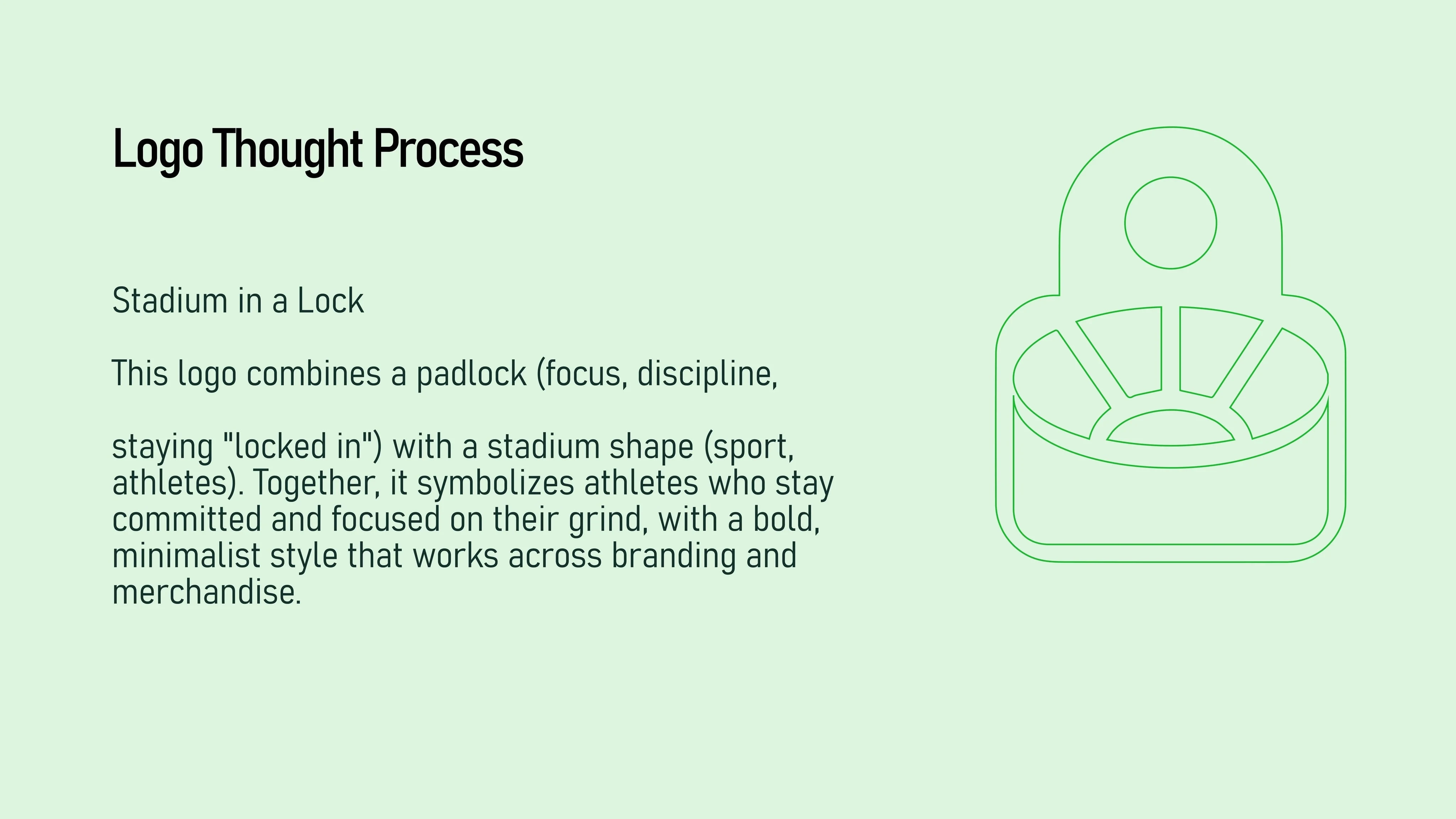 The Logo Mark: A stadium-meets-padlock icon symbolizing the intersection of discipline and opportunity.