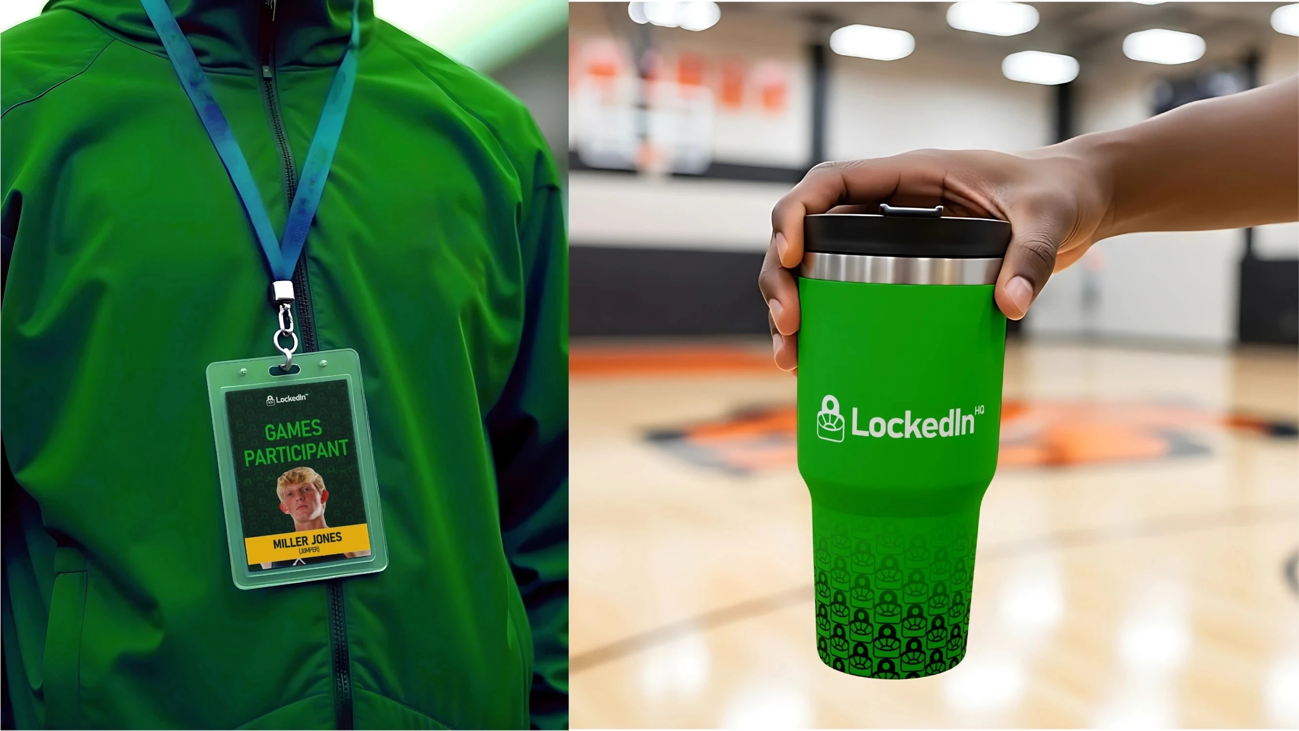 Jemirae designed the visual DNA for LockedInHQ, crafting a bold athlete-first identity system with a stadium meetspadlock logo and high-performance guidelines