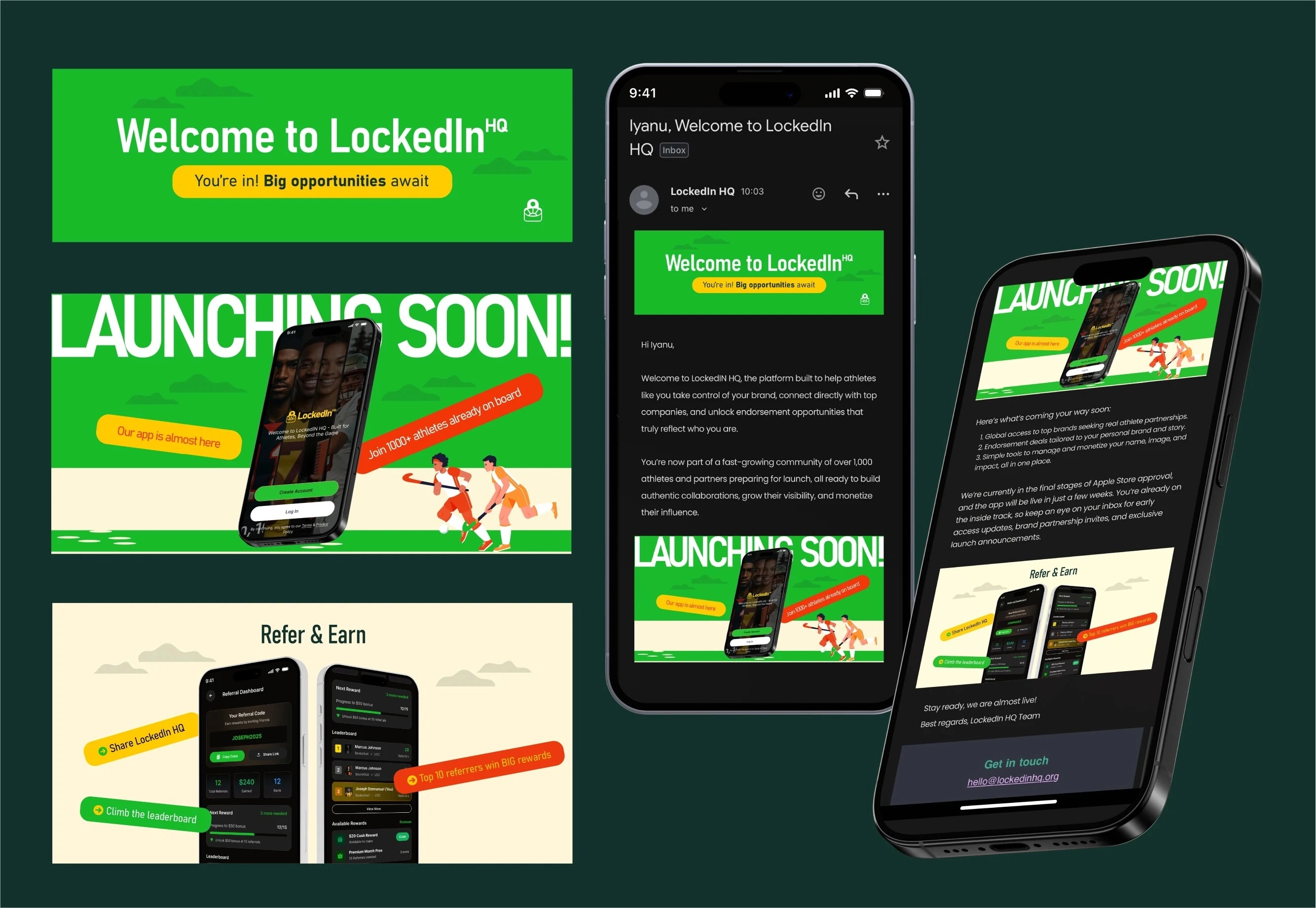 Our objective was to create a bold, athlete-first identity that positions Lockedin HQ as a centralized digital hub. We developed a strategic framework that balances the raw energy of sports with the technical sophistication of a digital ecosystem.