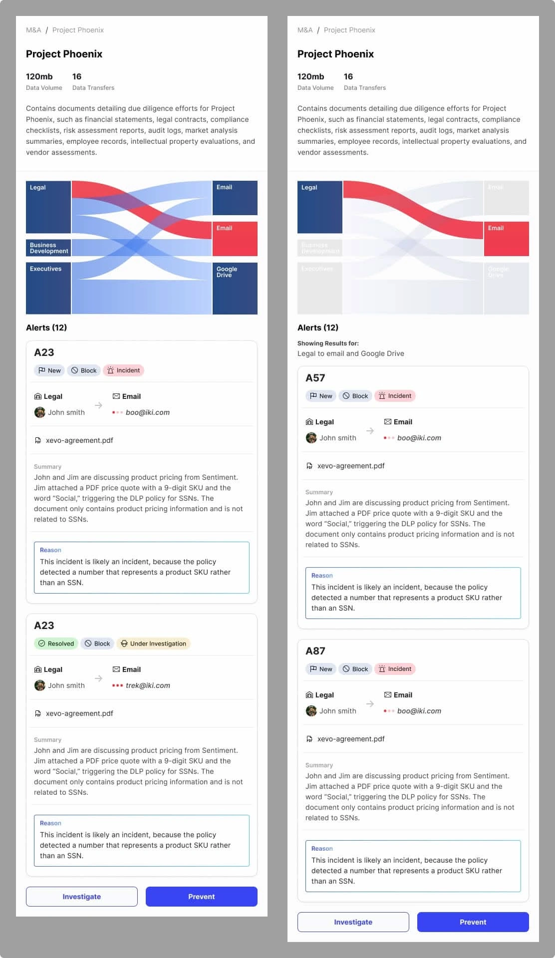 In a fast-paced design sprint for Trail Security (now acquired by Cyera and rebranded as Cyera DLP), I explored how to make enterprise data vulnerabilities feel instantly understandable and actionable.