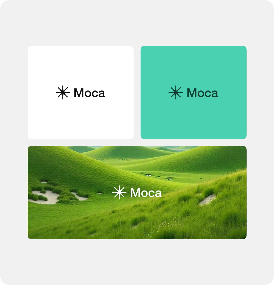 Moca’s identity is built around clarity, sustainability, and trust. The logo features a simple starburst symbol paired with a clean sans-serif wordmark, representing energy, flow, and connection in decentralized finance.