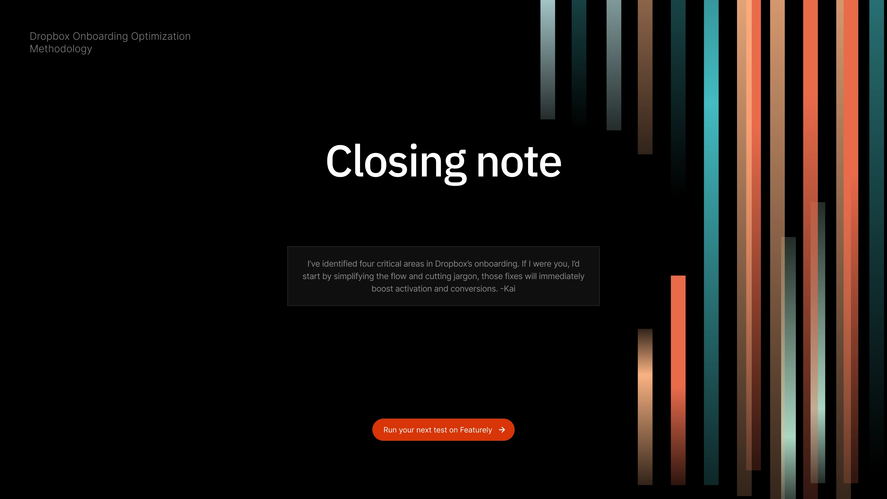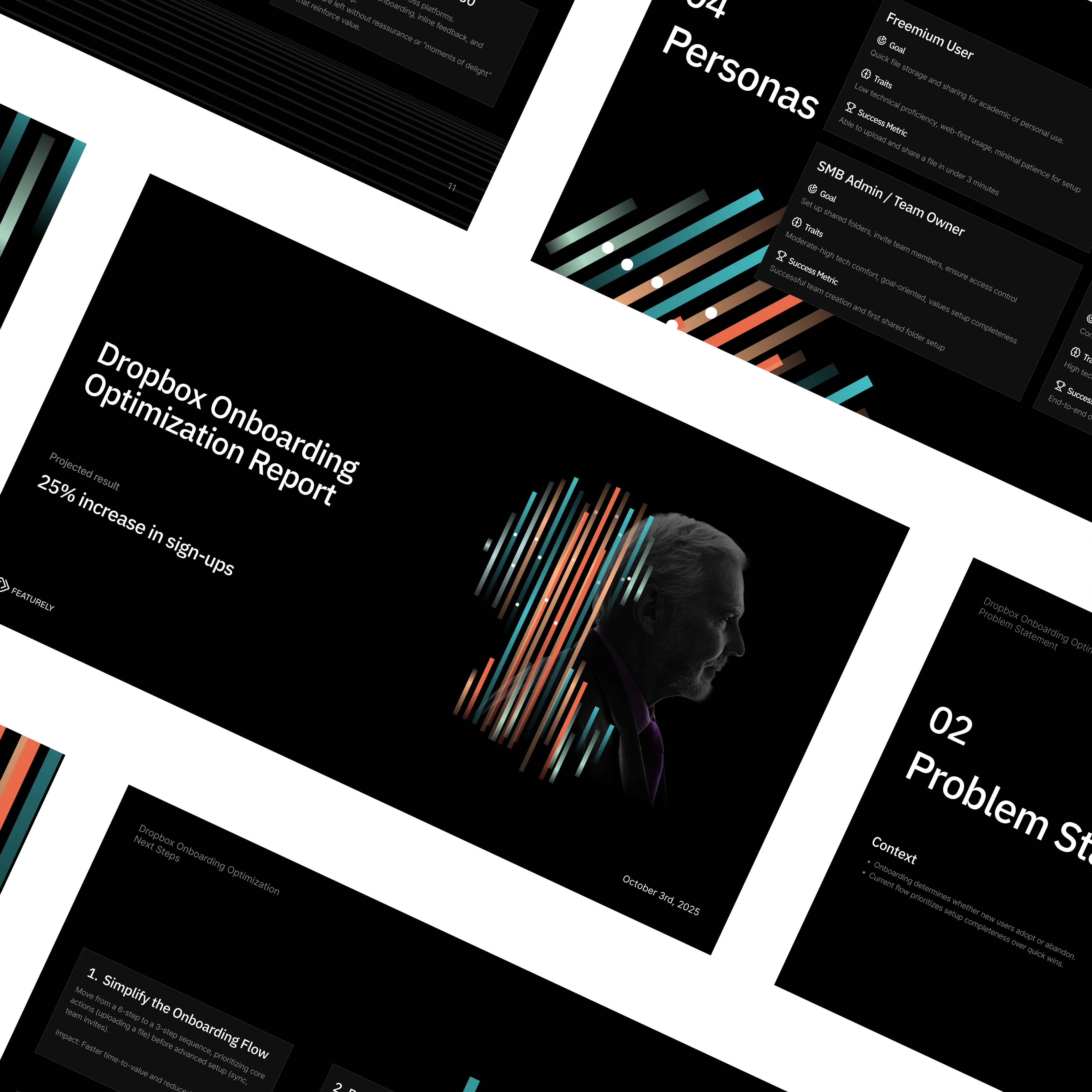 In parallel, I helped refine the main onboarding experience inside the product, simplifying complex steps and creating a more human, intuitive interaction flow that guides users through testing without confusion. Together, these updates made Featurely feel smarter, warmer, and far more professional, a tool that both startups and enterprise teams can confidently use to generate actionable insights at scale.