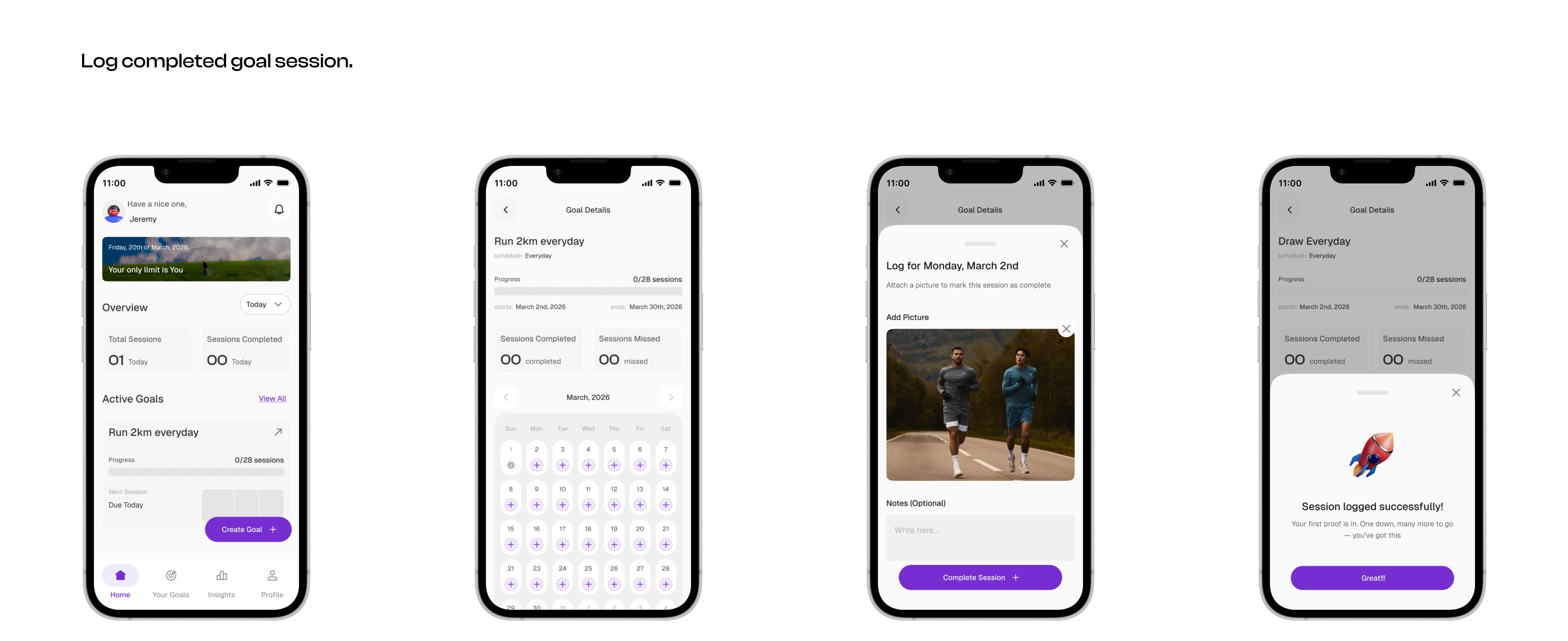 You see, in the field it felt like almost everyone was designing a goal tracking or goal related app, so I thought it’d be easier to find a suitable one for my use case, but I was wrong. So I decided to design a solution (Proofit) that not only tracks your goal, but visualizes your sessions through pictures, to clearly see your progress and improvement.