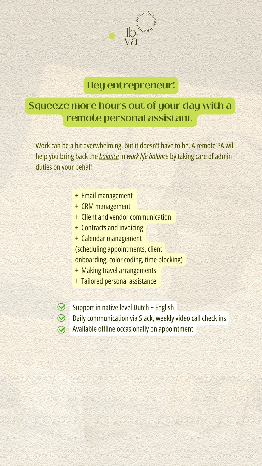 Admin decluttered, work life unbothered: let’s collab!
