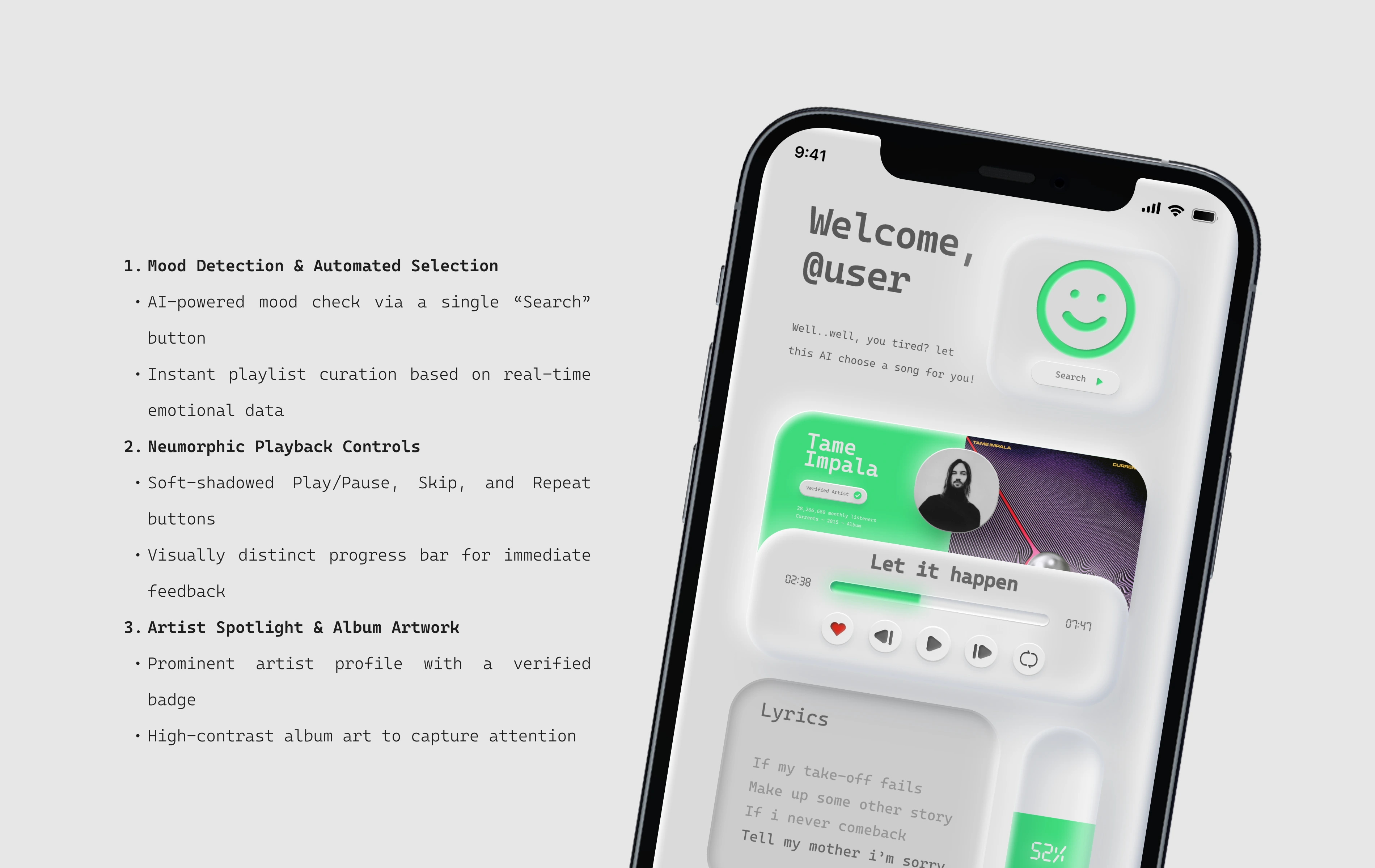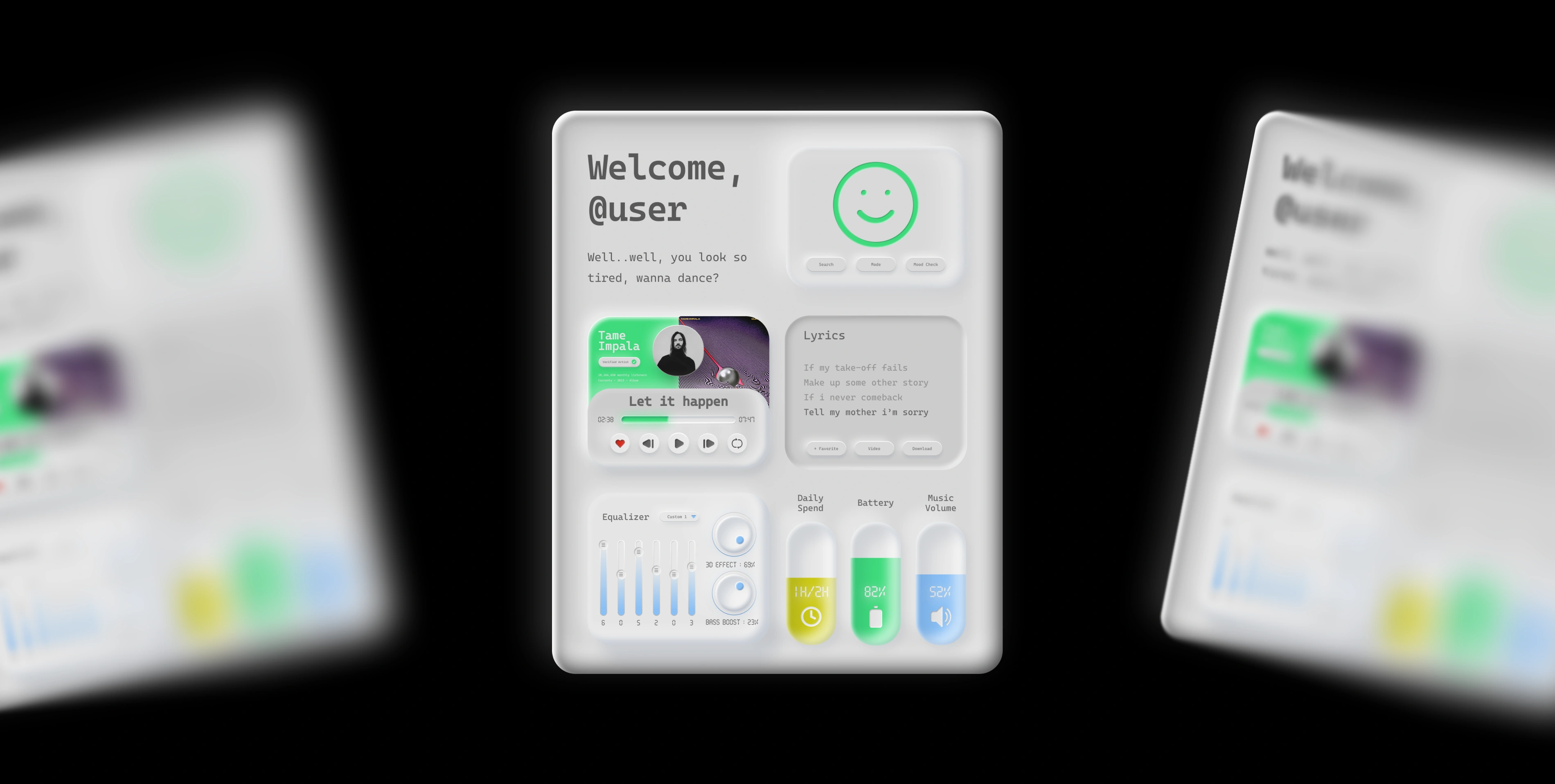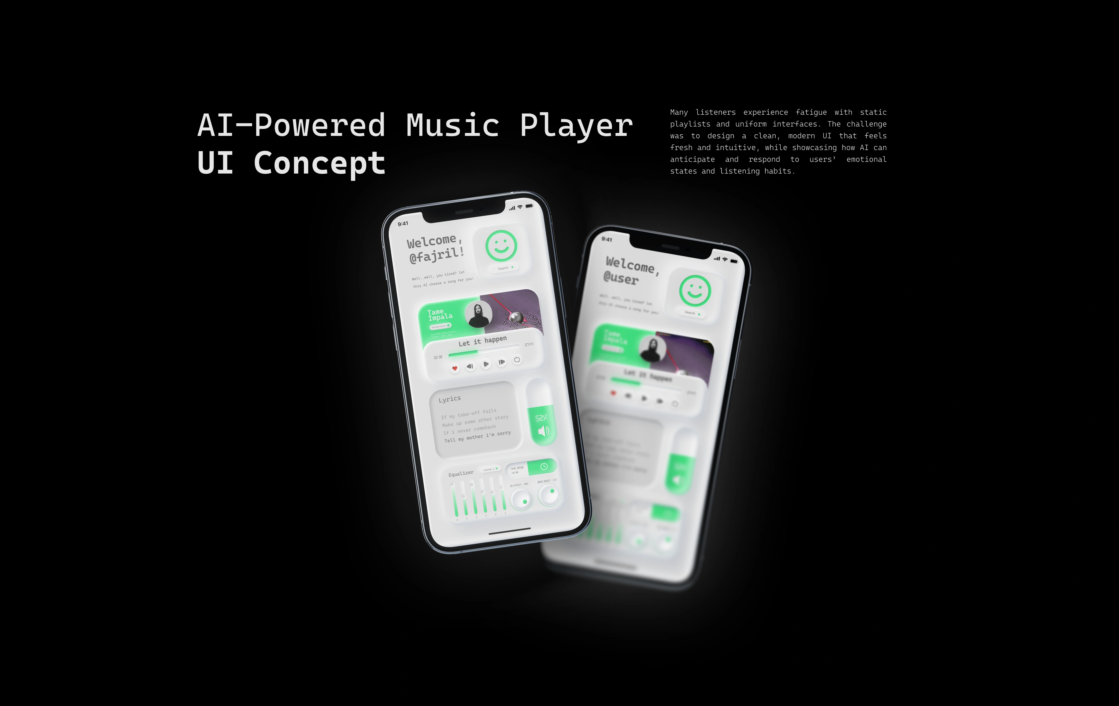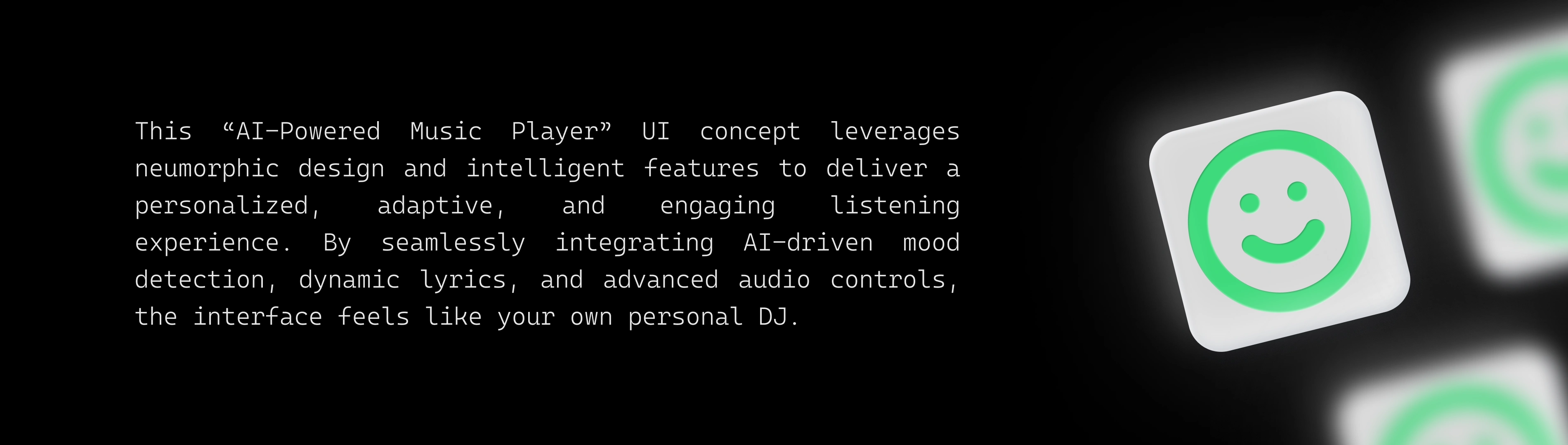 This "AI Music Player" UI concept leverages neumorphic design and intelligent features to deliver a personalized, adaptive, and engaging listening experience.