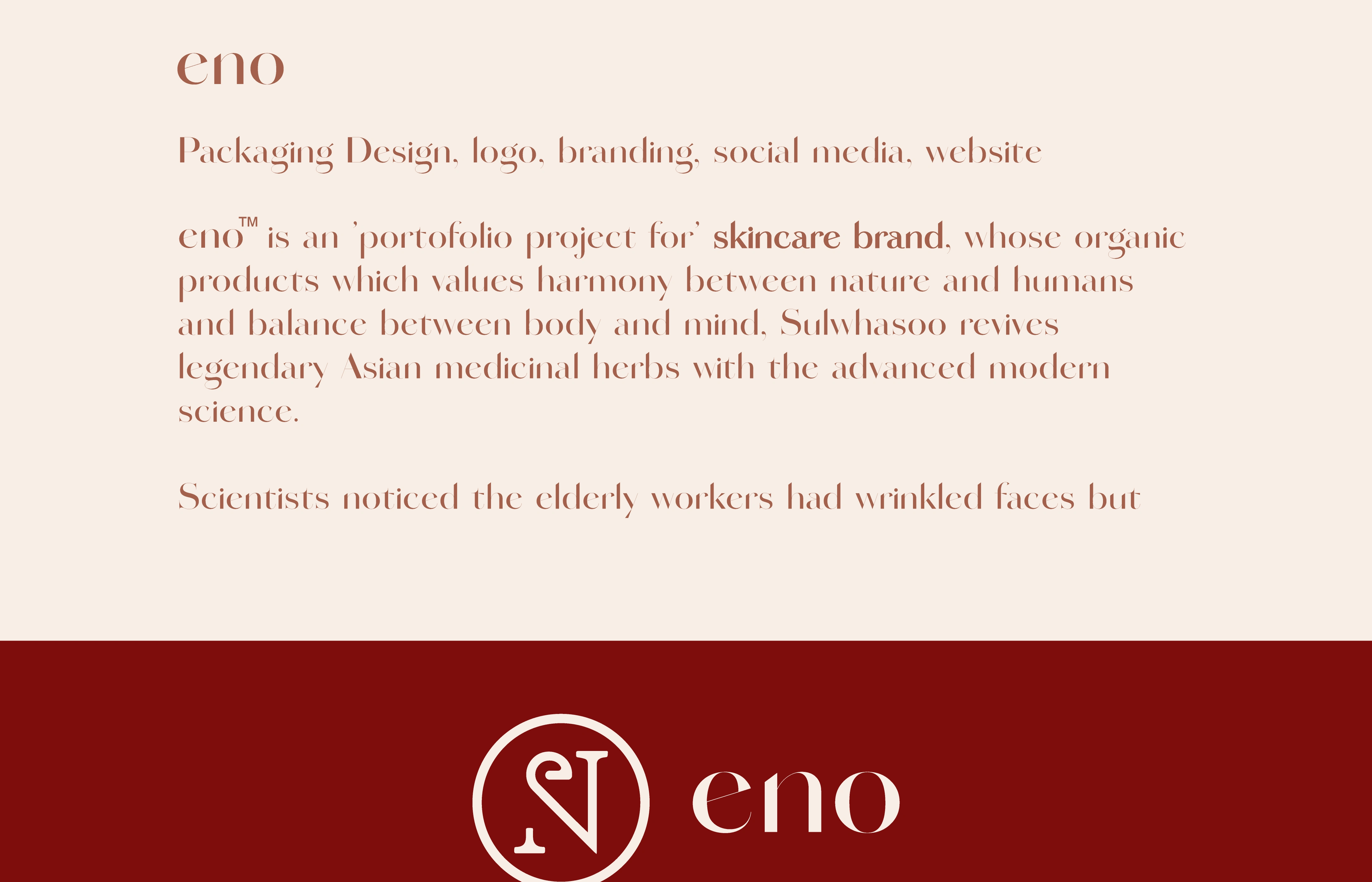 Branding Concept For ENO Skincare. Brand Identity, Color Pallete, Typography, and imagery Social Media Design Website Design