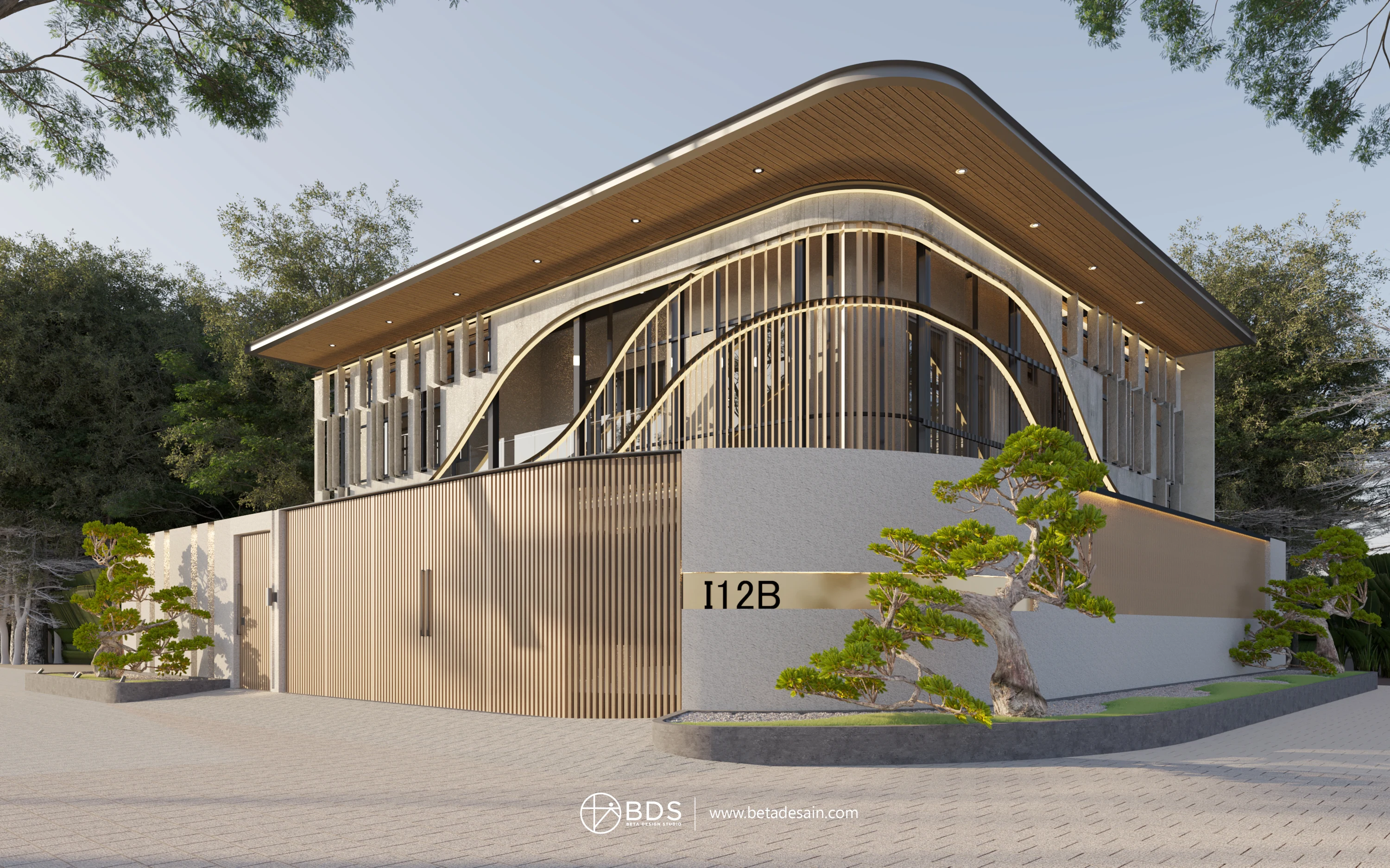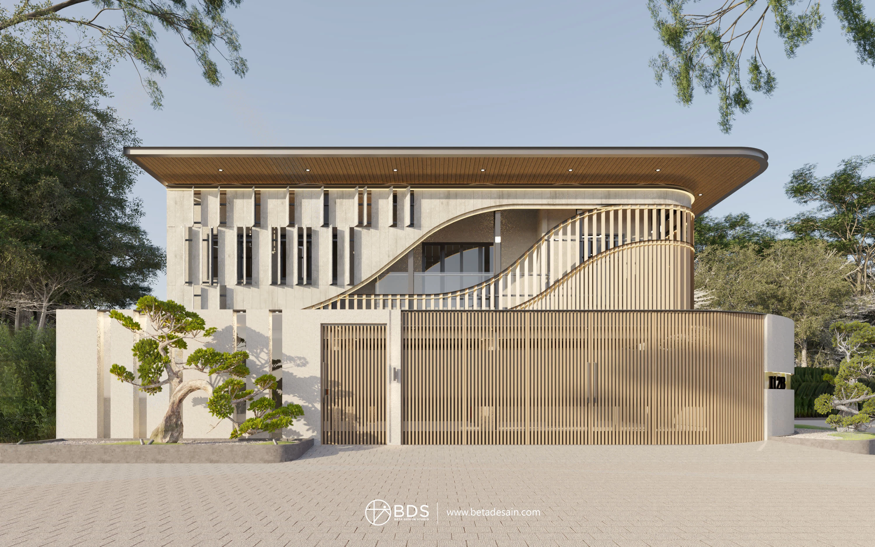 The site is on a hook, providing an ideal location for designing a beautiful facade. The building is two stories and measures 15m by 13m. The ground floor is used for parking and staff lockers, while the upper level is designated for office space.