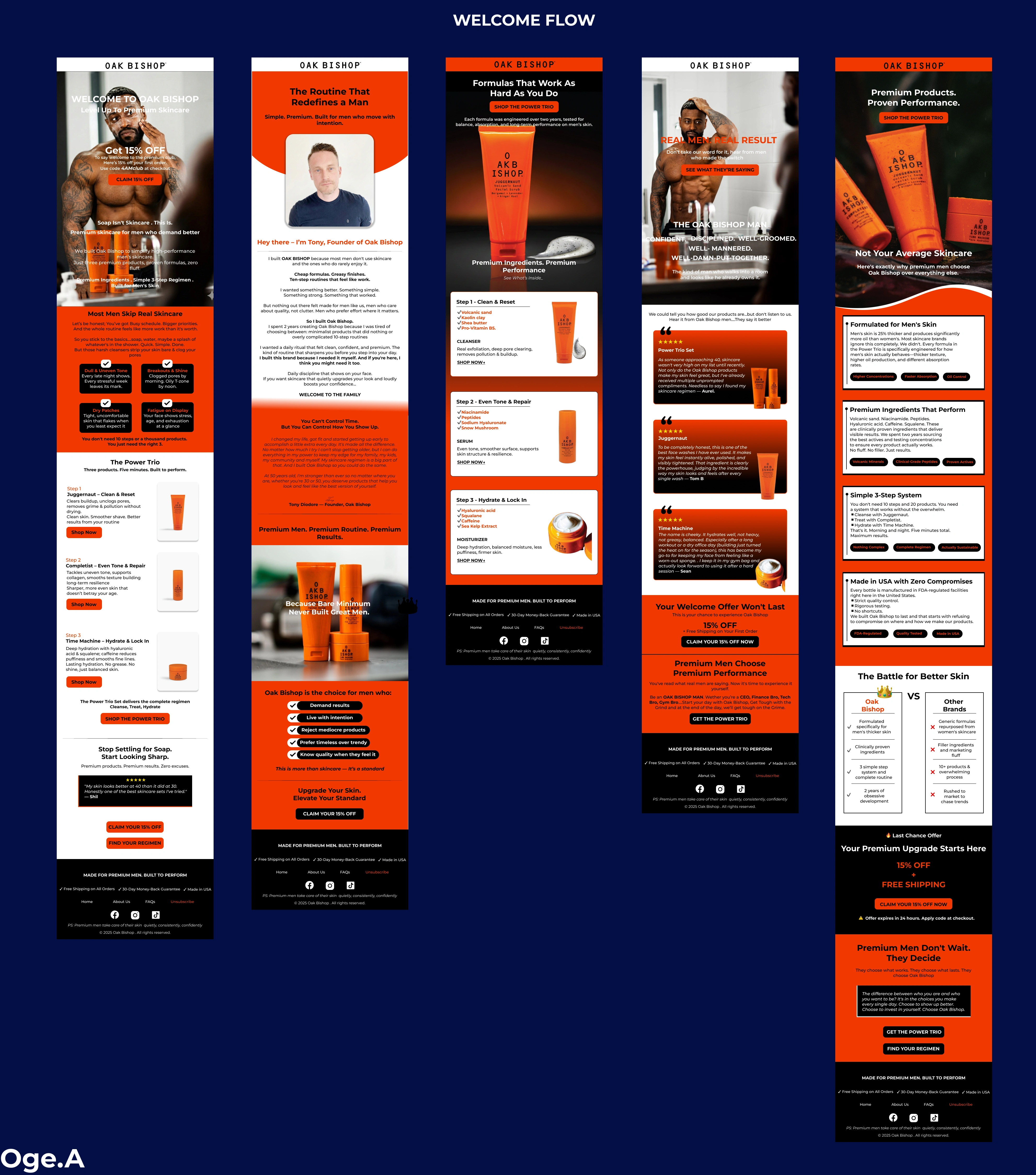 Each email plays a specific role .... setting expectations, introducing the brand’s philosophy, demonstrating product performance, and reinforcing outcomes while consistently anchoring the customer to a simple routine. The result is a welcome experience that builds trust, primes long-term retention, and converts without overwhelming the subscriber.