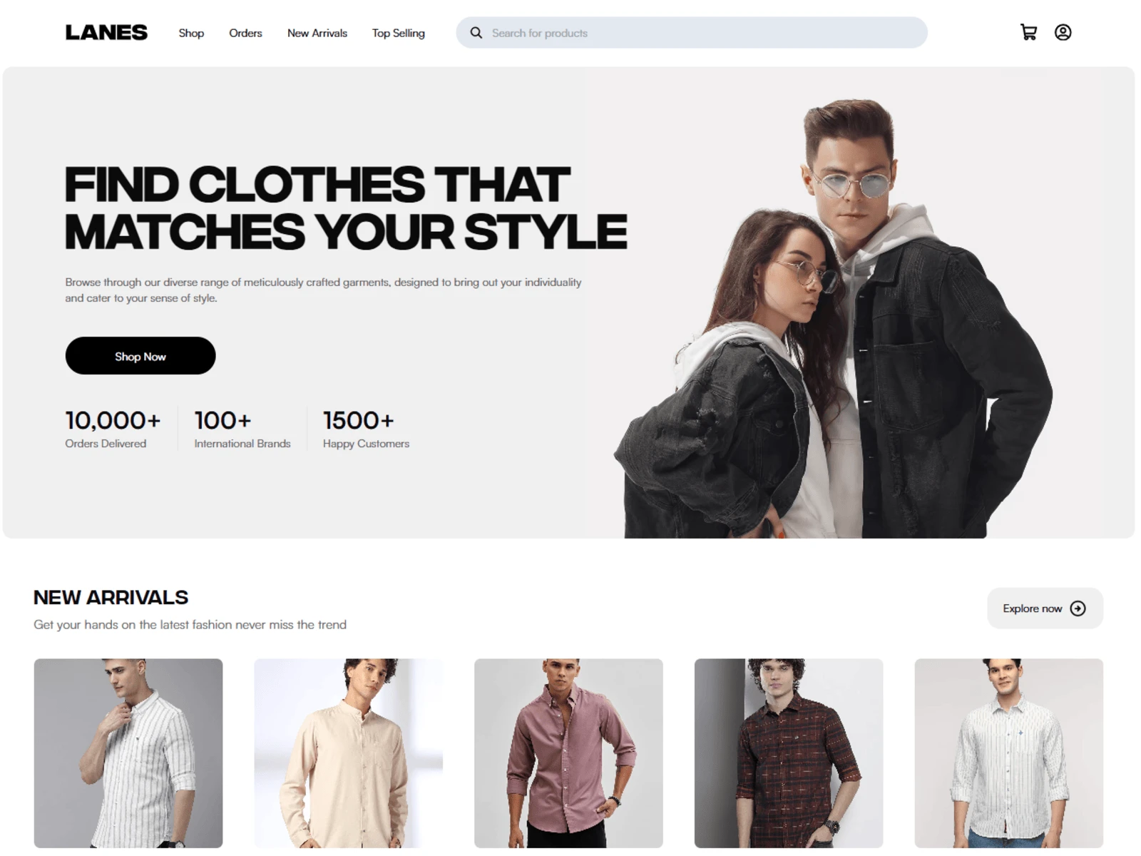 Lanes is a dynamic e-commerce platform tailored specifically for fast fashion, offering a diverse range of products, including shirts, t-shirts, shoes, and more