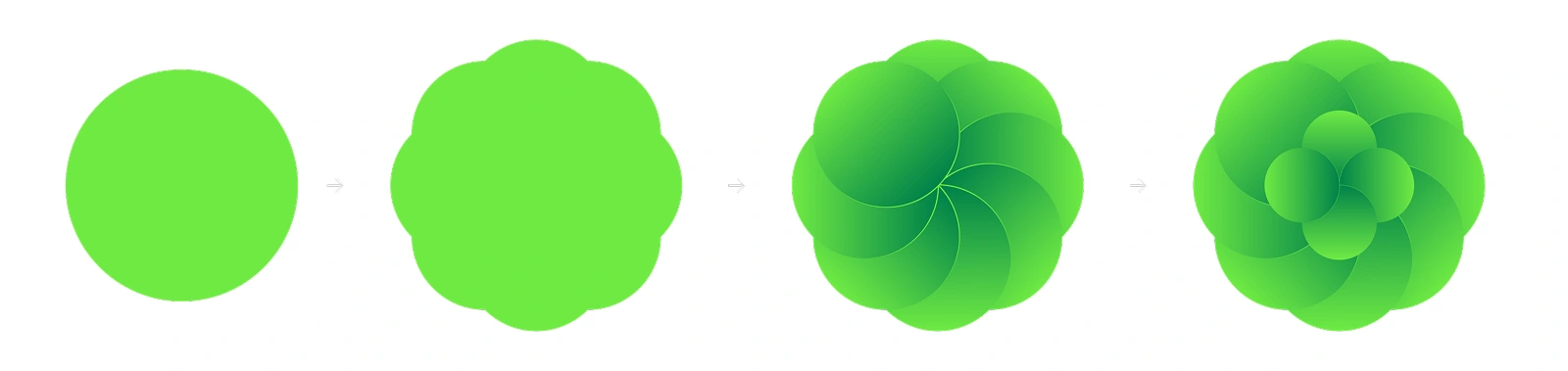 The solution was a visual system of organic shapes reminiscent of flowers and seeds, but with a distinct 3D feel. We achieved this by layering elements and using gradients to create a clear separation between the figure and the background.