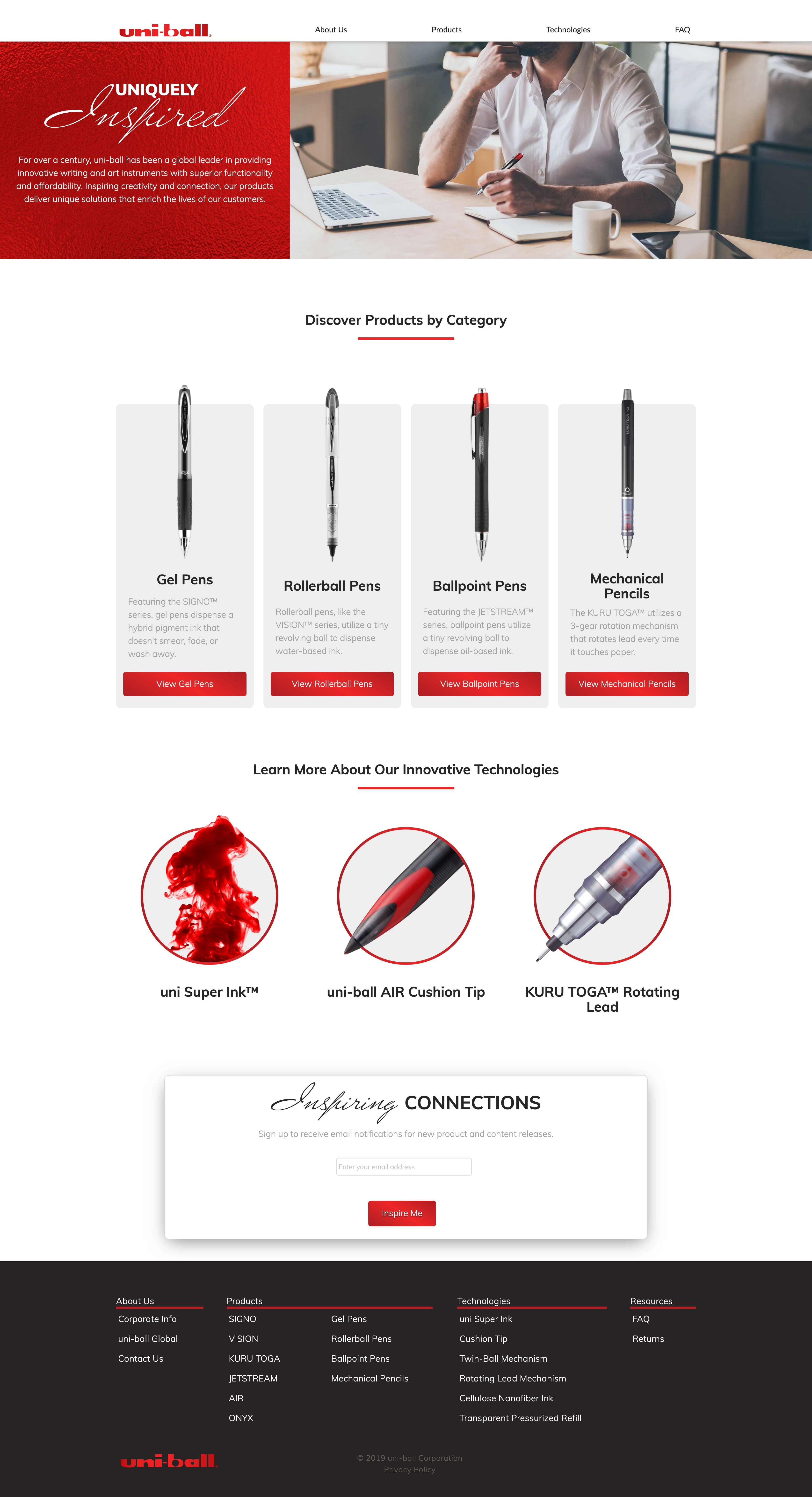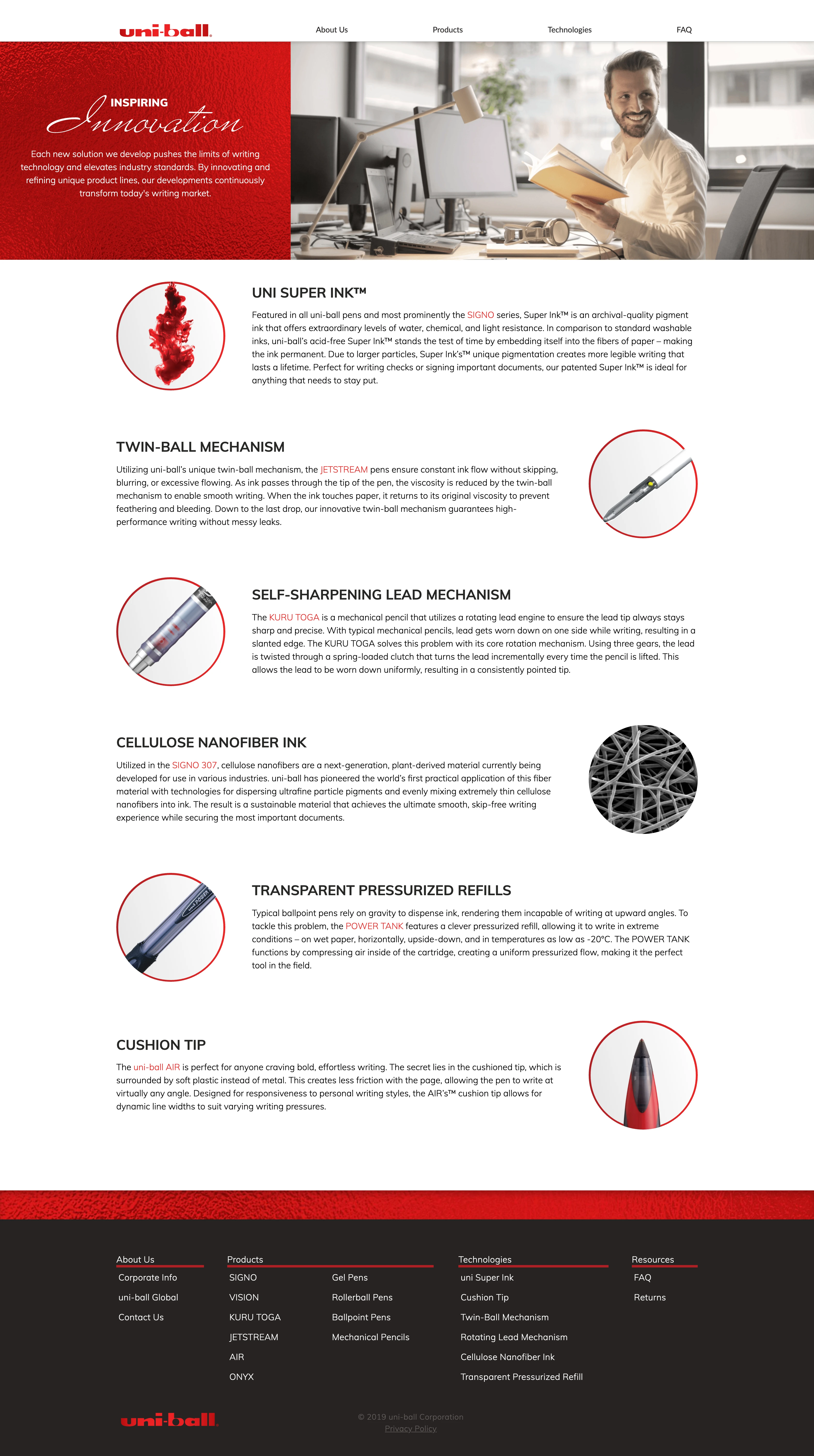 I worked with our graphics team to redesign the uni-ball corporate website. We also advised them on the ideal user experience for their global brand identity.