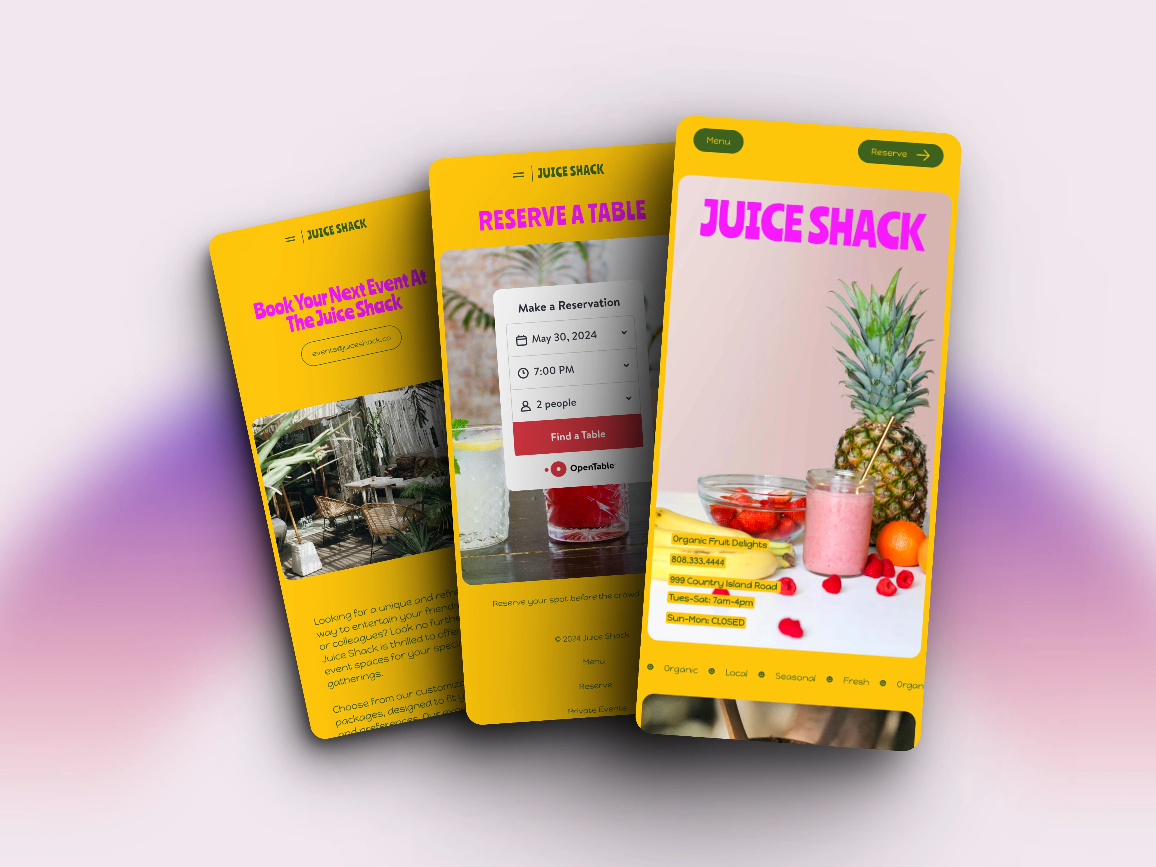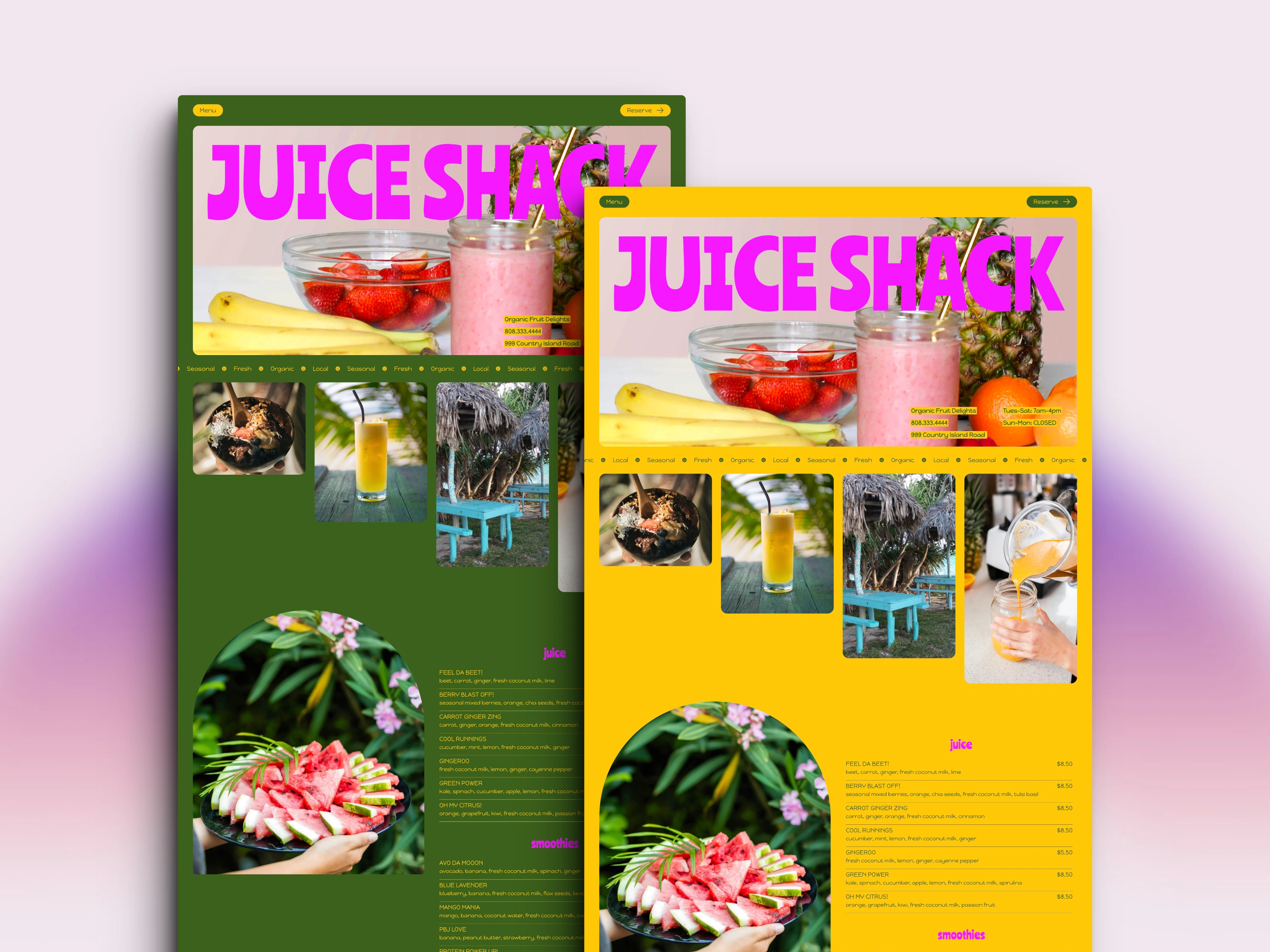 I created a mock company--a tropical organic juice, coffee, and tea shack set next to the beach-- and created all of the all of the copywriting, branding, and art direction instead of using the provided materials. 🥭