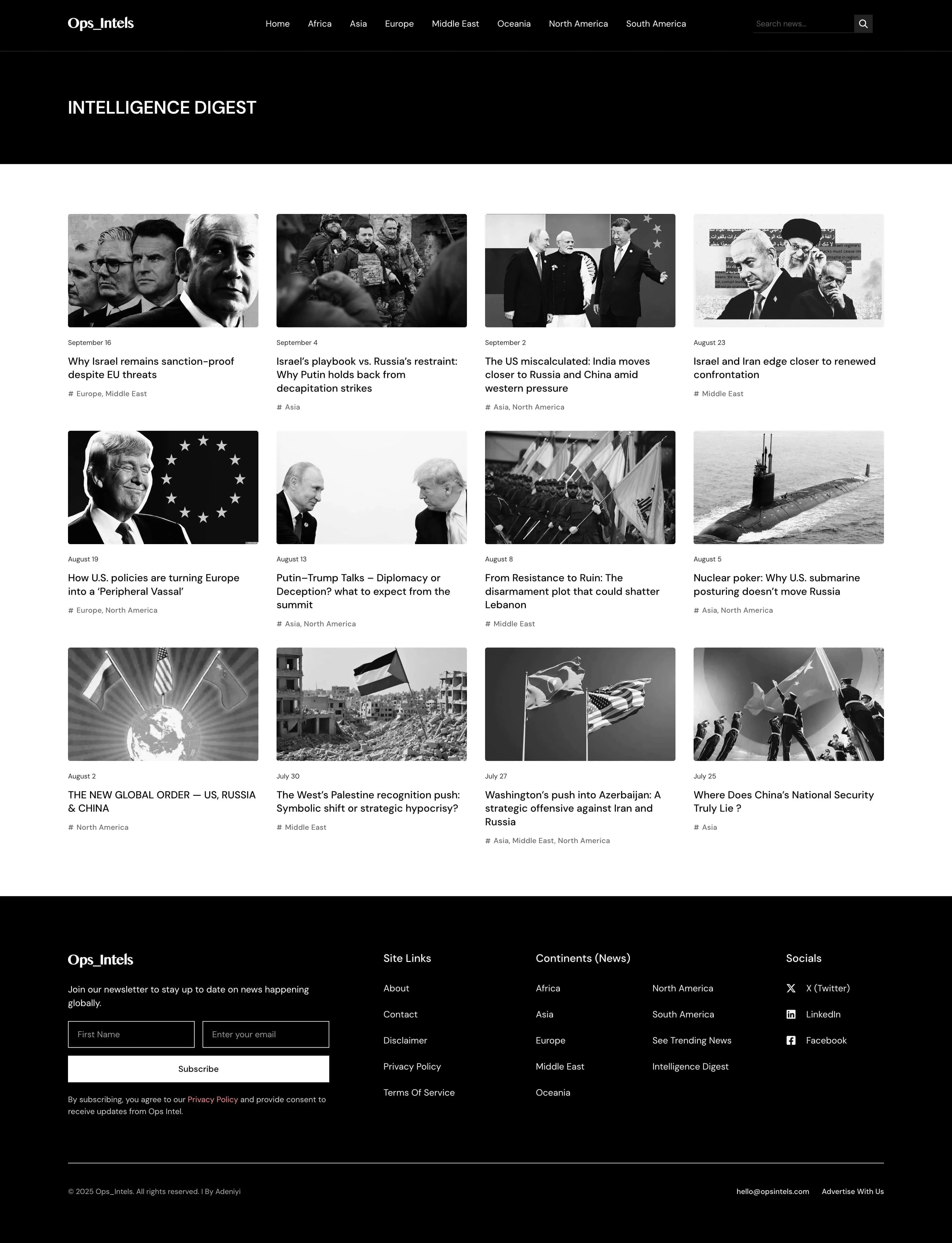 A fast, credible news platform for geopolitics, intelligence, and global conflict reporting.