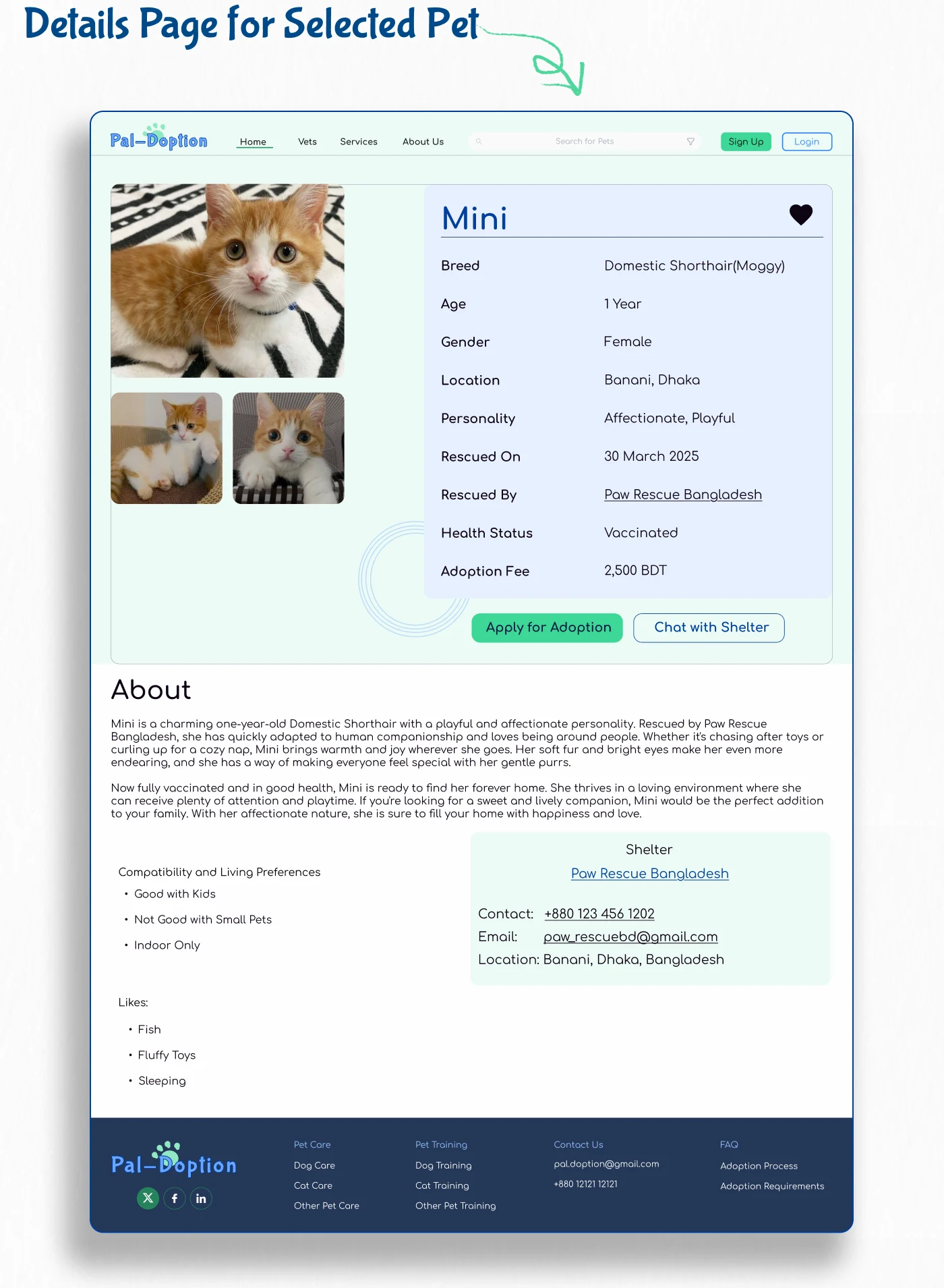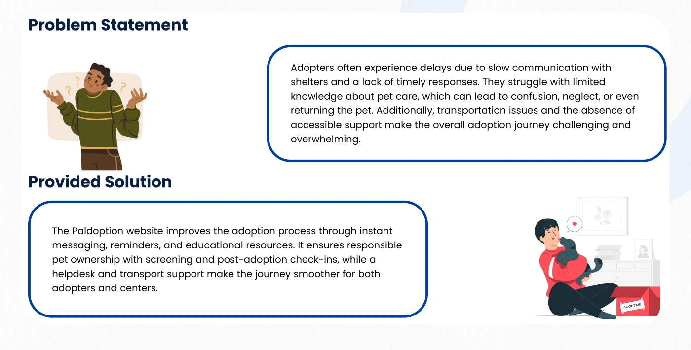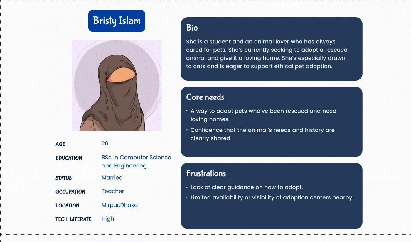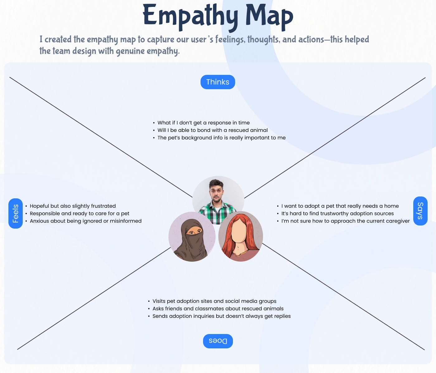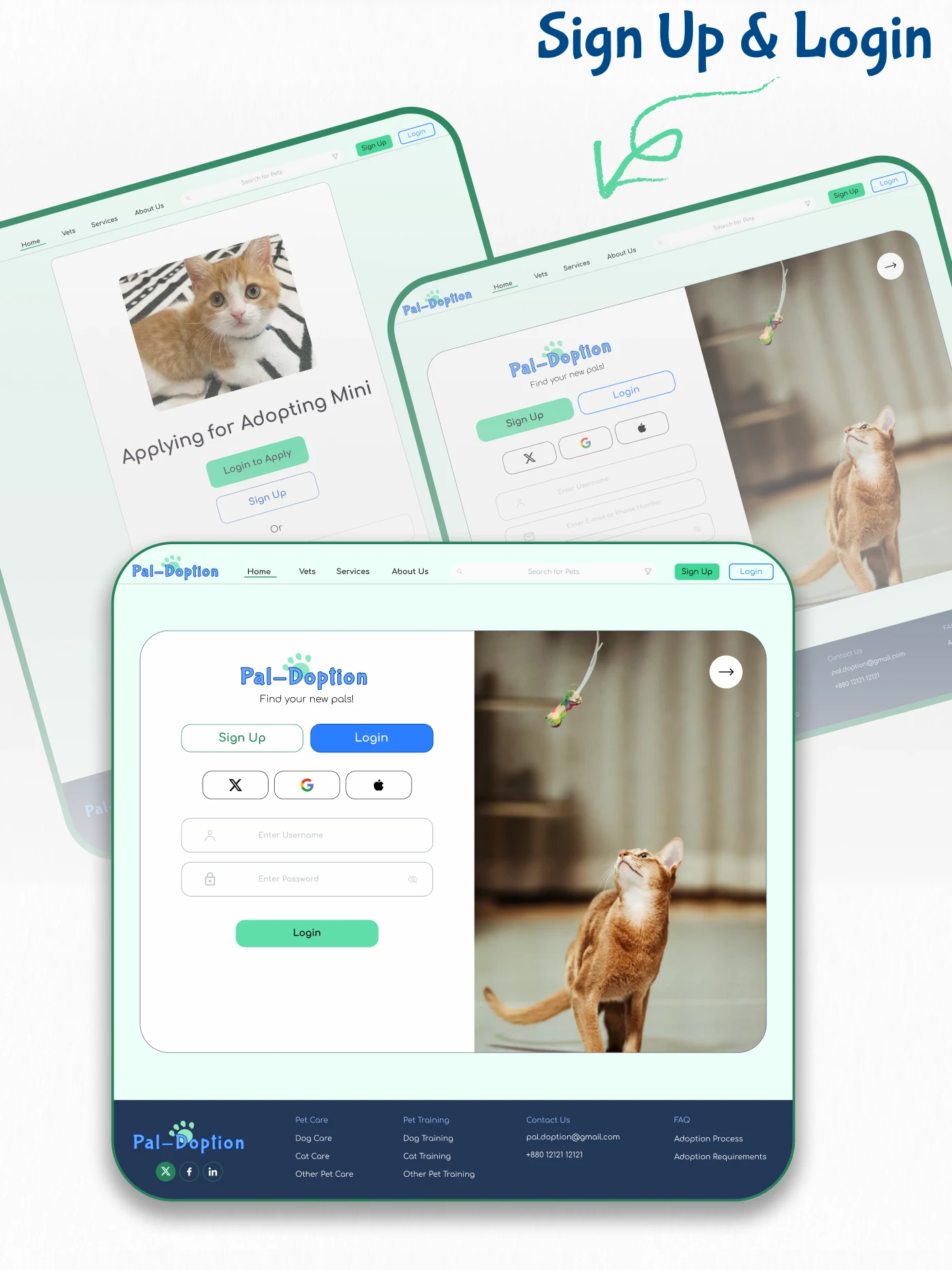 Designed a responsive pet adoption web app with improved navigation, accessible UI, and a streamlined adoption process for a smoother user experience.