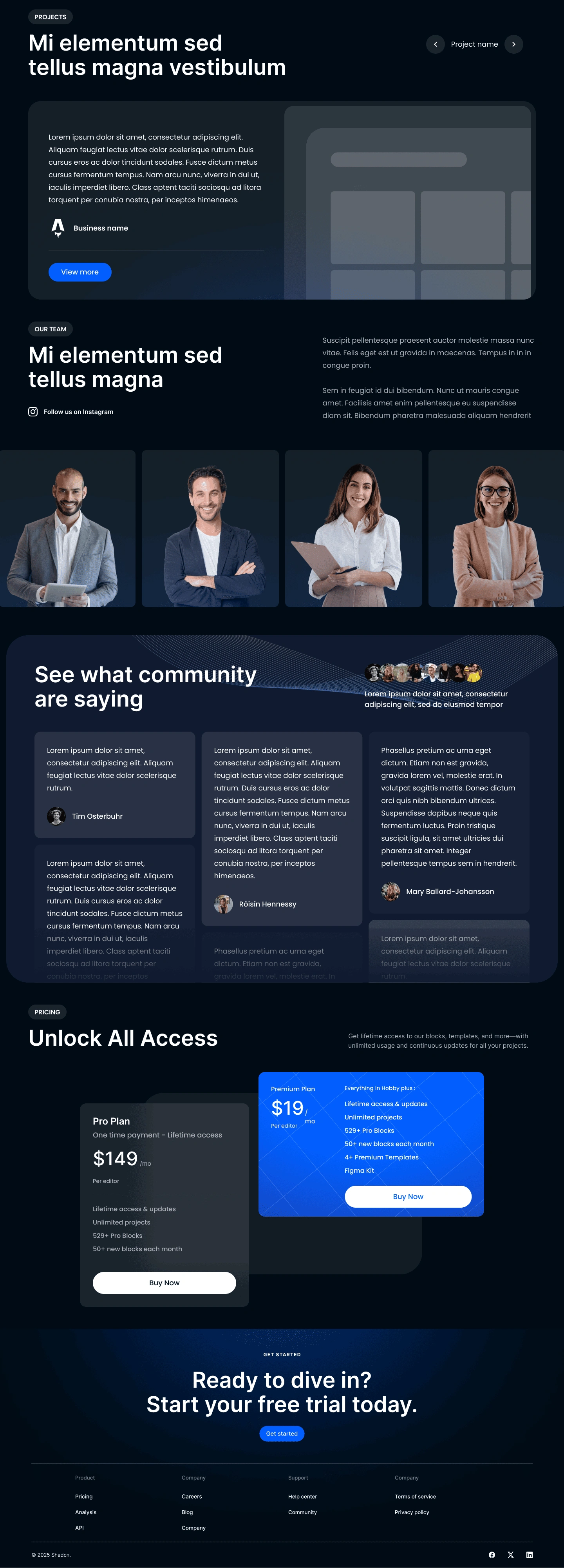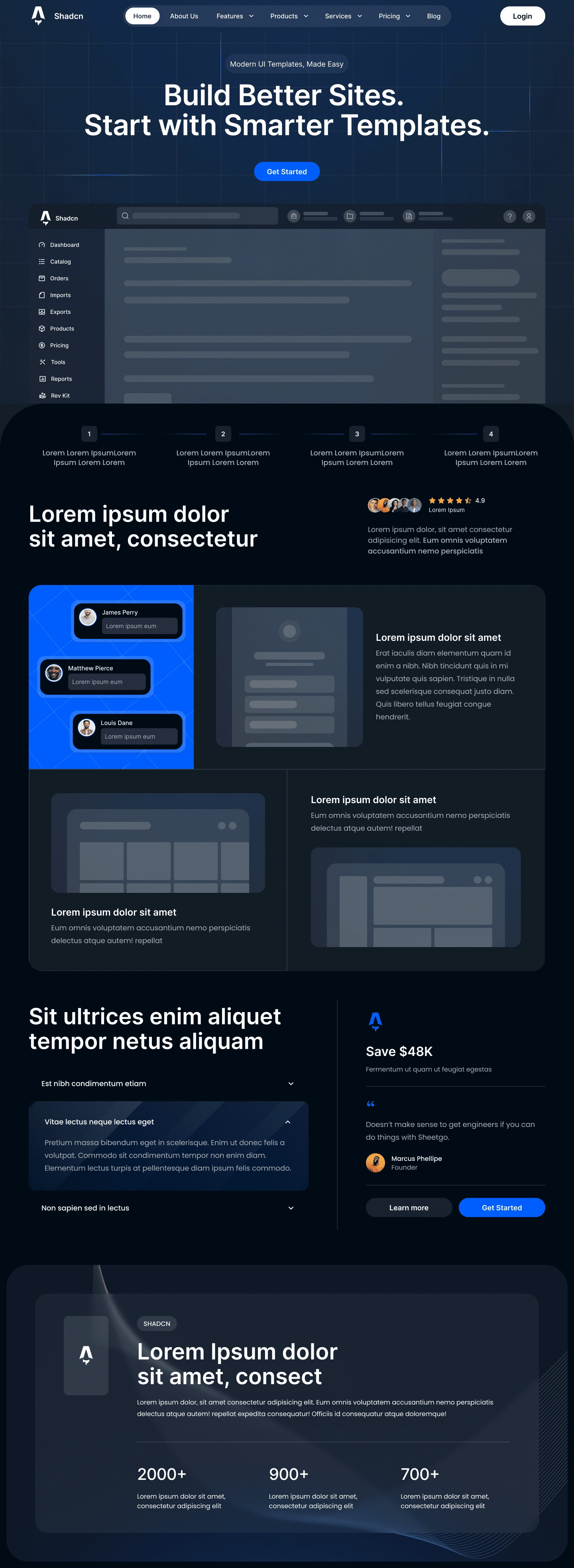Landing page for a smart template platform, highlighting features, testimonials, and CTAs in a dark, modern layout
