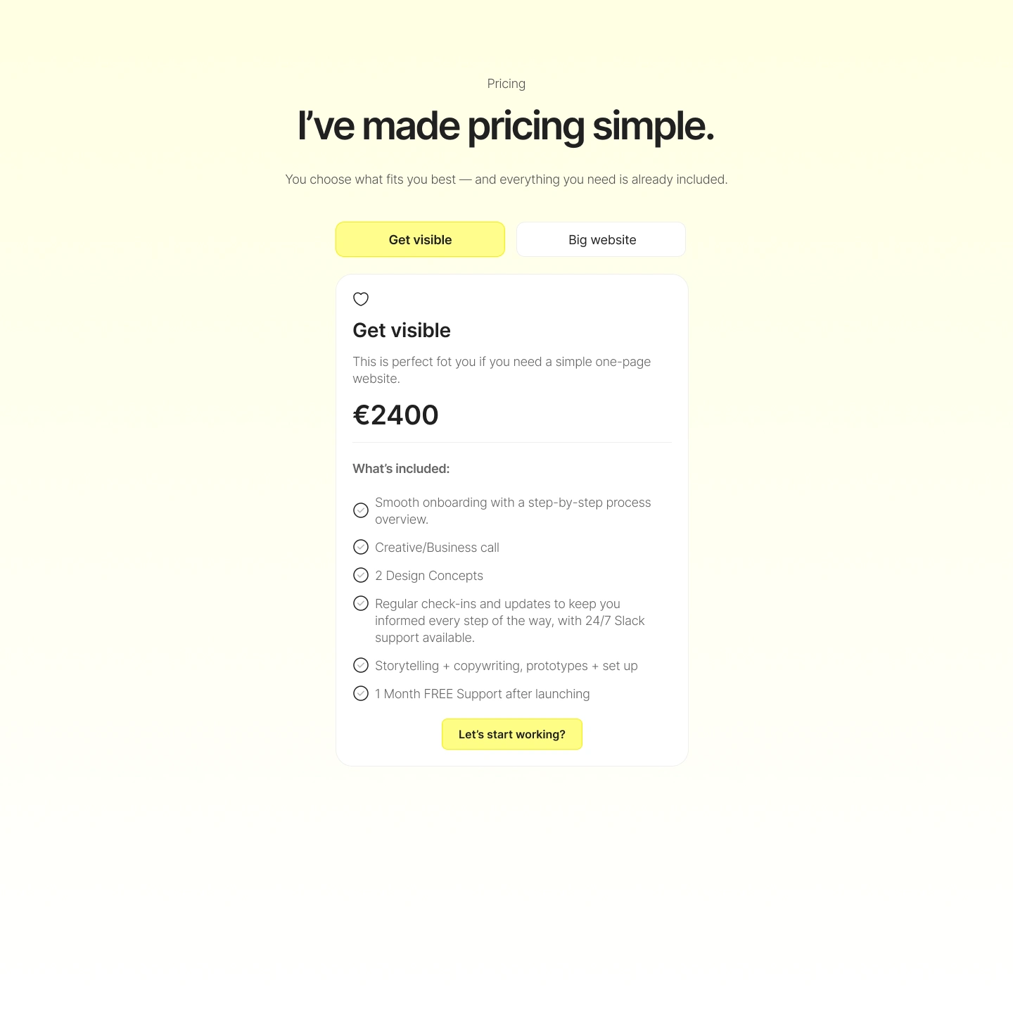 Here's one of my versions of the pricing section.