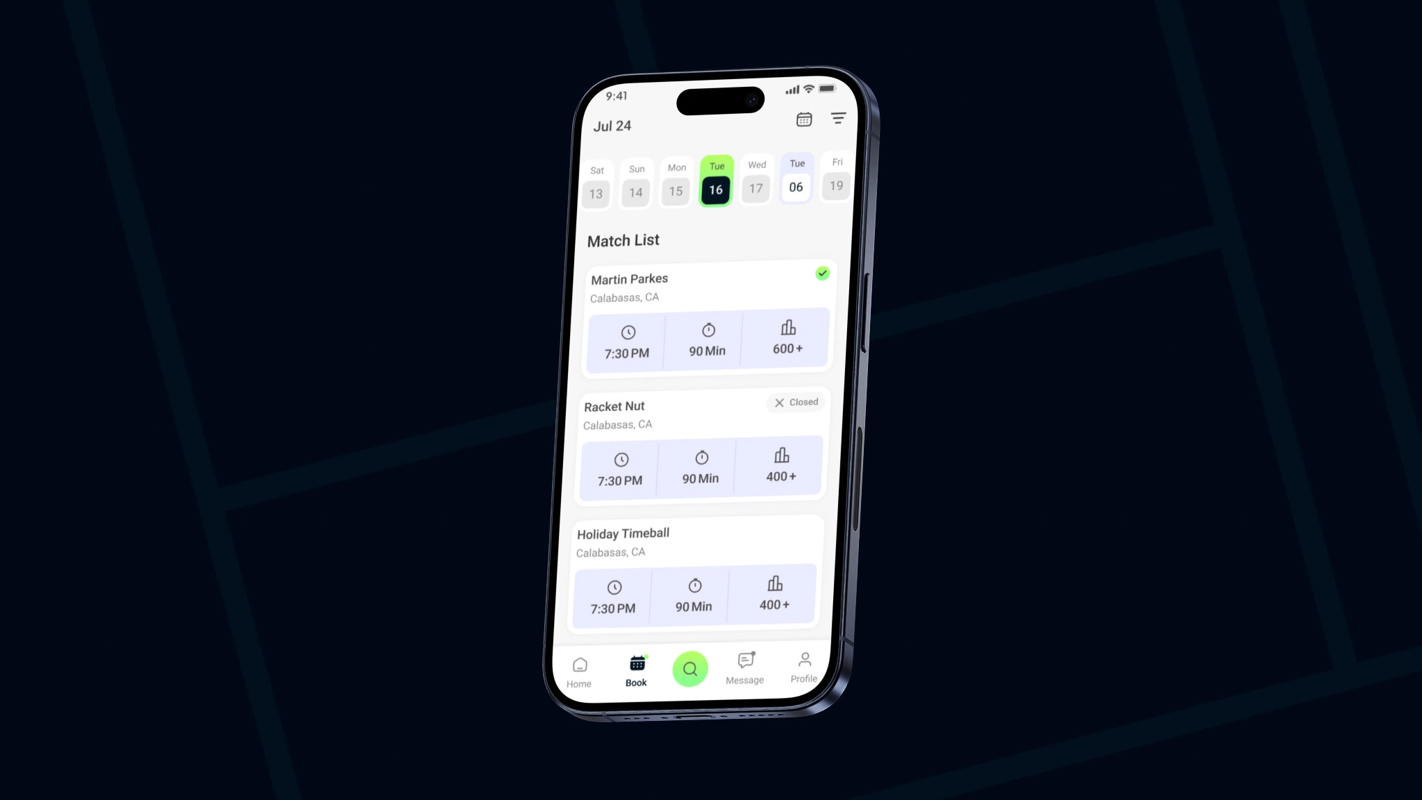 Check and view all upcoming matches with time, duration, skill level, date, and player count at a glance.