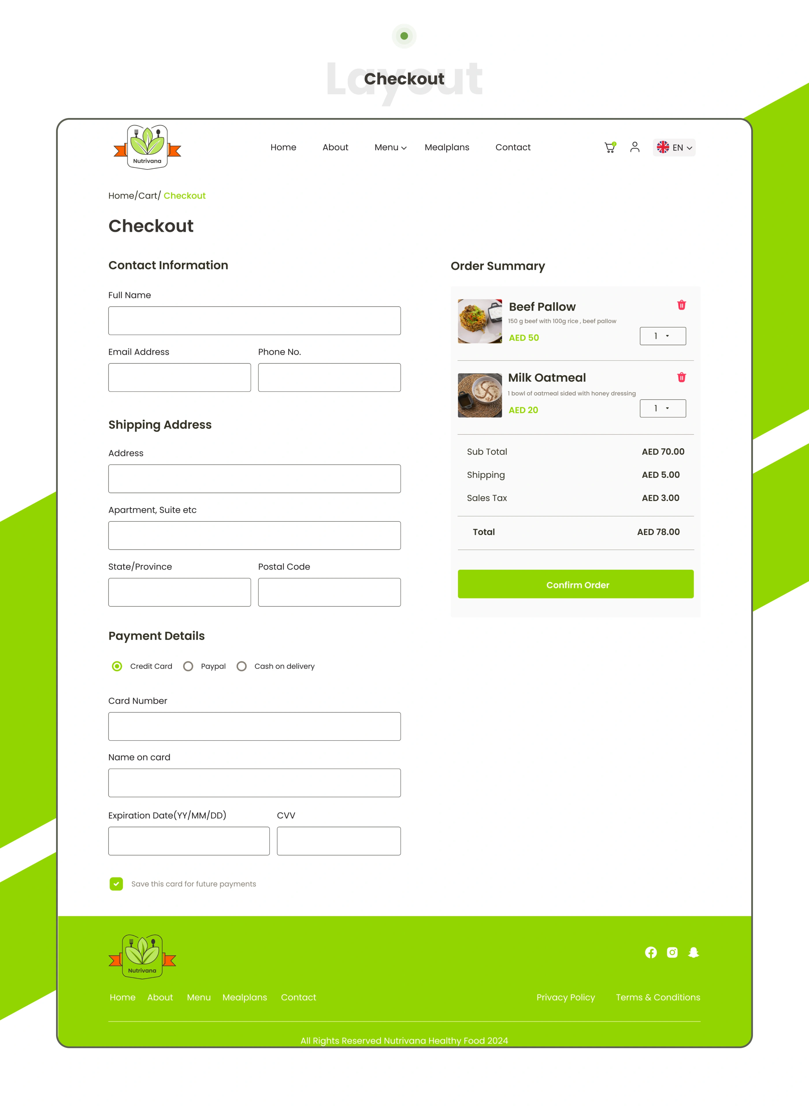 Nutrivana is a health-focused restaurant and e-commerce platform designed to redefine the way people approach healthy eating. By offering a seamless blend of nutritious, flavorful meals and an online marketplace for wellness products, Nutrivana is a one-stop solution for health-conscious individuals.