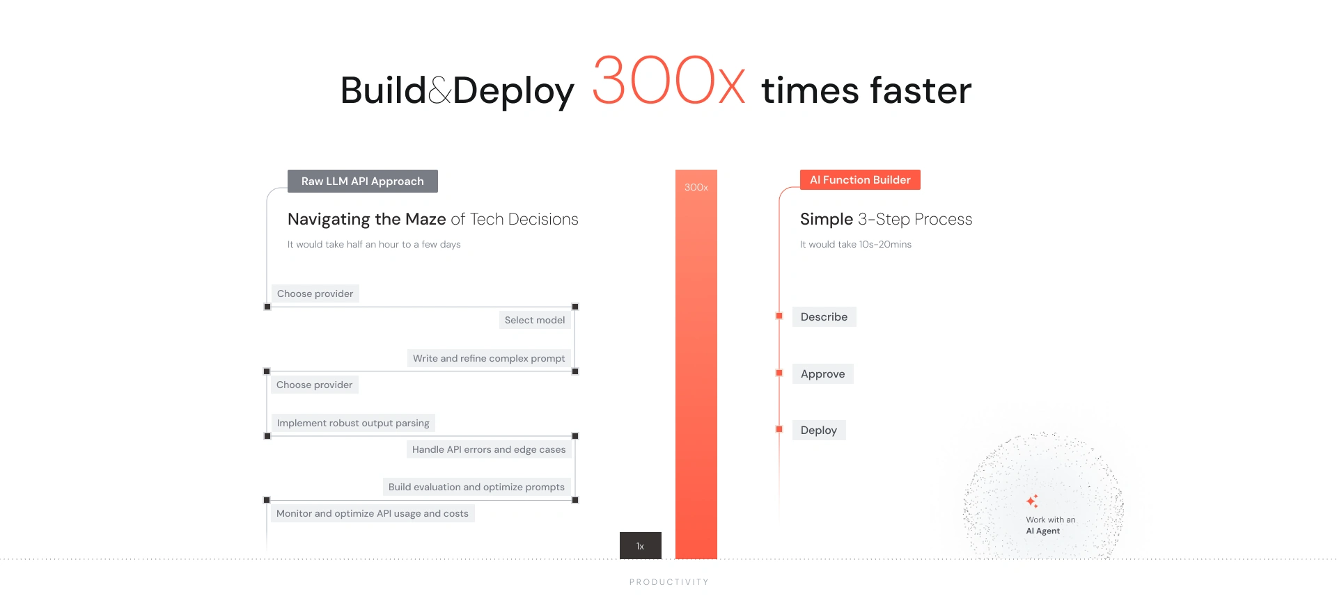 AI Function is a platform for quick AI creation and deployment without coding, offering a simple interface and powerful tools. It enables you to prototype and refine AI solutions in minutes, saving time and resources.