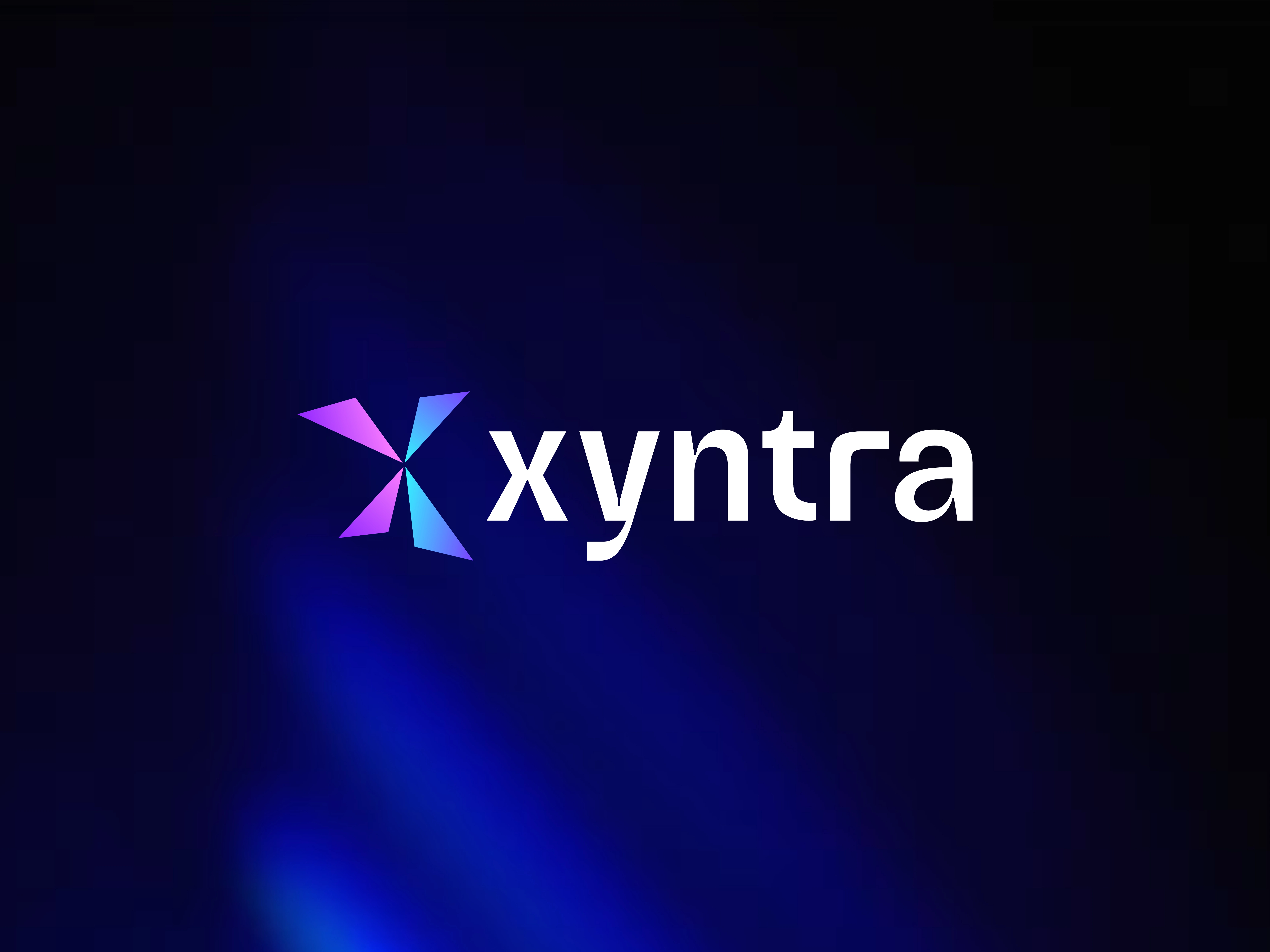 The Xyntra logo — a futuristic brand identity concept built around motion, symmetry, and digital clarity. The mark uses an abstract "X" shape with dynamic gradients and precise geometry, representing progress, innovation, and energy. It is Ideal for digital-first brands in tech, design, or creative industries.