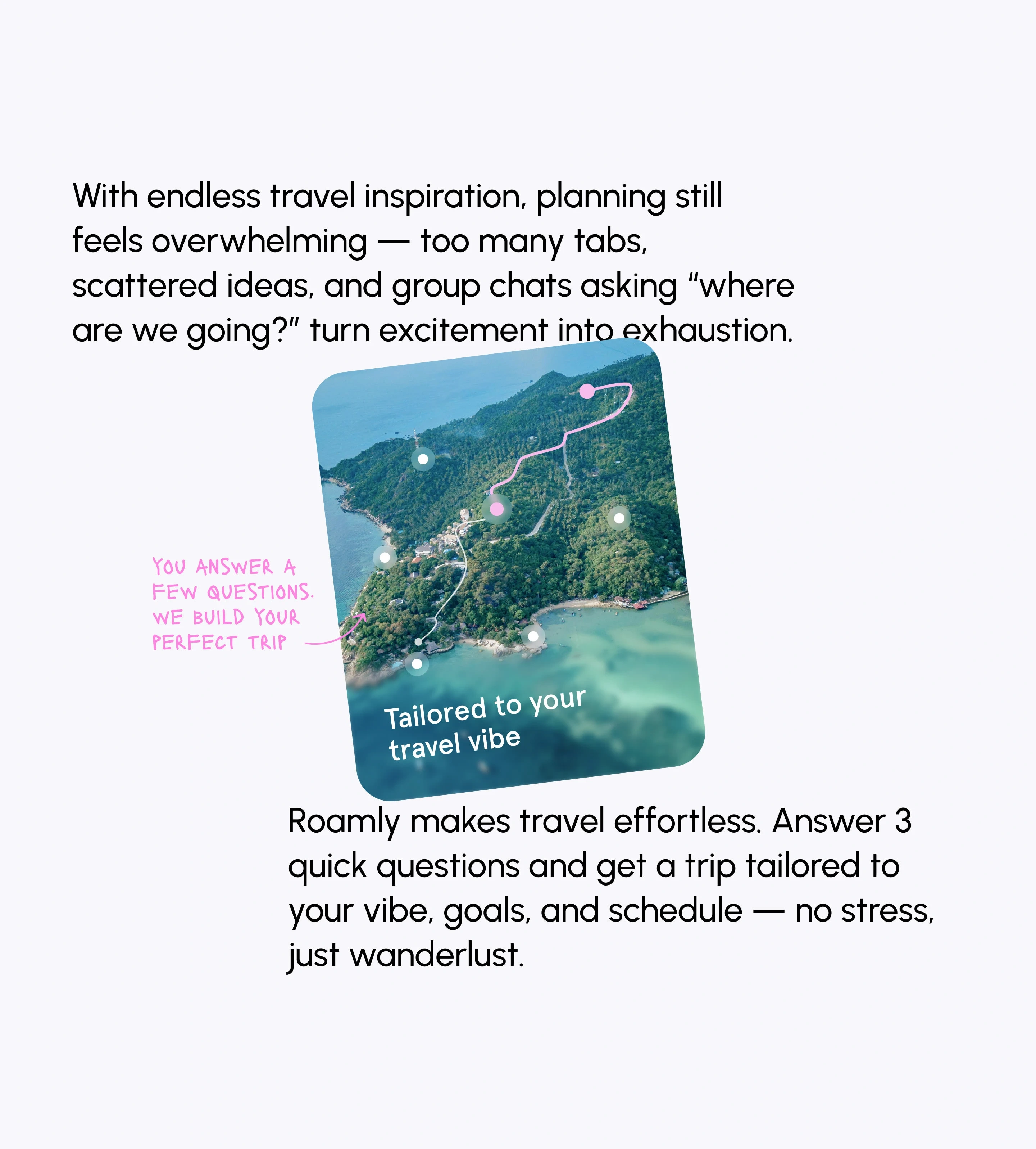 ROAMLY is an AI-powered travel SaaS that combines the capabilities of artificial intelligence with intuitive web design to make trip planning simple.