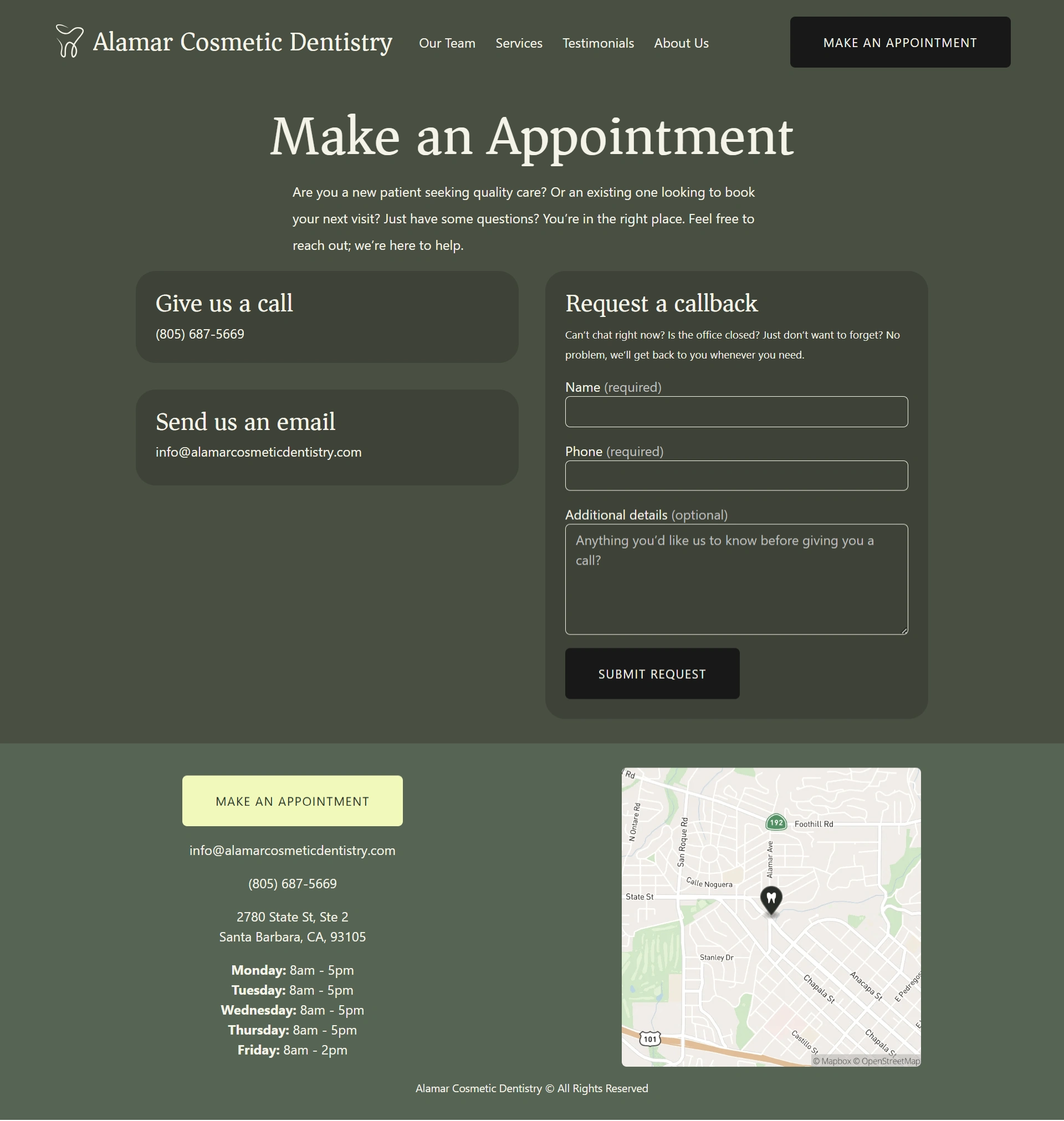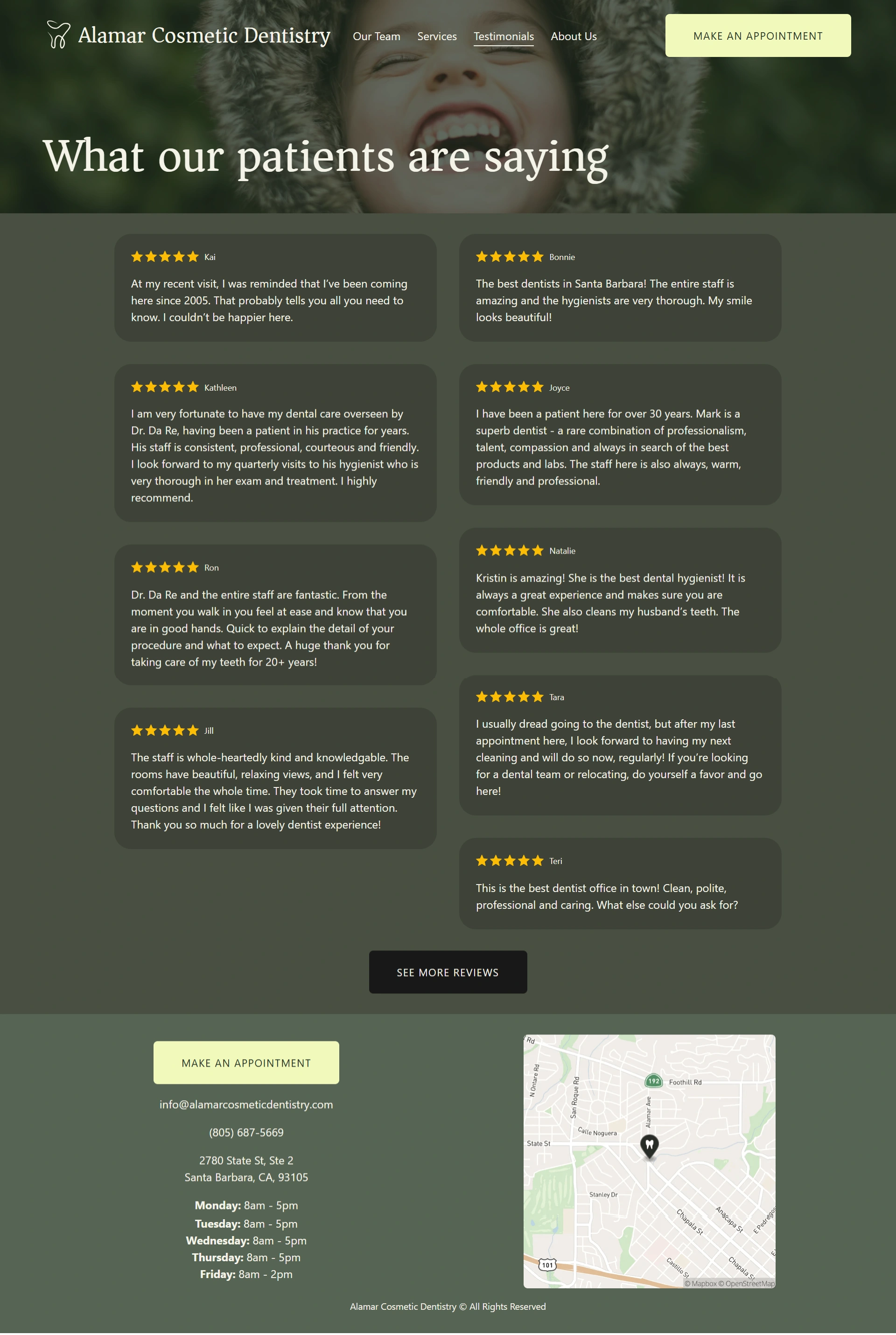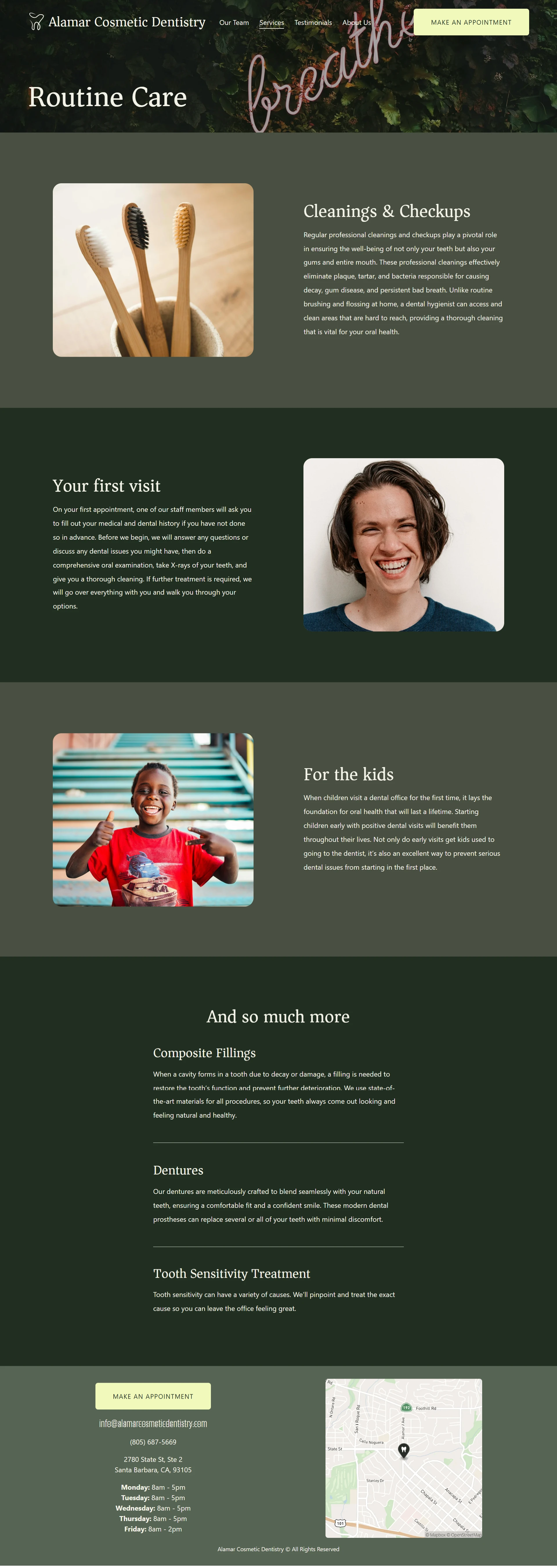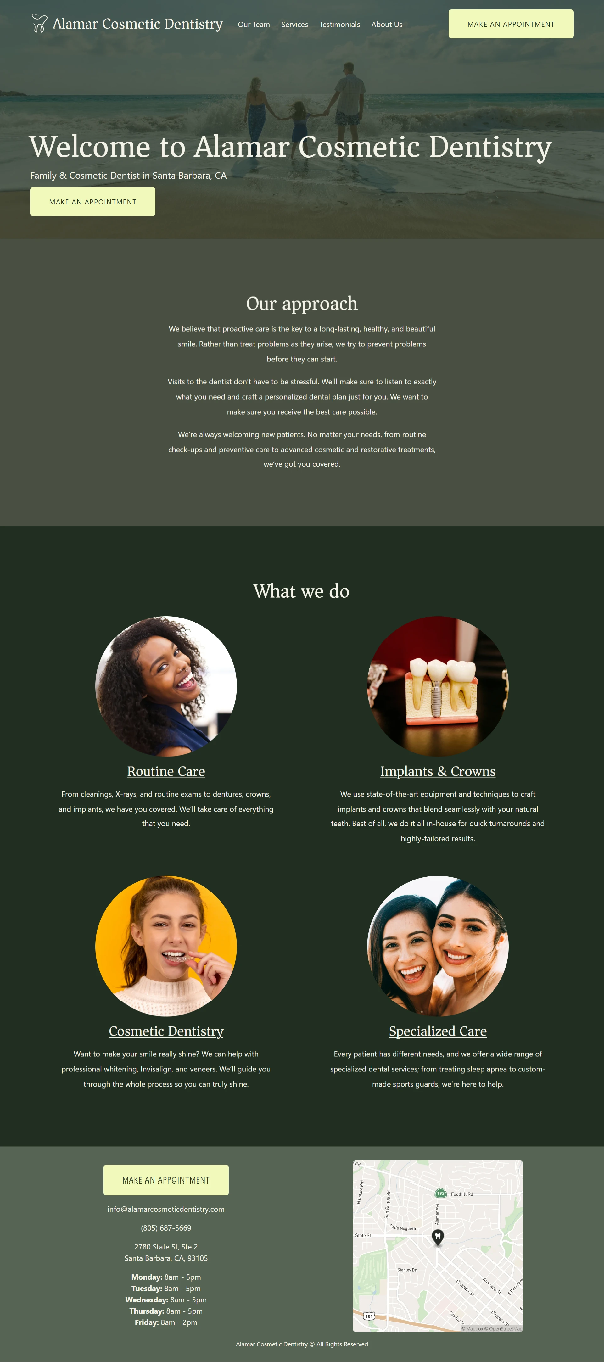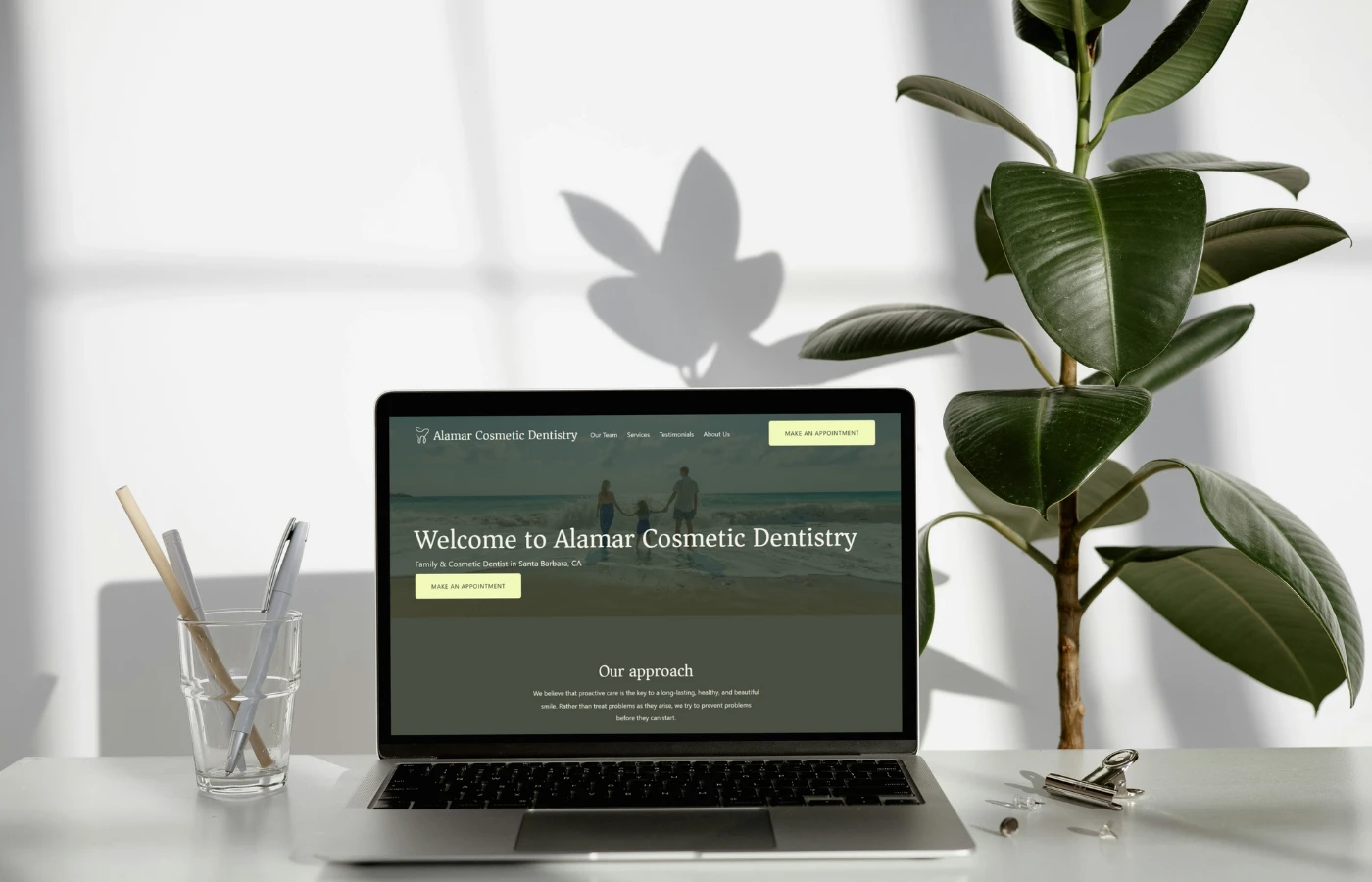 Modern, patient-friendly Wix website for a dental clinic featuring clean design, key services, team intro, and easy online booking.