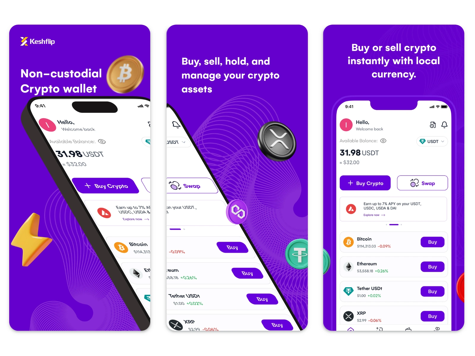 I developed this app for one of my clients, Keshflip, it's a non-custodial crypto wallet with traditional banking features such as remmitance and merchant payment solutions.