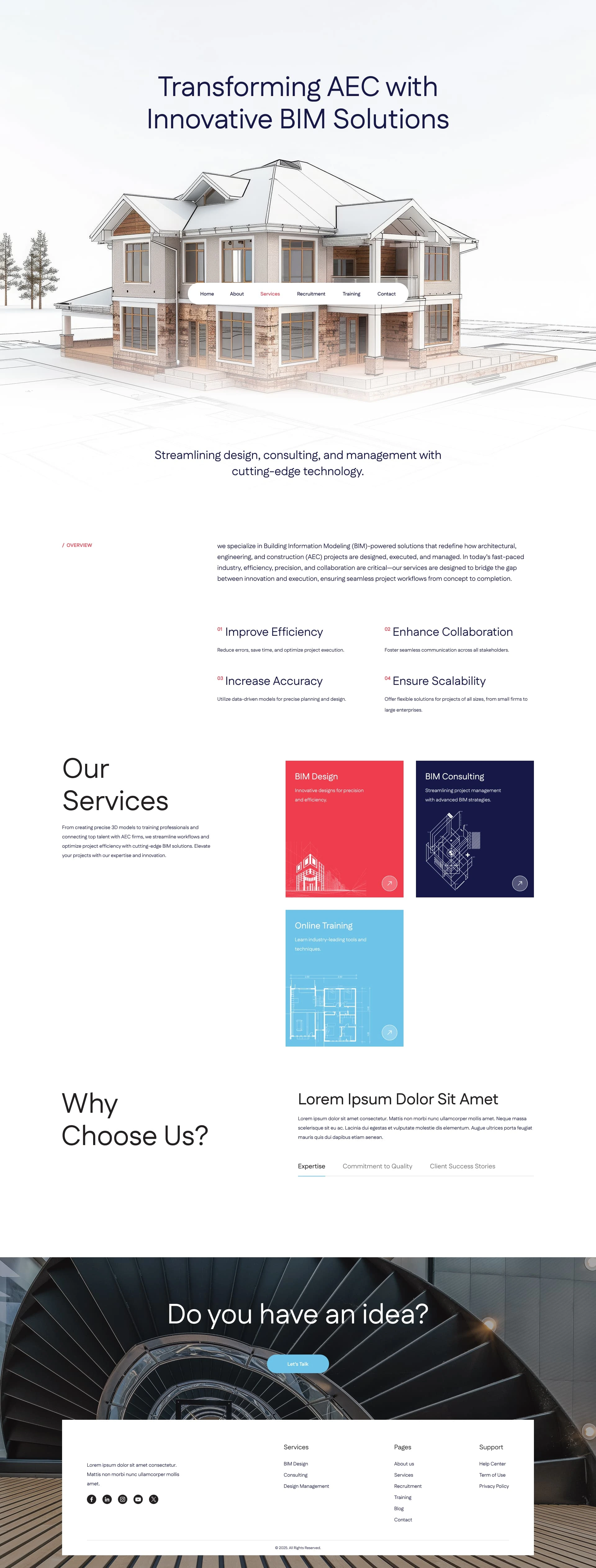 Modern UI/UX design for an Architecture & BIM brand — built to convert visitors into clients with clarity and visual elegance.