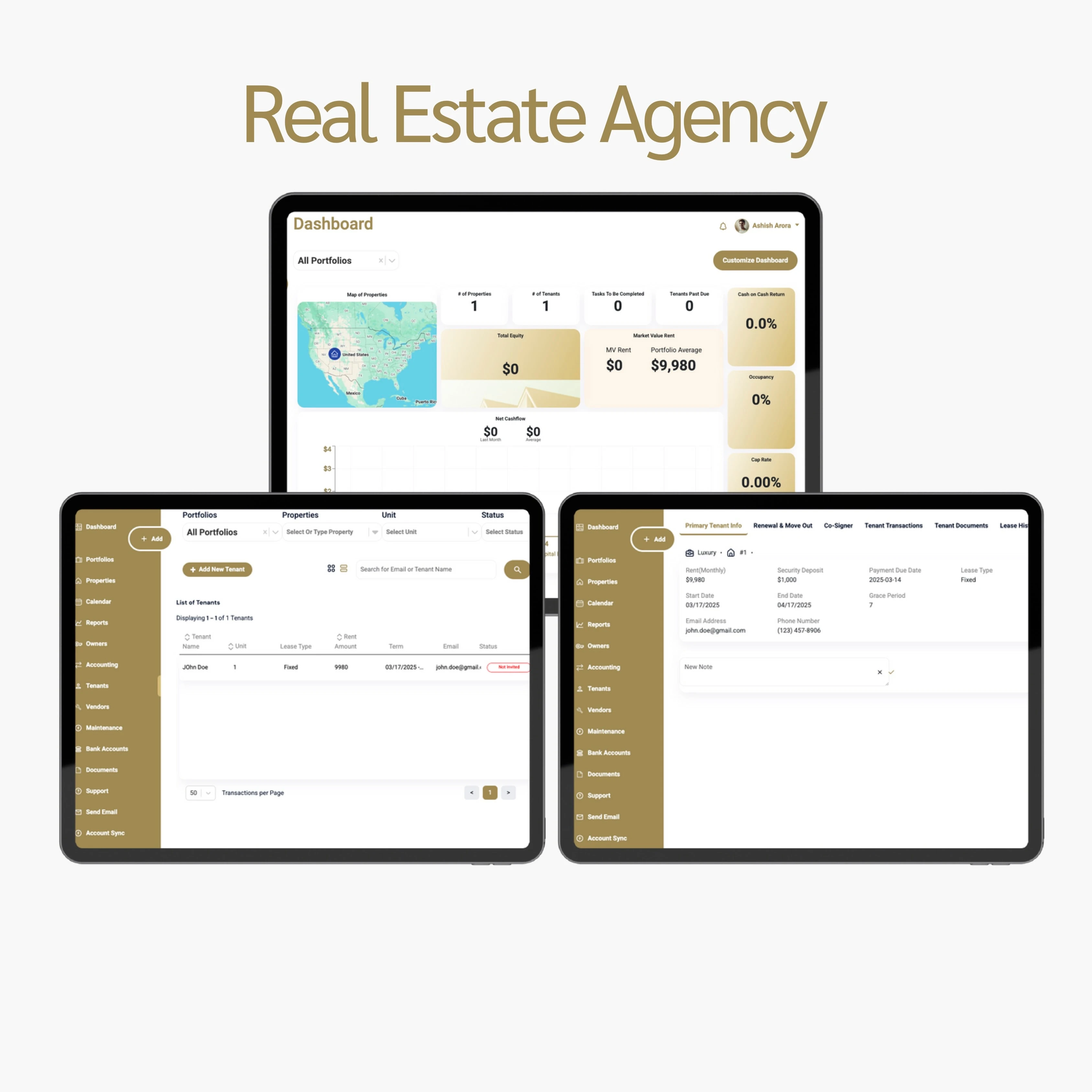 The Real Estate Agency Portal is an all-in-one platform designed to help agencies efficiently manage their tenants, properties, and finances. With powerful tools for property listings, tenant management, rent collection, and expense tracking, the portal simplifies daily operations and improves transparency. Agencies can easily monitor lease agreements, track payments, and generate financial reports all from a single dashboard. Whether managing a few units or a large portfolio, the portal streamlines workflows, reduces manual effort, and enhances client satisfaction.