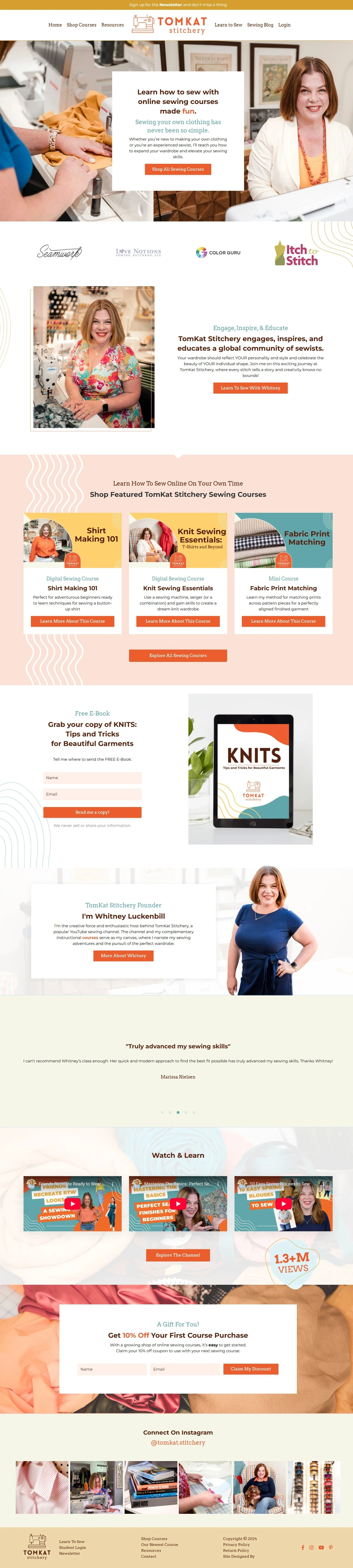 From the start, Jenni’s vision for TomKat Stitchery was clear: she wanted a site that felt warm, welcoming, and supportive—without sacrificing professionalism or structure. Whether you’re brand-new to sewing or a seasoned sewist, Jenni makes learning fun, and her new site needed to reflect that!