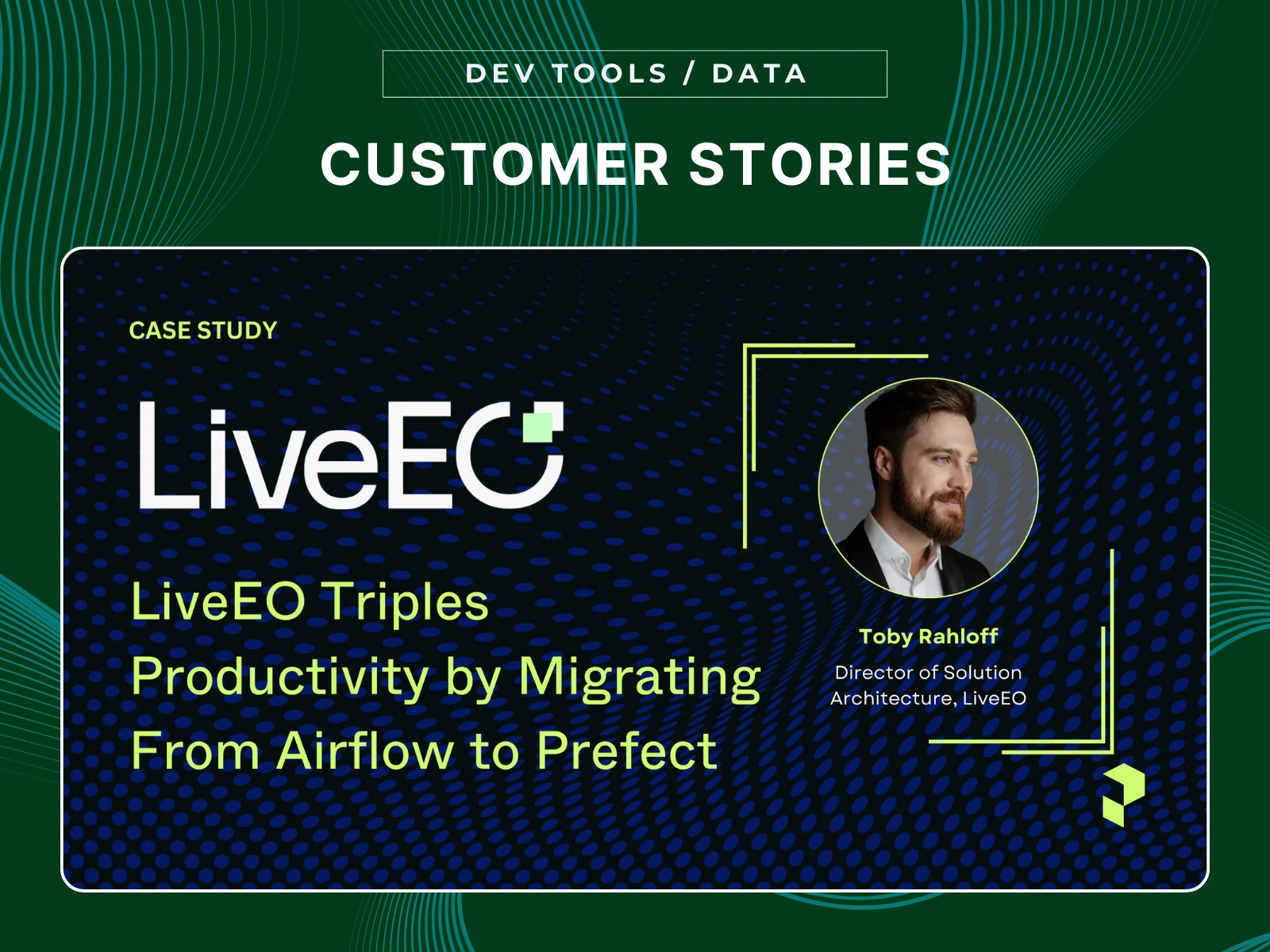 Leveraged rehearsal calls and a joint speaking session at a data conference to draft the case study. Showcased how LiveEO tripled productivity by orchestrating petabyte-scale satellite data workflows in Prefect.