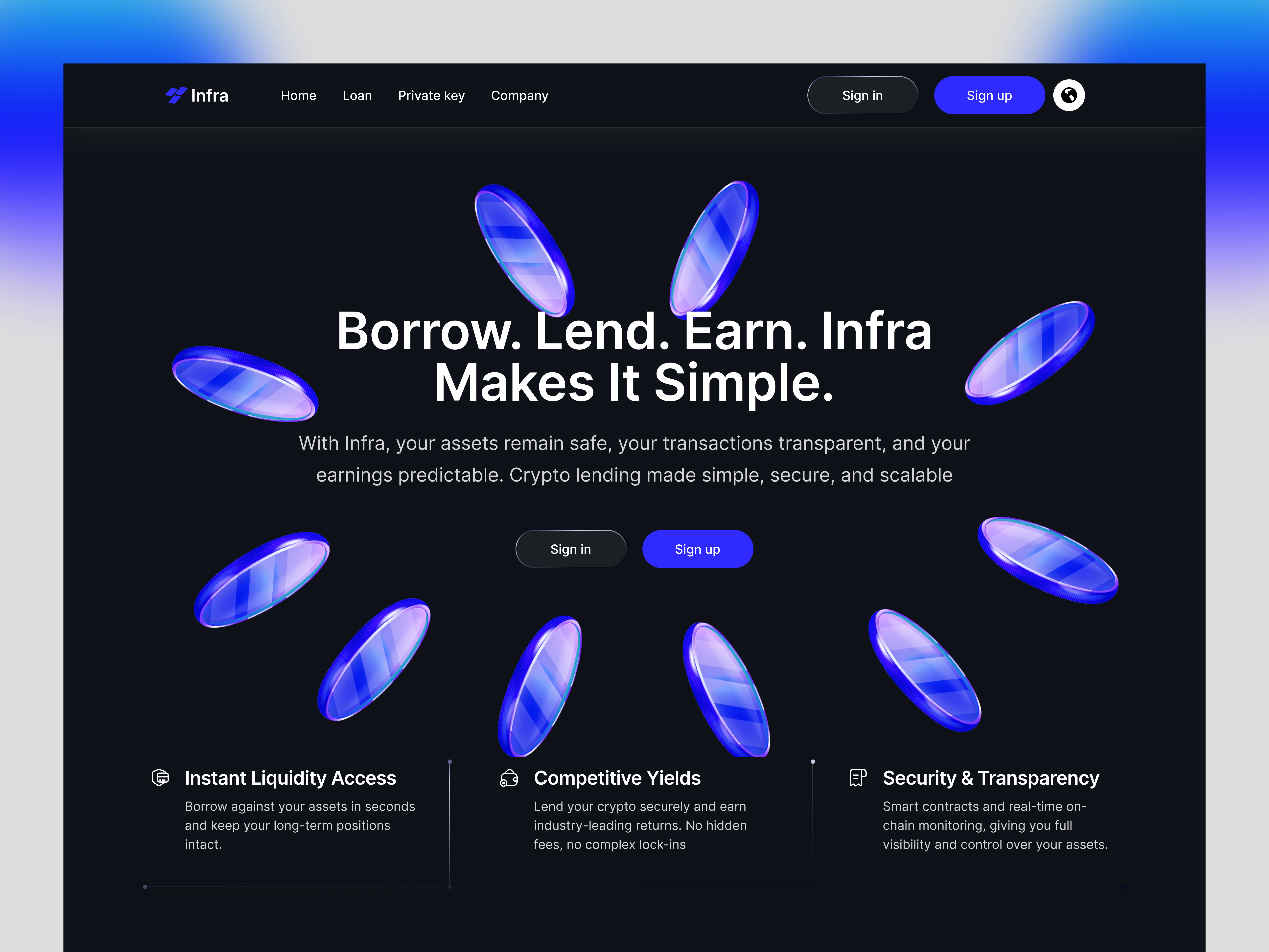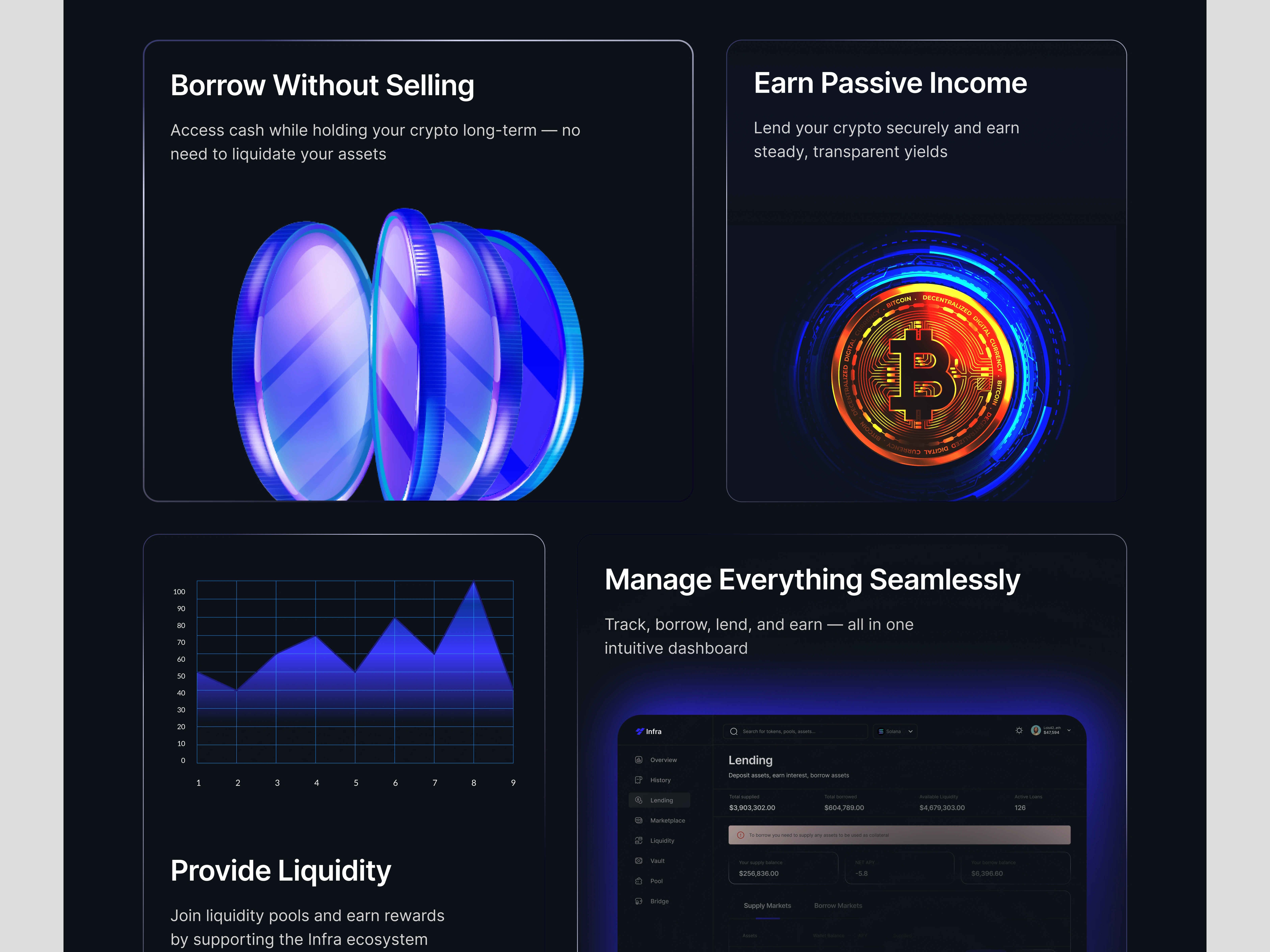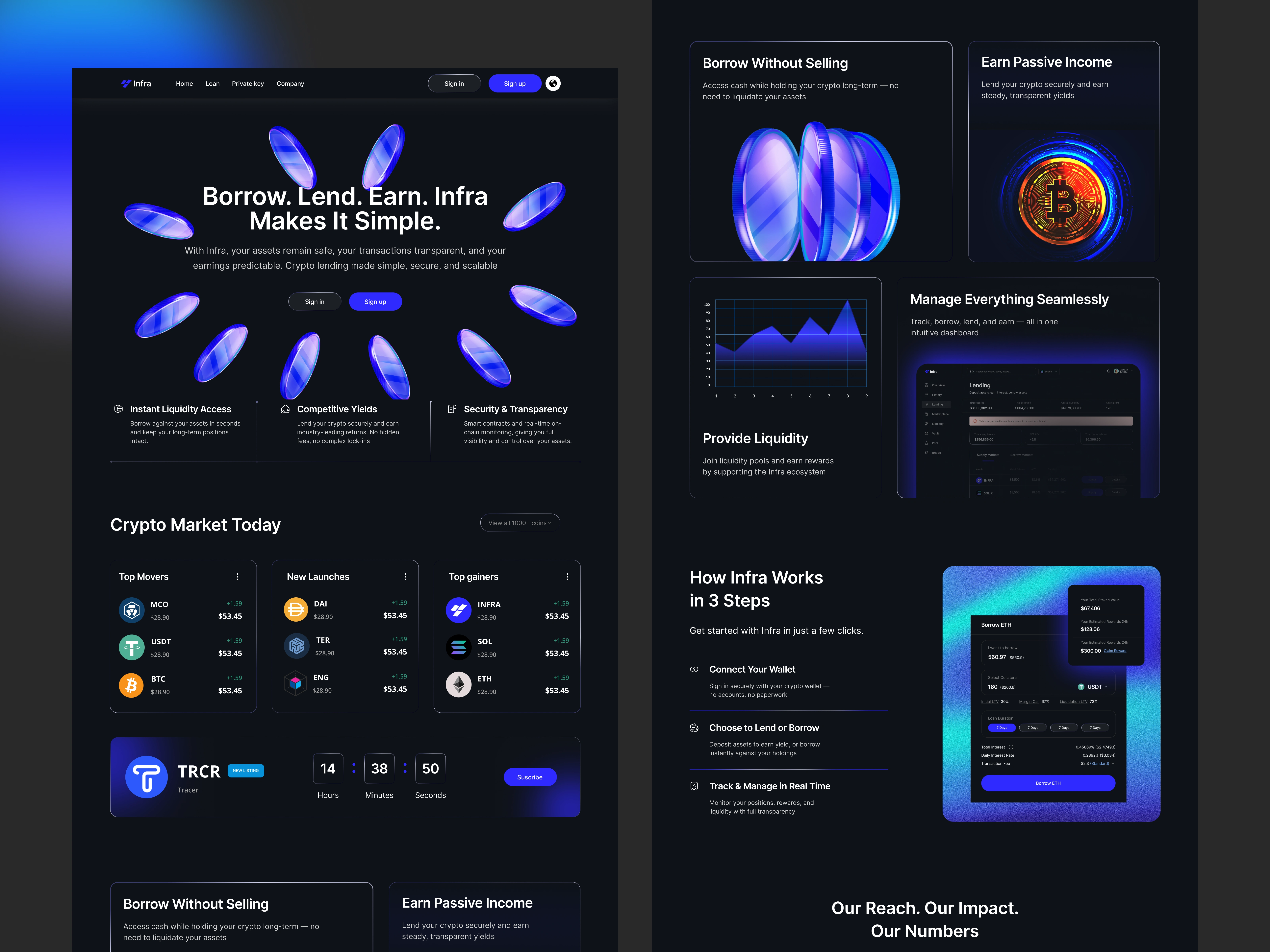 Infra is a crypto lending and liquidity platform that needed a clear, trustworthy, and modern website to attract both retail and institutional users. My goal was to design a digital experience that simplifies complex DeFi concepts while communicating security, transparency, and growth opportunities.