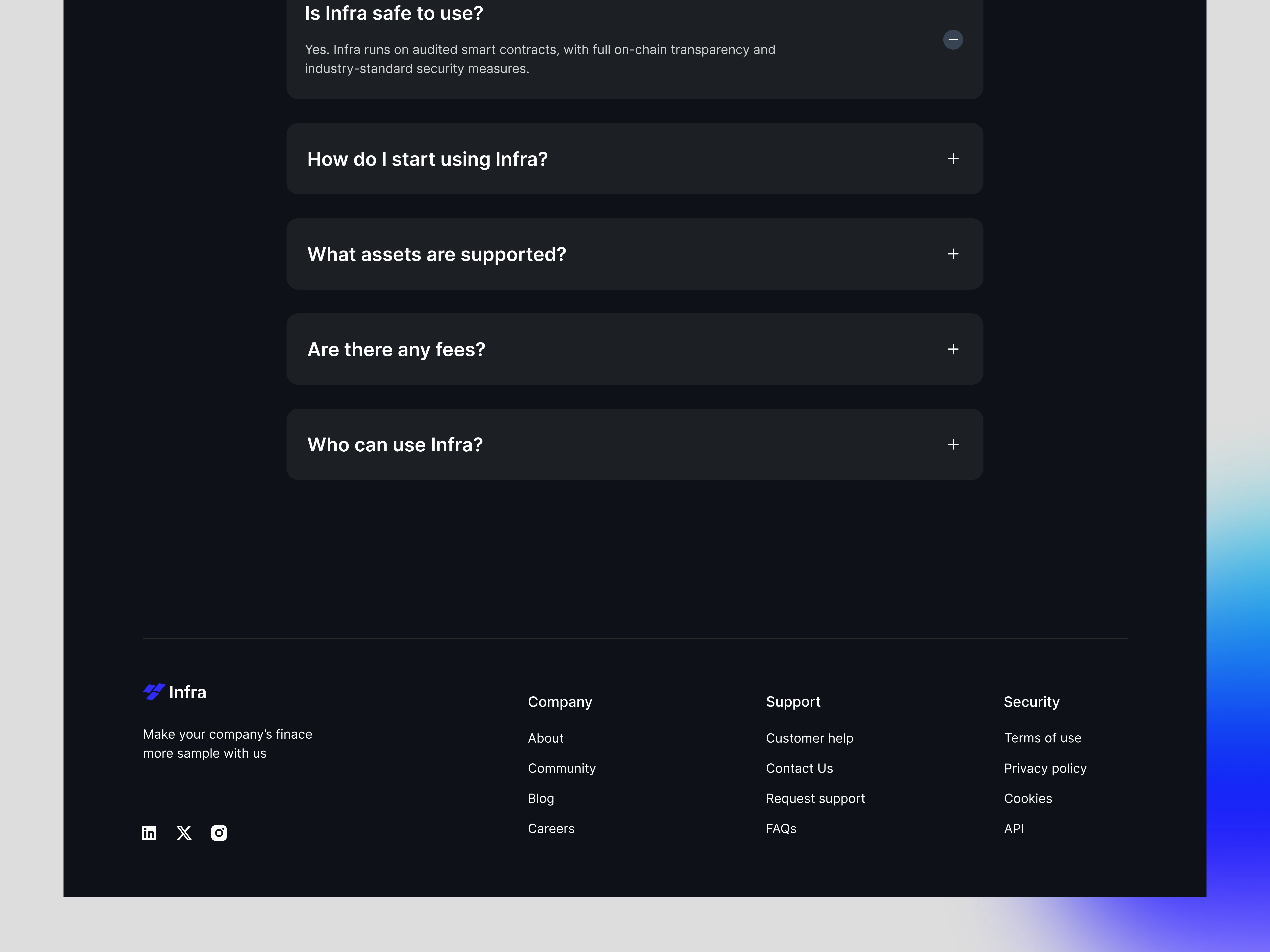 The final website design positions Infra as a secure, global, and user-friendly DeFi platform. It reduces barriers for new users while maintaining credibility for experienced crypto participants. The design highlights clarity, confidence, and conversion, setting the stage for Infra’s product growth.