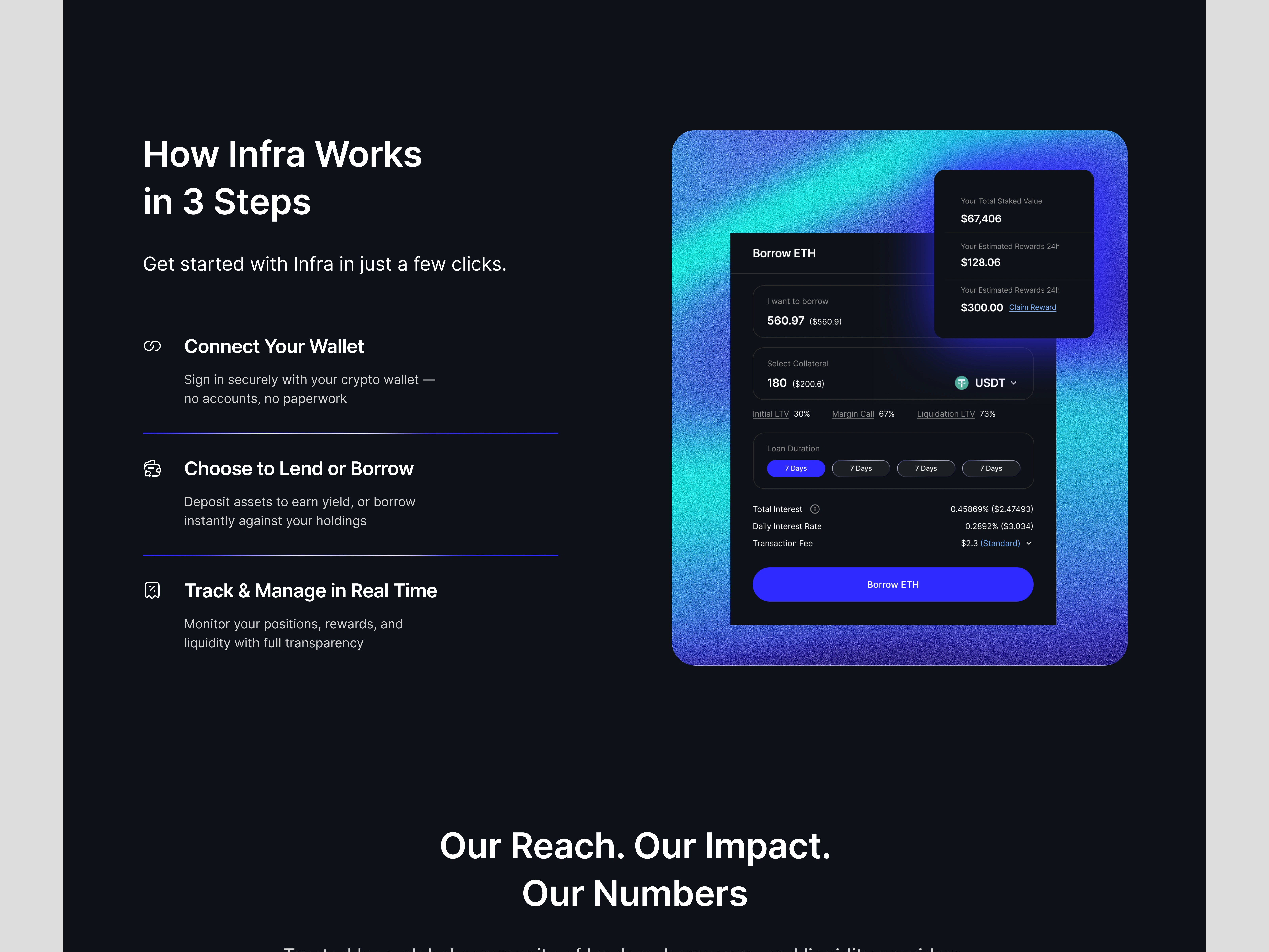 Designed a modern, trustworthy website for Infra, a crypto lending platform, enhancing user experience and trust.