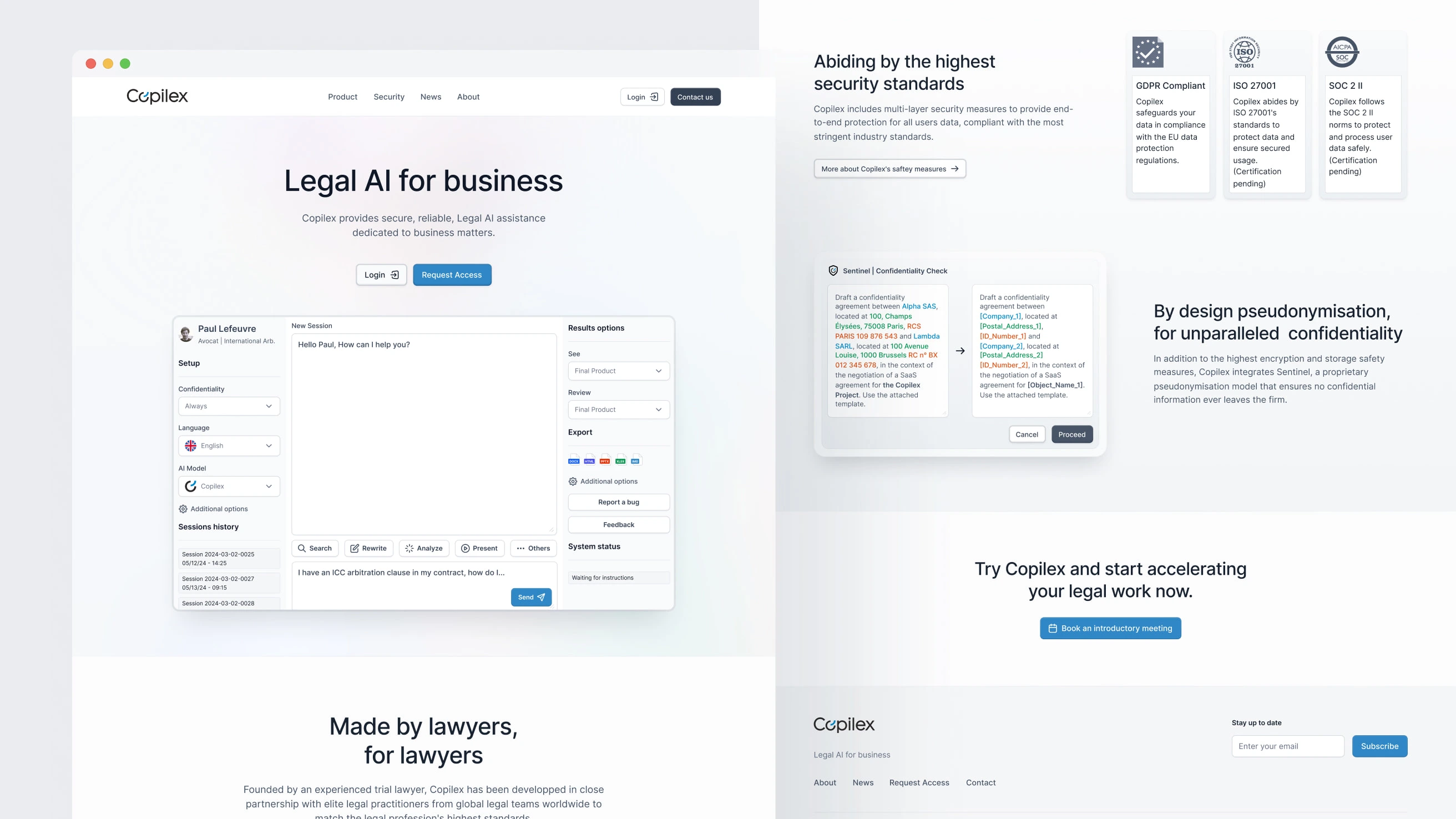 Copilex is a Paris-based Legal AI startup. We delivered a clean website, scalable design system, and product UI to support investors, grants, and onboarding.