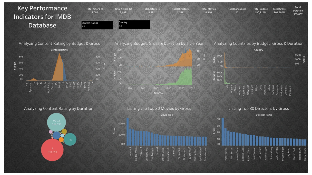 IMDB has interesting data related with worldwide entertainment of various genre and its analysis is a great challenge.