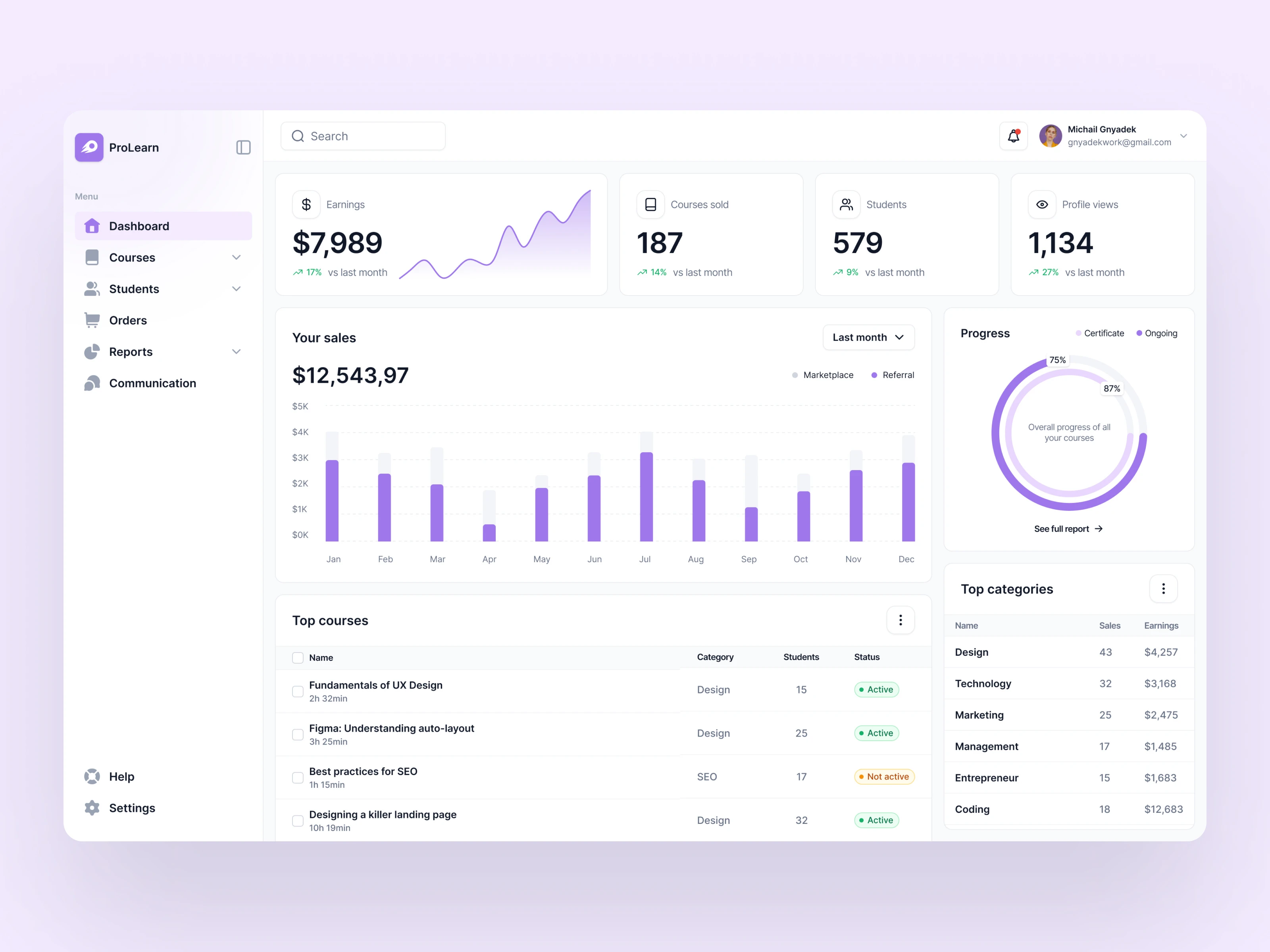 Modern LMS UI/UX with intuitive navigation, progress tracking, and clean design for engaging, efficient online learning experiences.