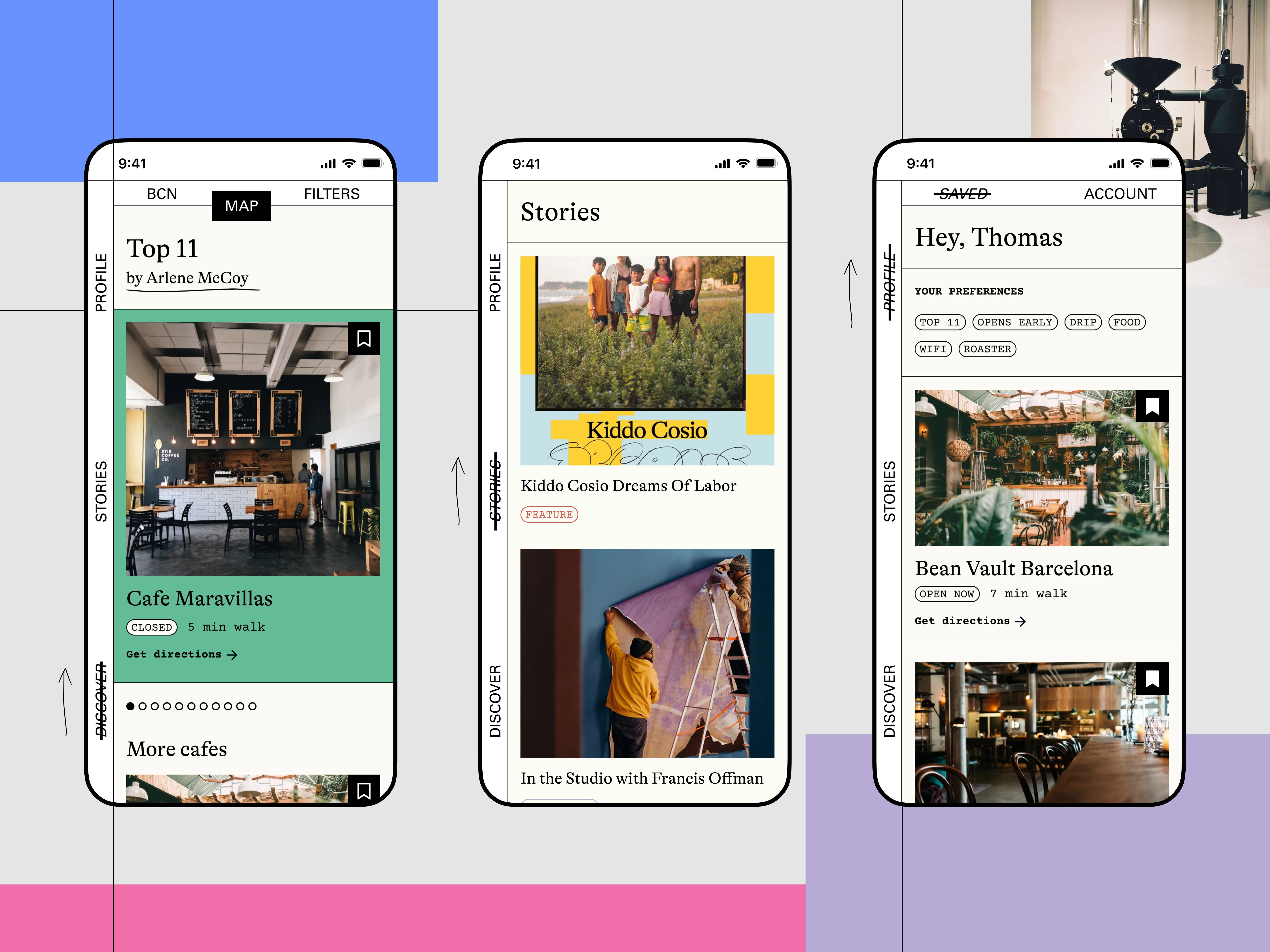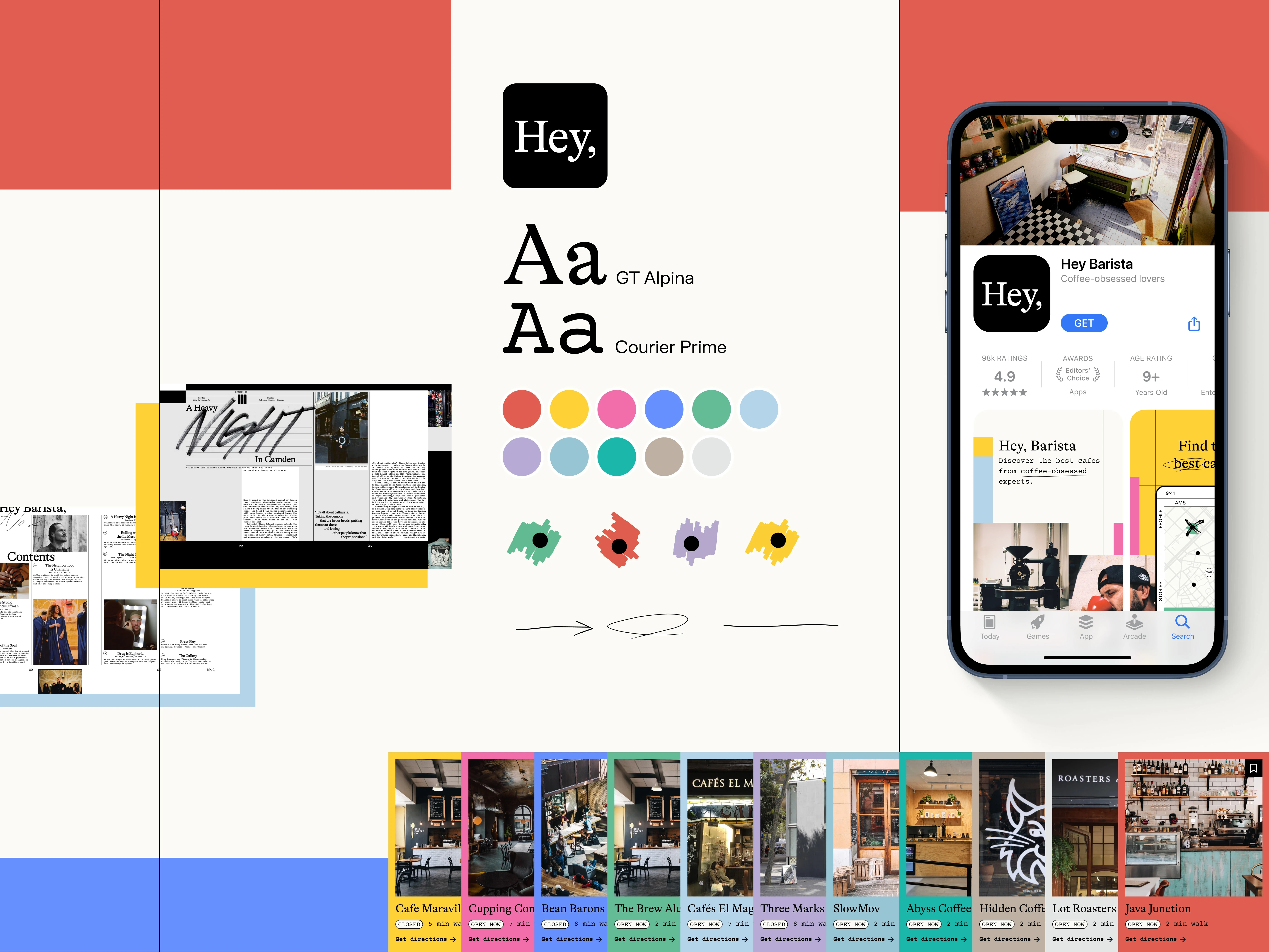 We evolved Oatly's print and online magazine Hey Barista into an inspiring, must-have app for coffee lovers. We provided it with an editorial look and feel, safeguarding Hey Barista's brand in different formats. We proposed a groundbreaking and visually striking design with a prominent and stimulating use of color while keeping it accessible and easy to use.