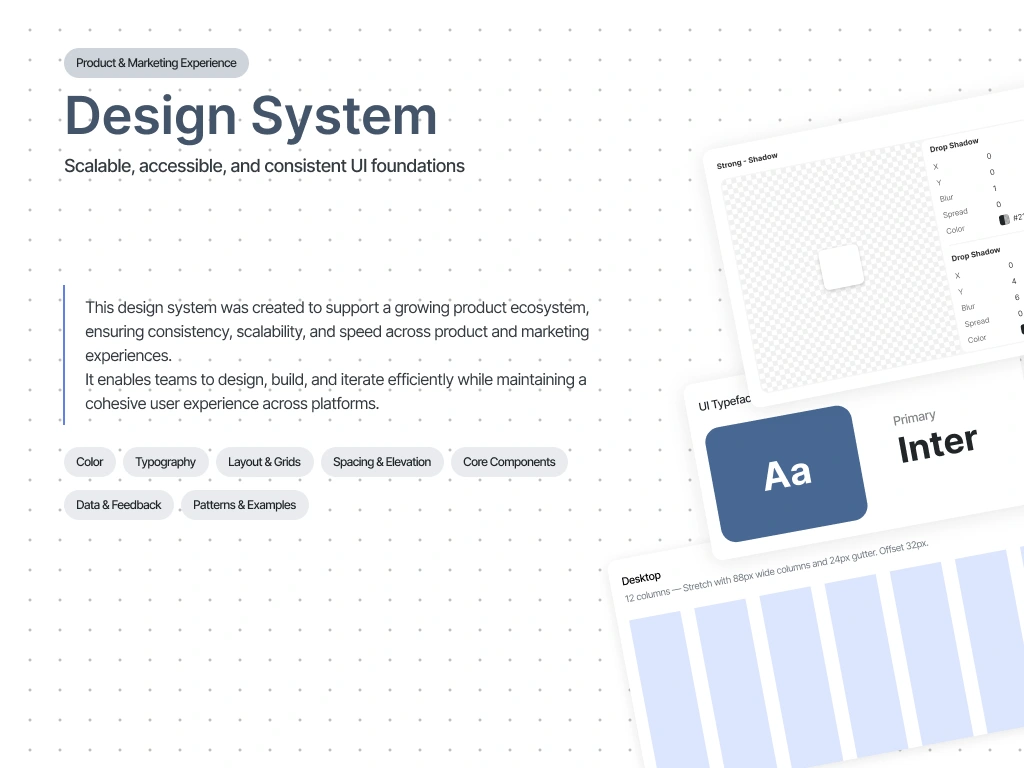 A scalable design system created to ensure consistency, accessibility, and efficiency across product and marketing experiences.