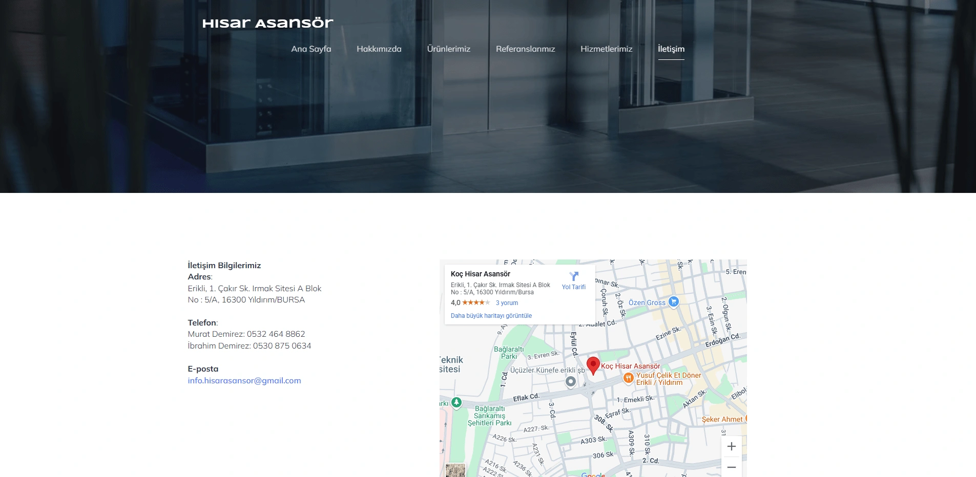 I designed and developed the Contact page of Hisar Asansör, a company specialized in elevator systems. The page was built with a focus on simplicity, accessibility, and responsiveness.
